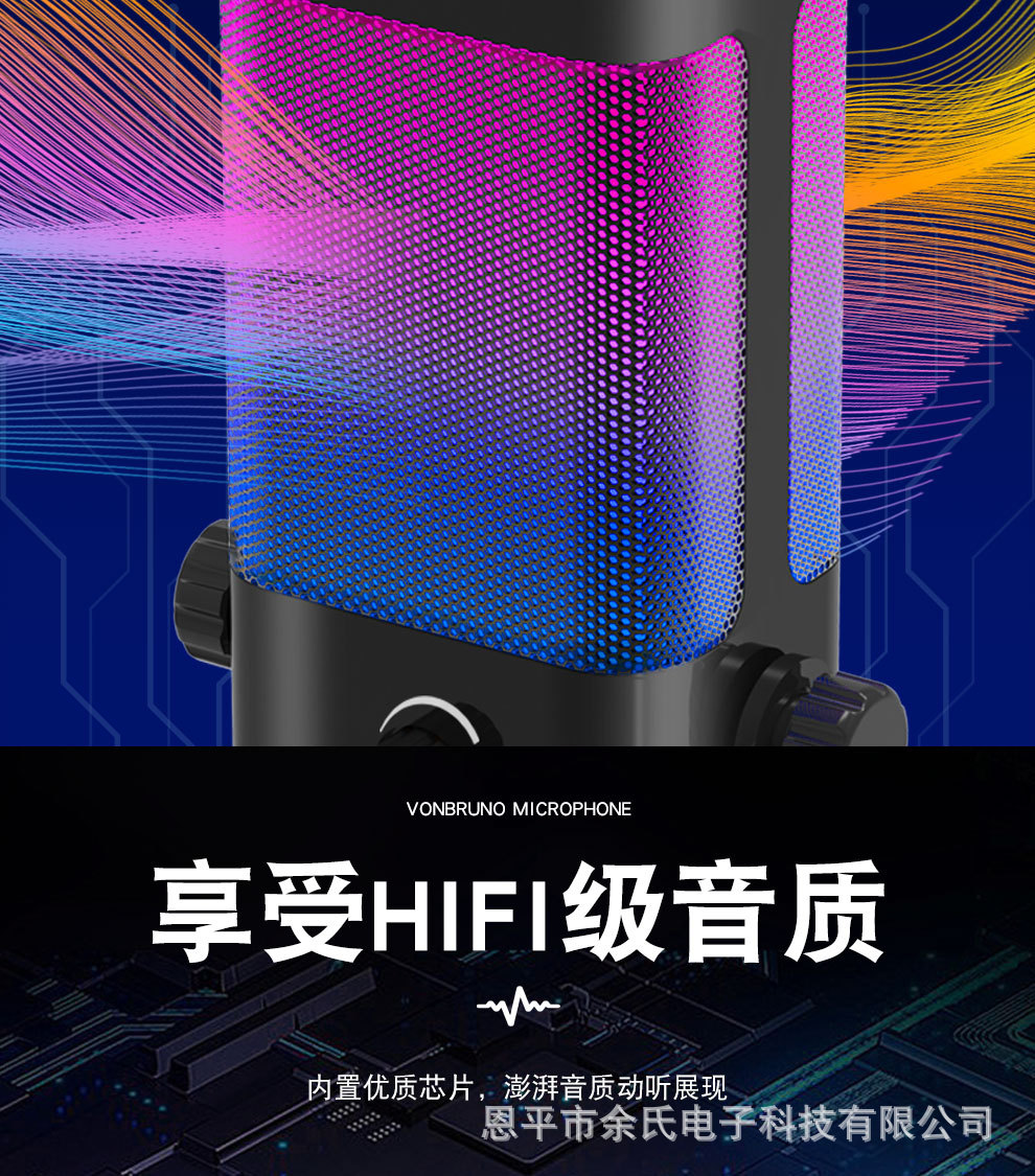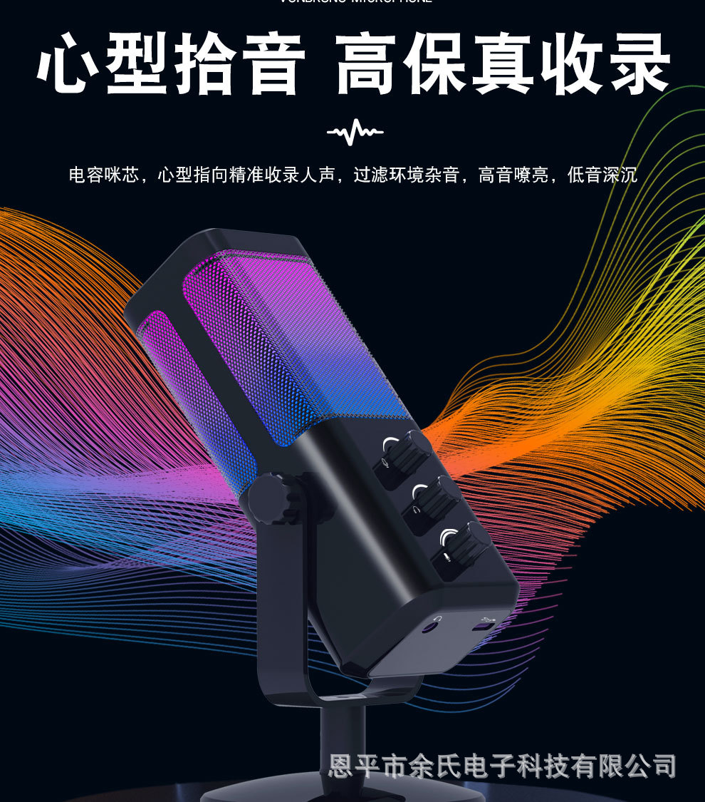 M7心形指向USB电容游戏麦克风 桌面电脑RGB电竞手机麦克风