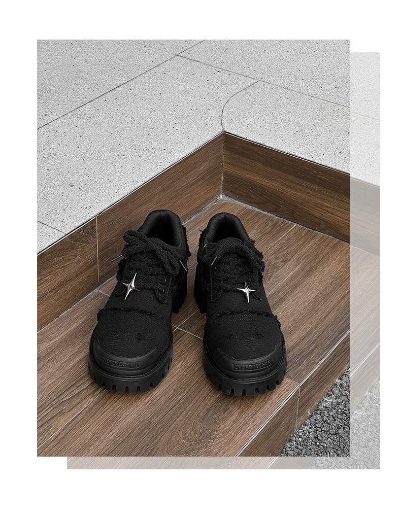 틈새 디자인 두꺼운 유일한 드레스 툴링 신발 퓨어 블랙 올 매치 트렌디 라운드 토 더비 신발 파괴 캐주얼 신발스토어 가기