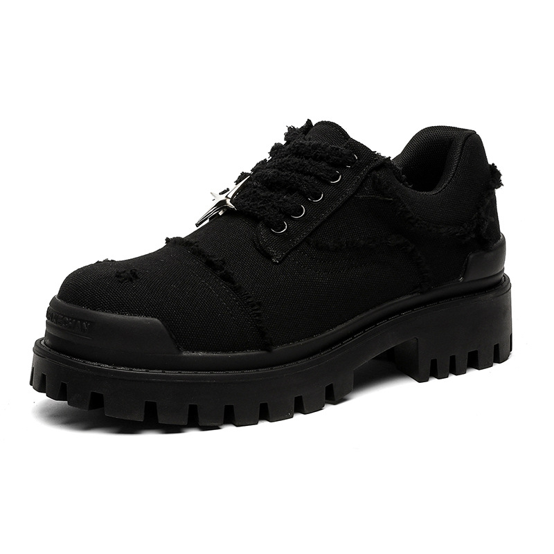 틈새 디자인 두꺼운 유일한 드레스 툴링 신발 퓨어 블랙 올 매치 트렌디 라운드 토 더비 신발 파괴 캐주얼 신발