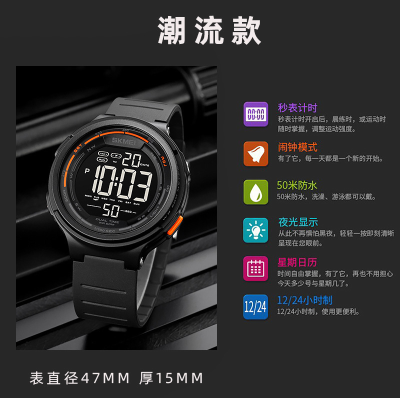 간단한 스포츠 시계 남자 학생 다기능 방수 십대 중학생 고등학교 트렌드 발광 전기 도매