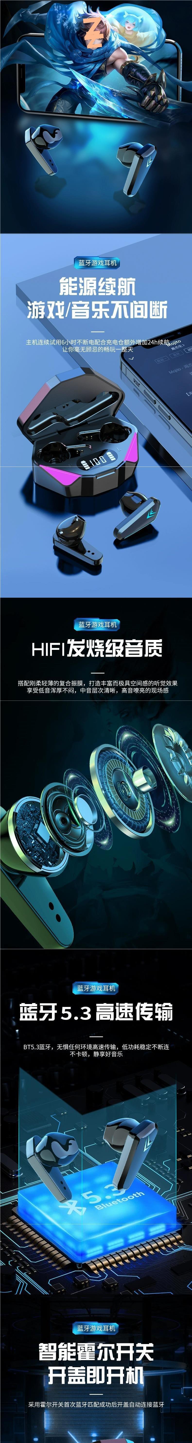 2024 새로운 실제 무선 블루투스 헤드셋 게임 먹는 치킨 인 이어 긴 내구 지연 없음 도매스토어 가기