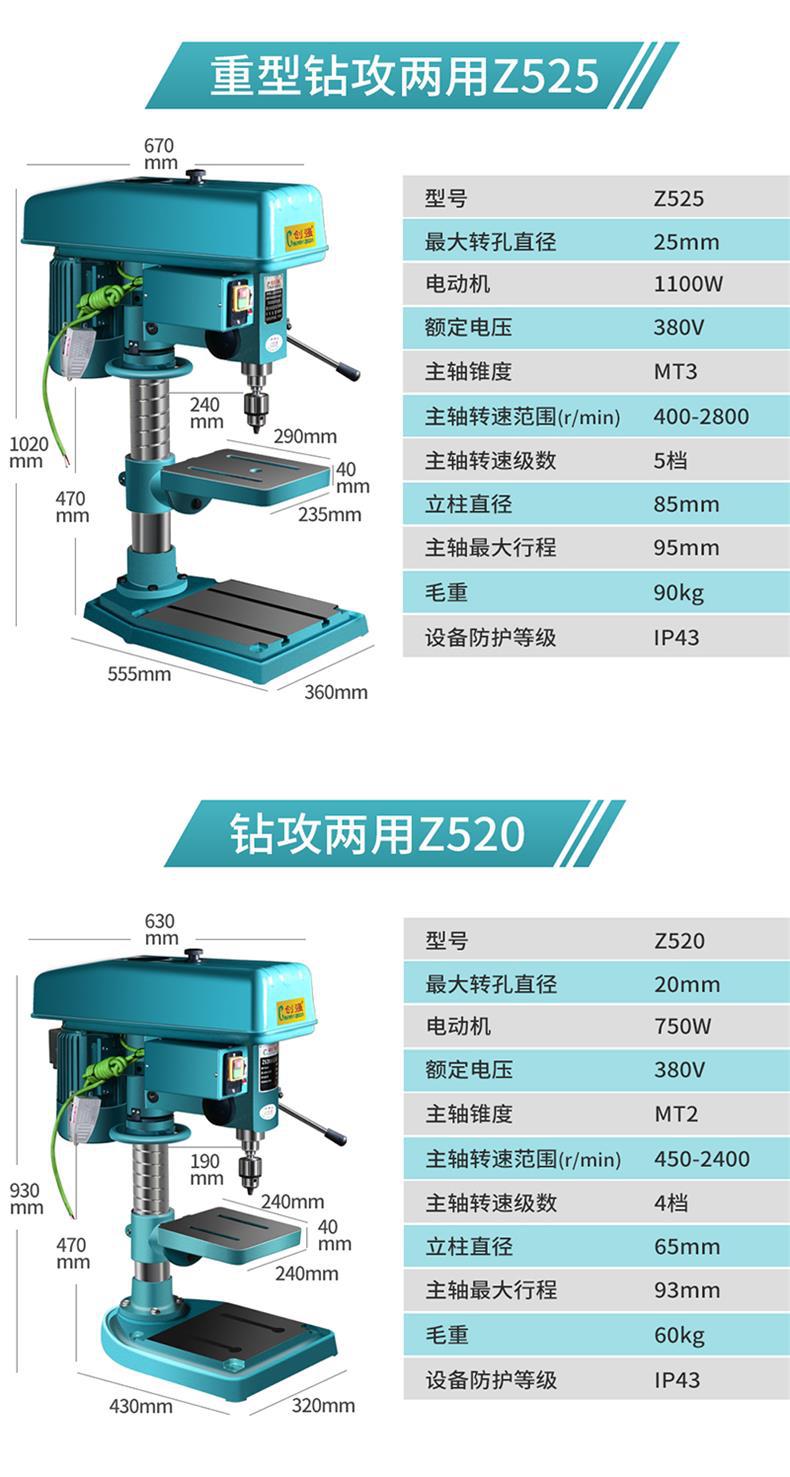 Chuangqiang 산업용 벤치 드릴링 머신 통합 고성능 드릴링 및 밀링 머신 태핑 3 목적 다기능 태핑 머신 220V스토어 가기