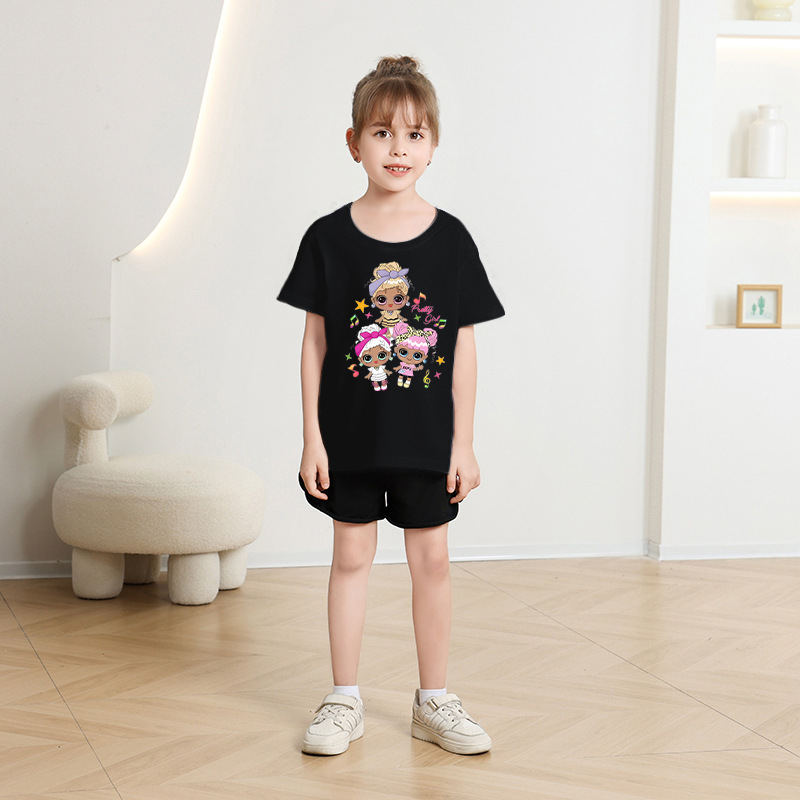 • 검은 색 반팔과 분홍색 옷을 입은 소녀