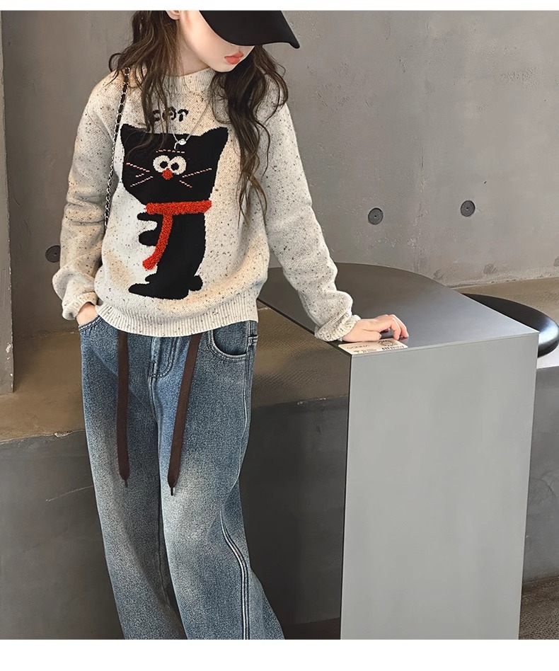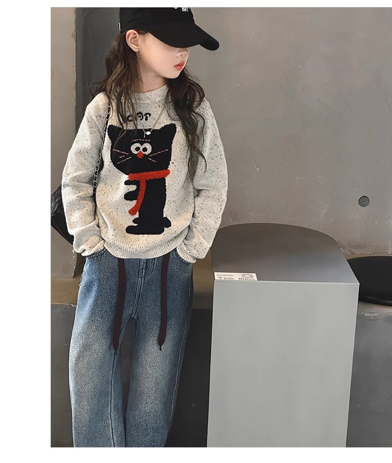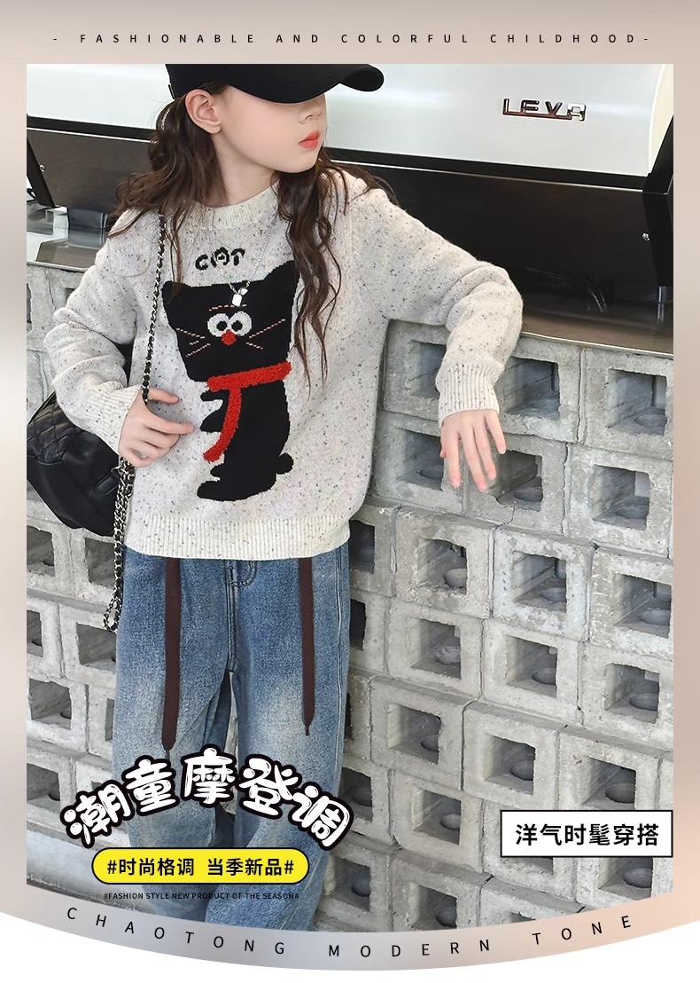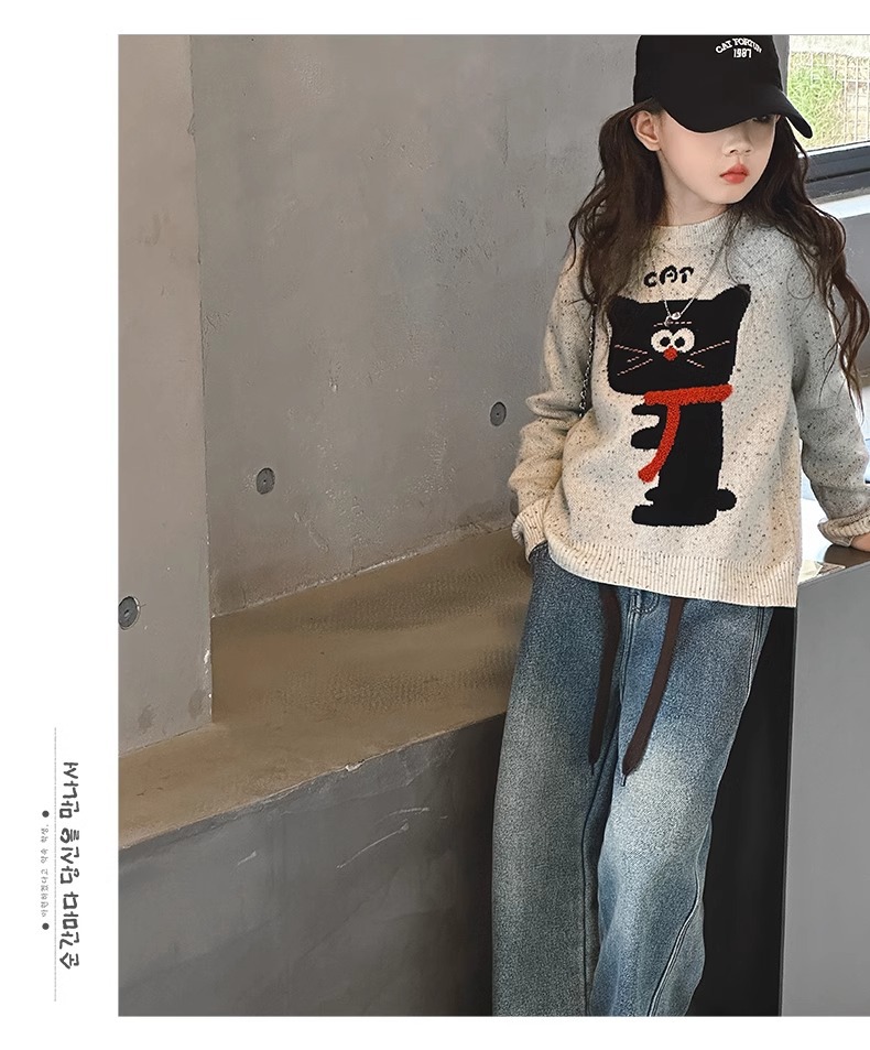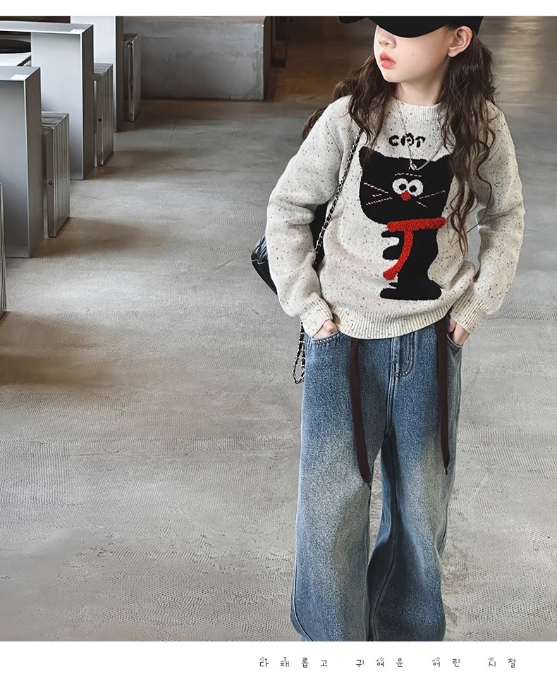 소녀들의 가을과 겨울 2024 새로운 서양식 소녀 니트 풀오버 스웨터 어린이 겨울 니트 탑스토어 가기