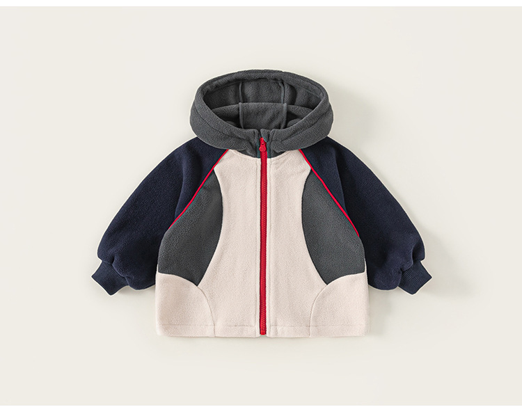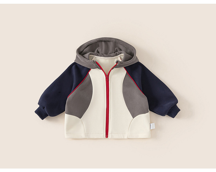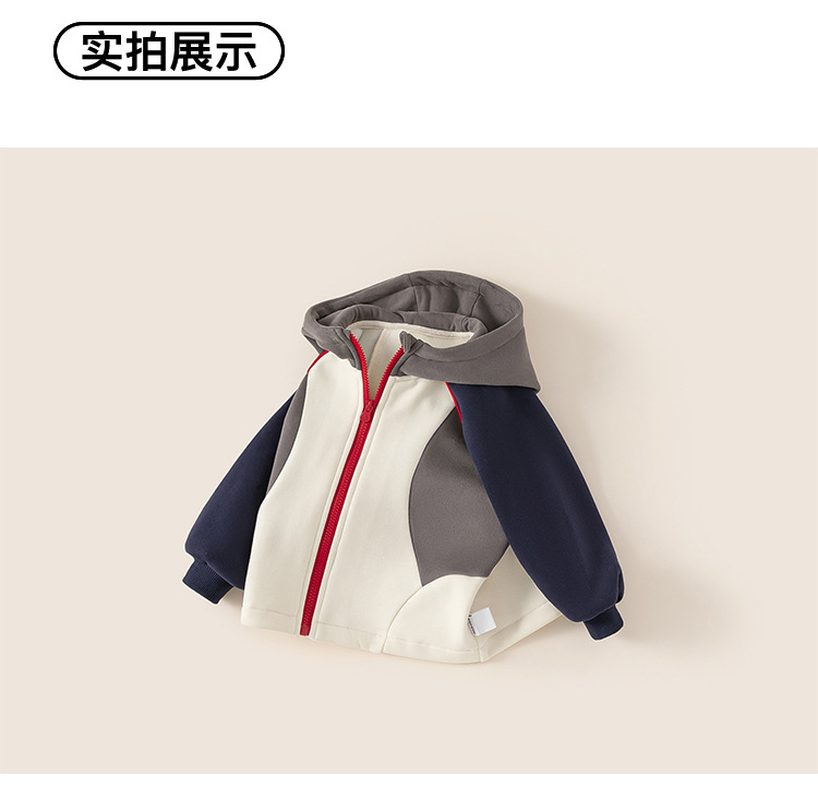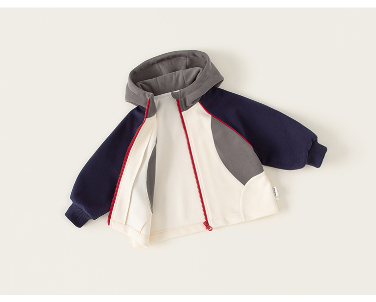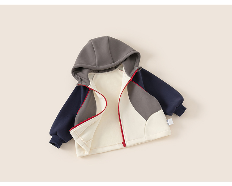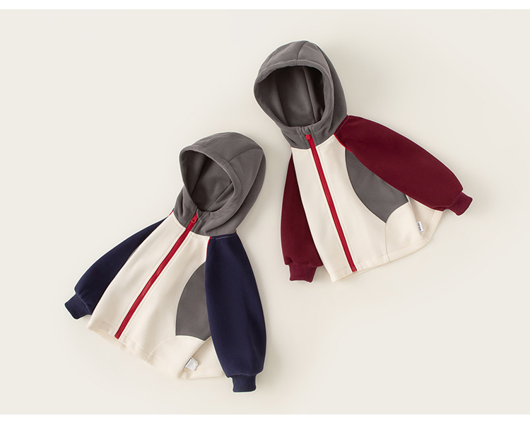 봉 셀렉트 어린이 캐주얼 가을 · 겨울 지퍼 셔츠 남자 아기 색 차단 기모 의류 걸스 후드 스웨터 재킷