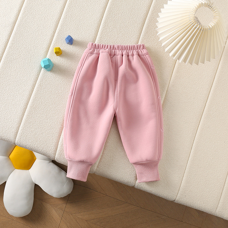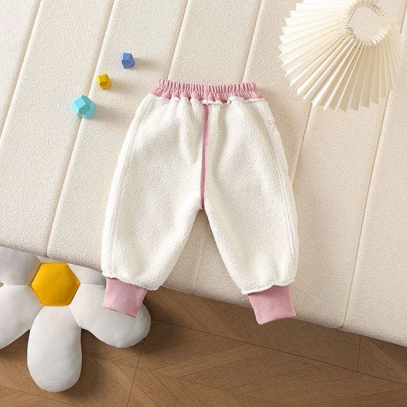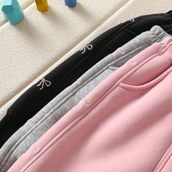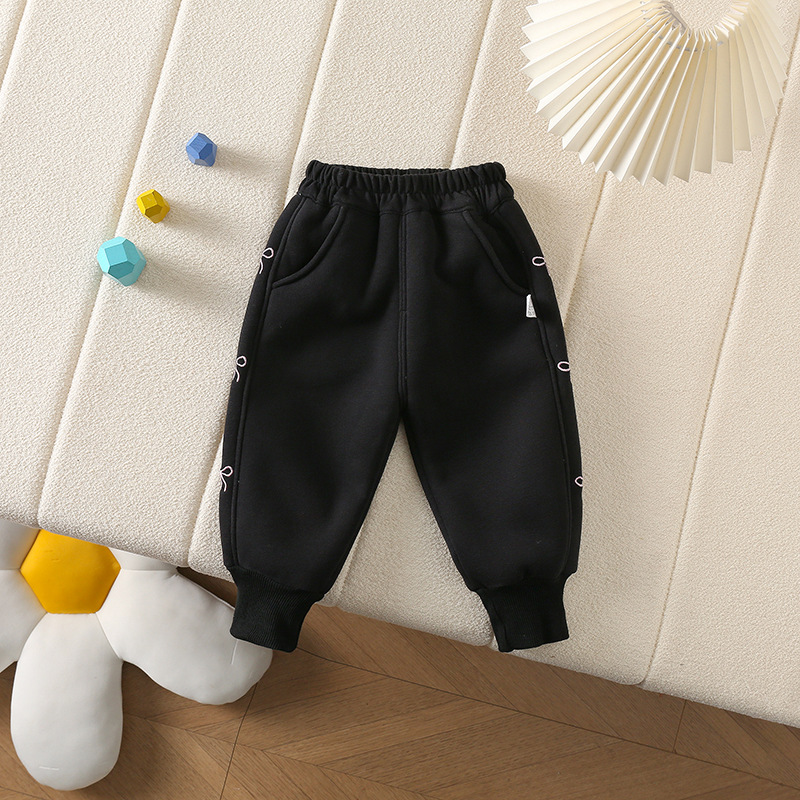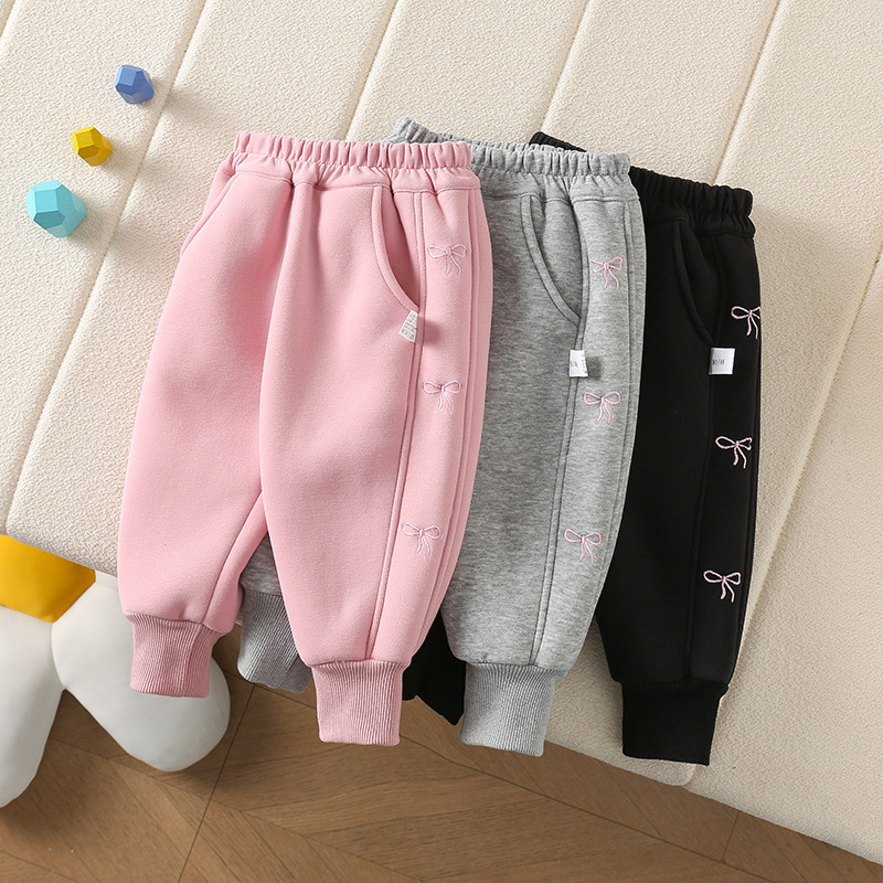 겨울 신상 벨벳 팬츠, 아동용 일체형 두꺼운 아우터 스웨트팬츠, 따뜻한 겨울을 위한 자수 리본 스웨트팬츠