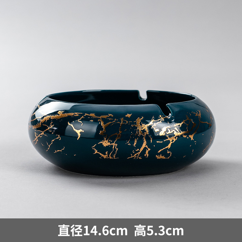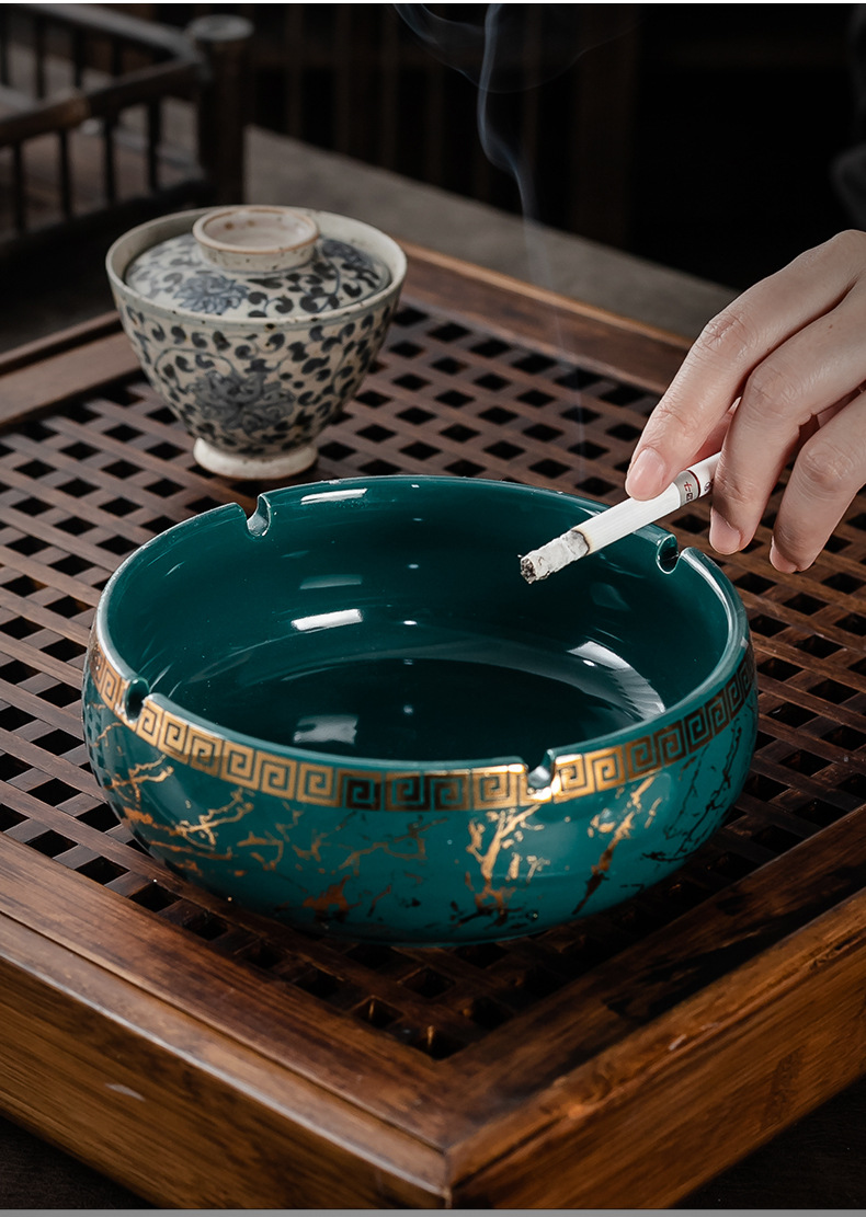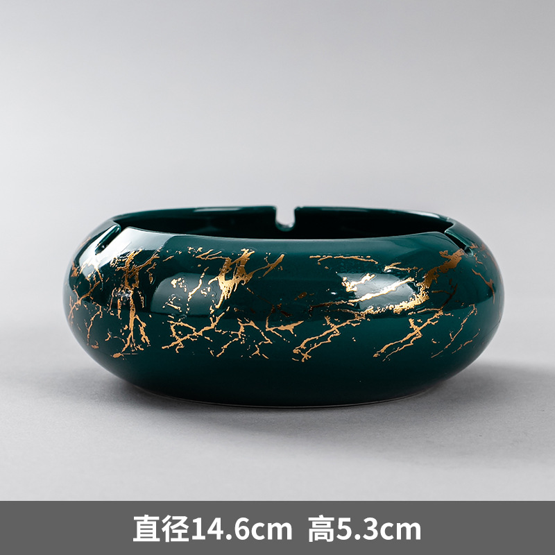 • 大号鎏金线条烟缸—墨绿