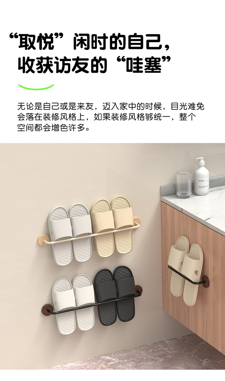호두 화장실 슬리퍼 랙 펀치 무료 욕실 화장실 신발 걸이 보관 랙 노르딕 솔리드 우드 슬리퍼로드