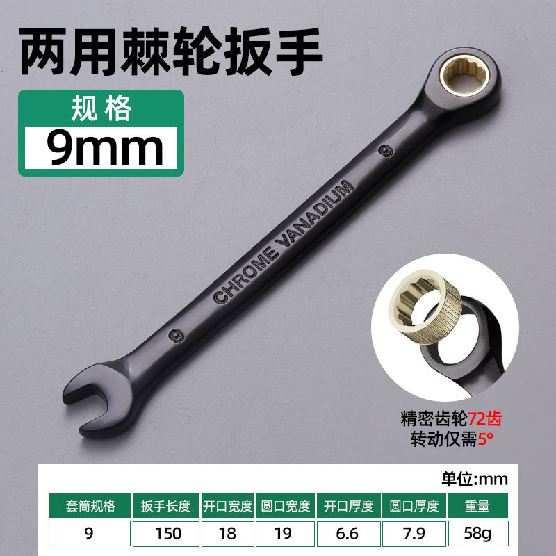 • 429, 블랙 골드 이중 목적 래칫 렌치 9mm, 360/개, 0.06kg