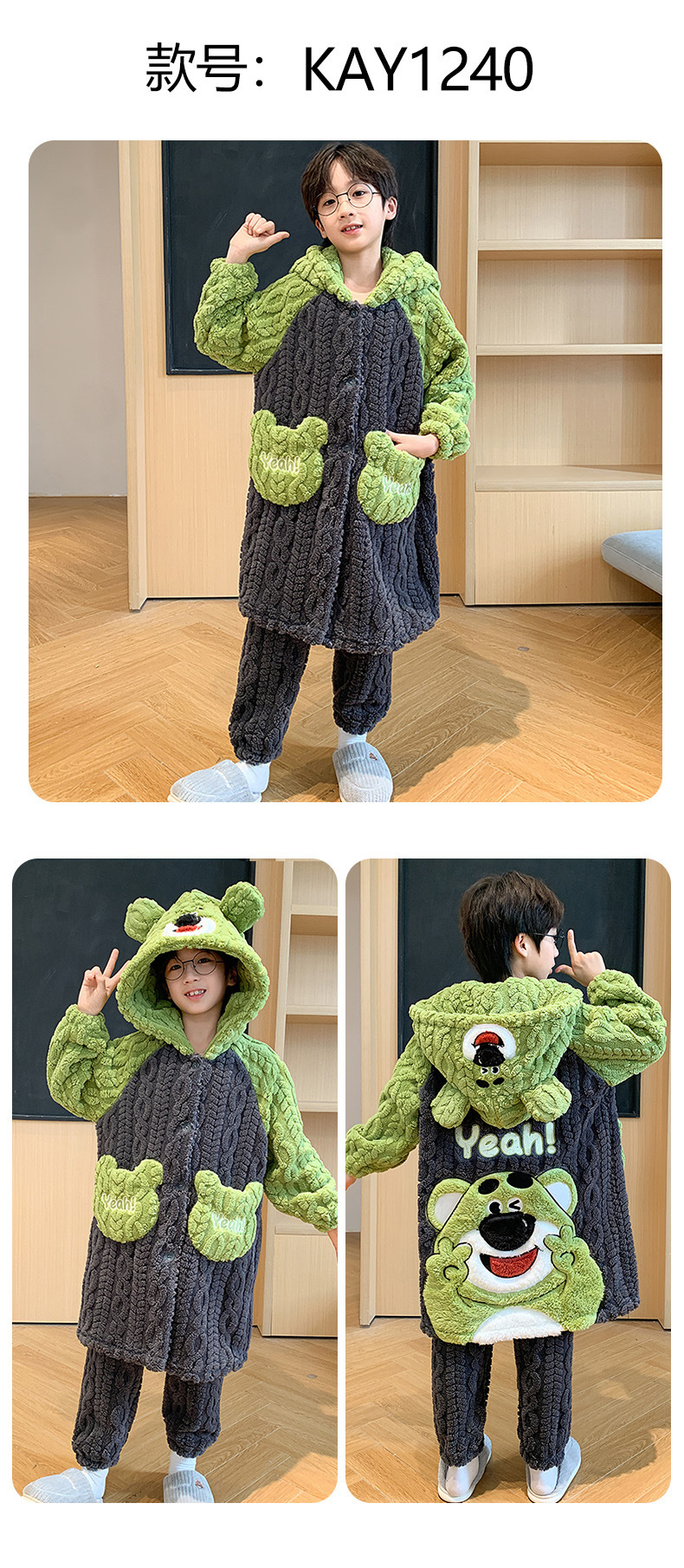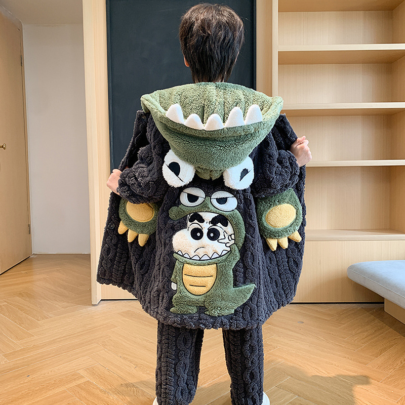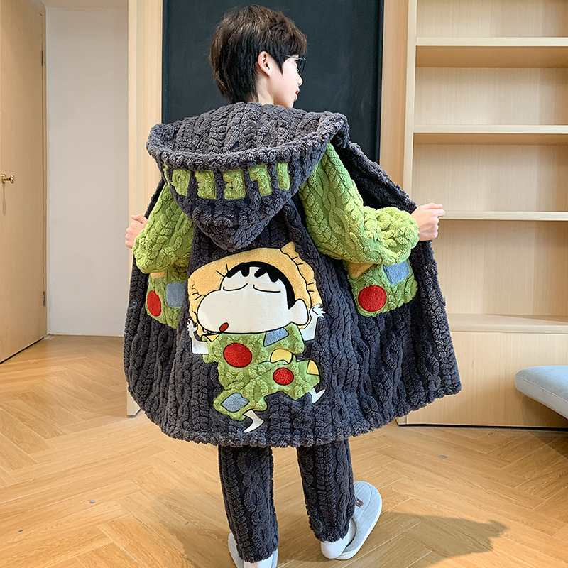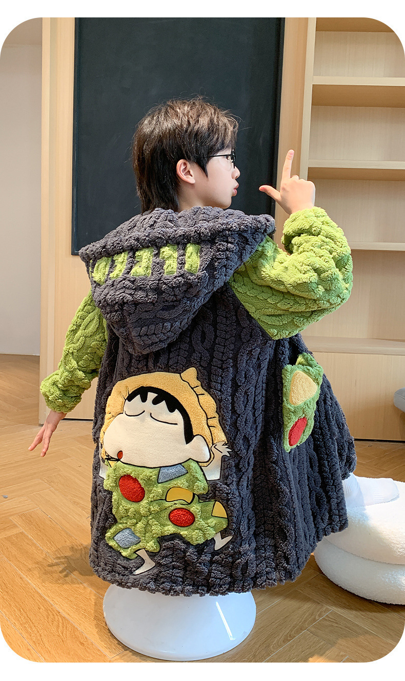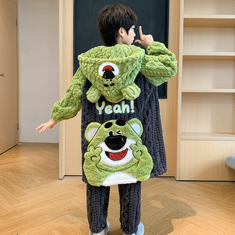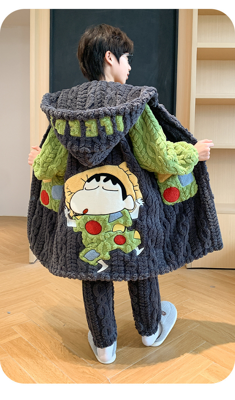 어린이 잠옷 겨울 소년 산호 양털 나이트 가운 큰 어린이 두꺼운 따뜻한 플란넬 만화 목욕 가운 홈 옷