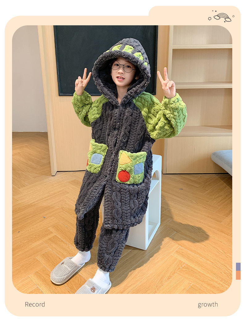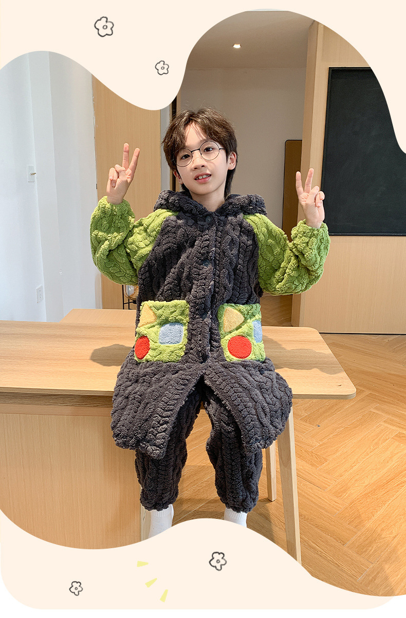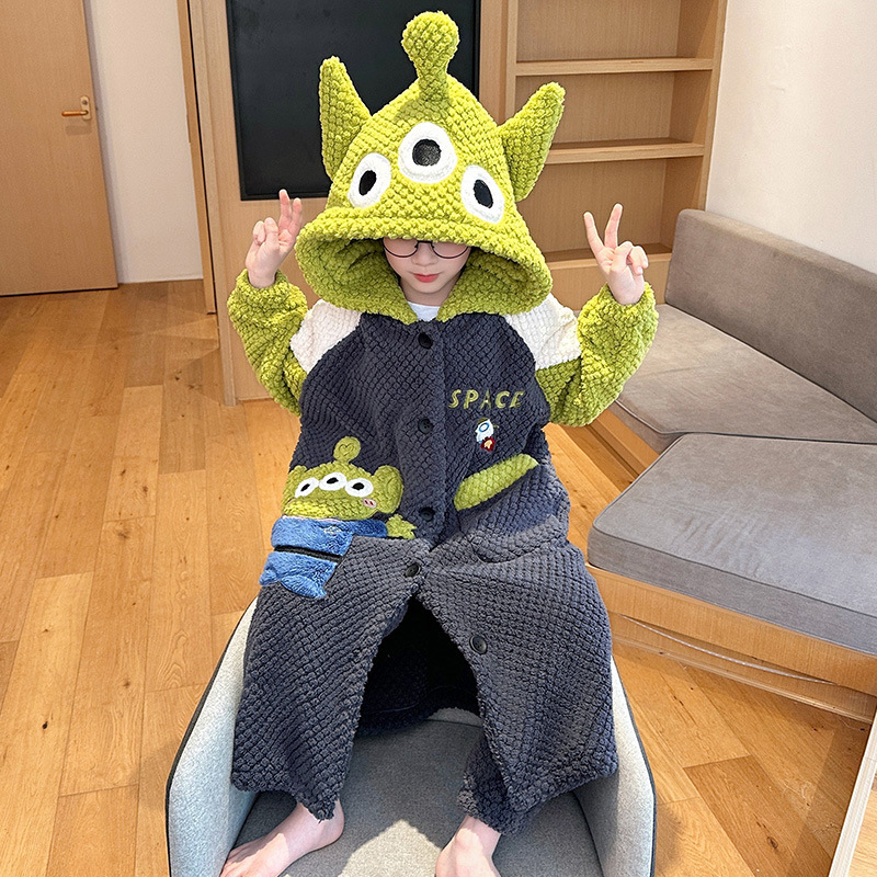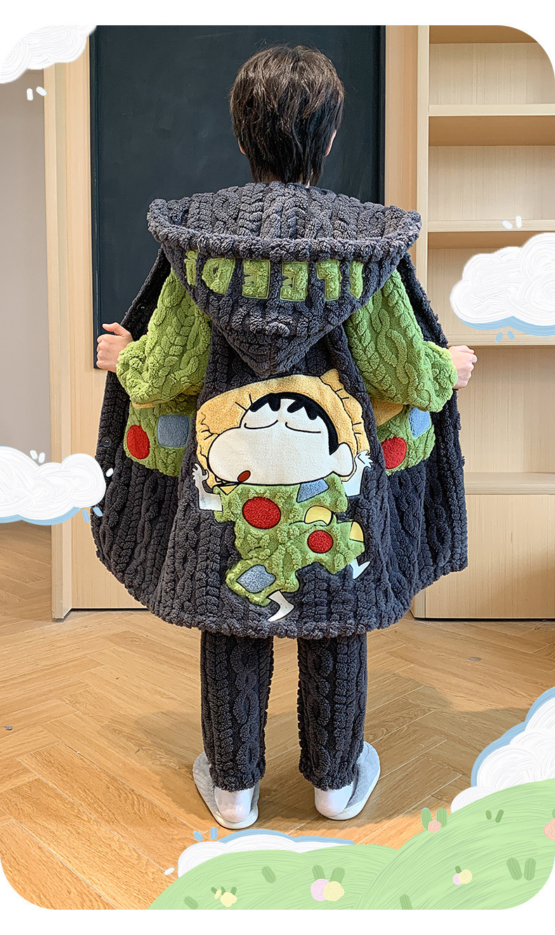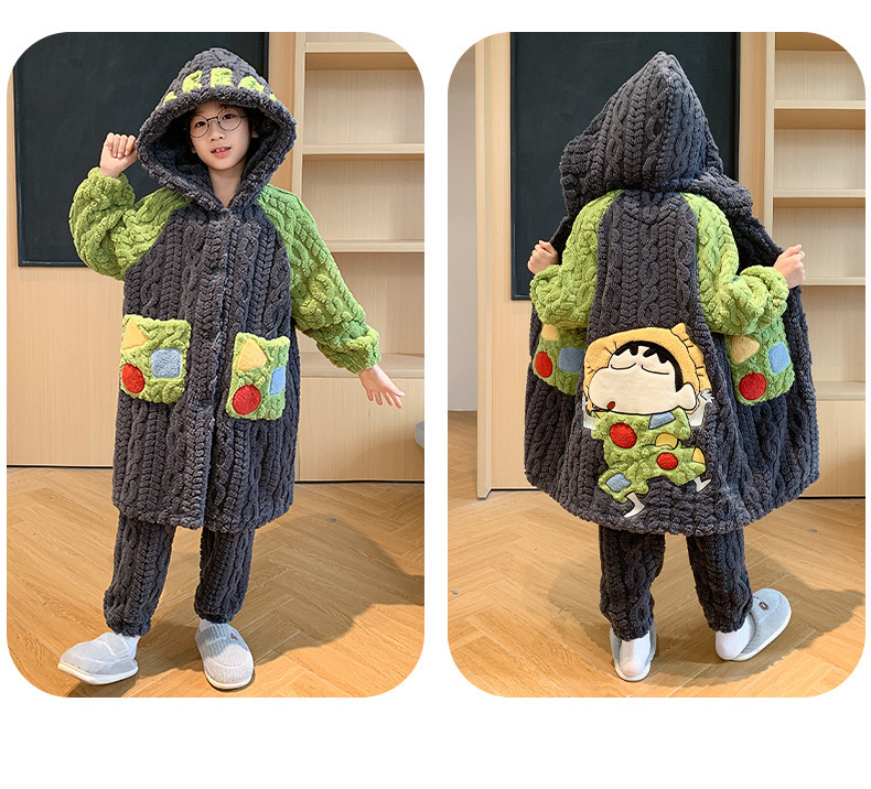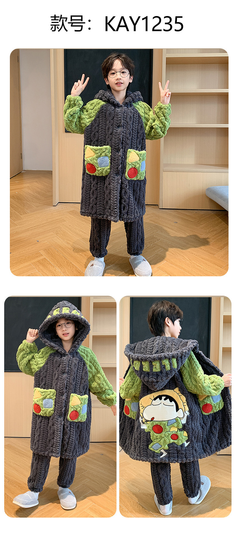 어린이 잠옷 겨울 소년 산호 양털 나이트 가운 큰 어린이 두꺼운 따뜻한 플란넬 만화 목욕 가운 홈 옷