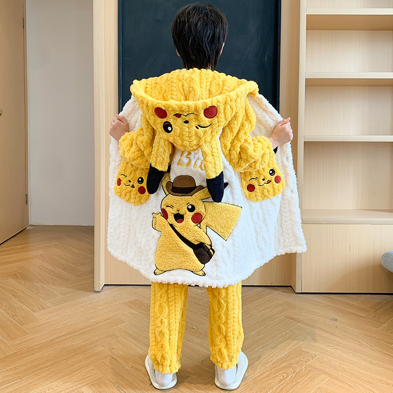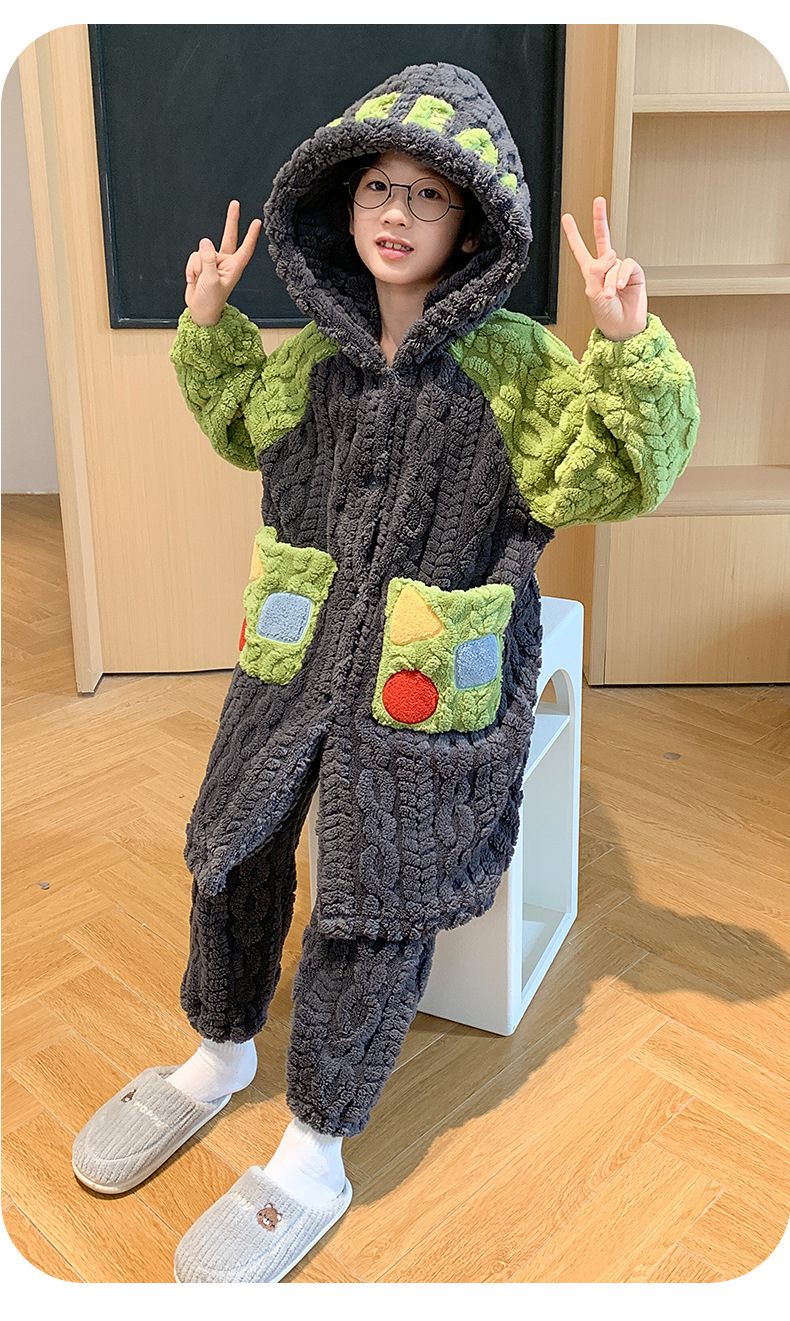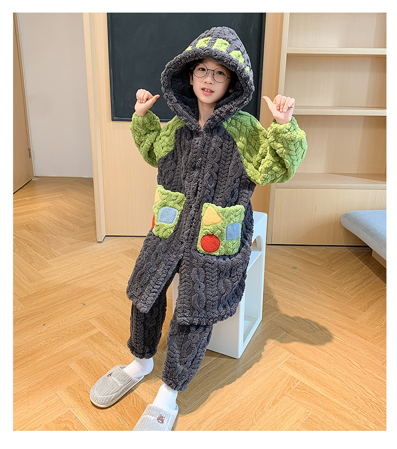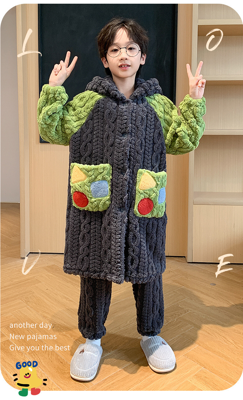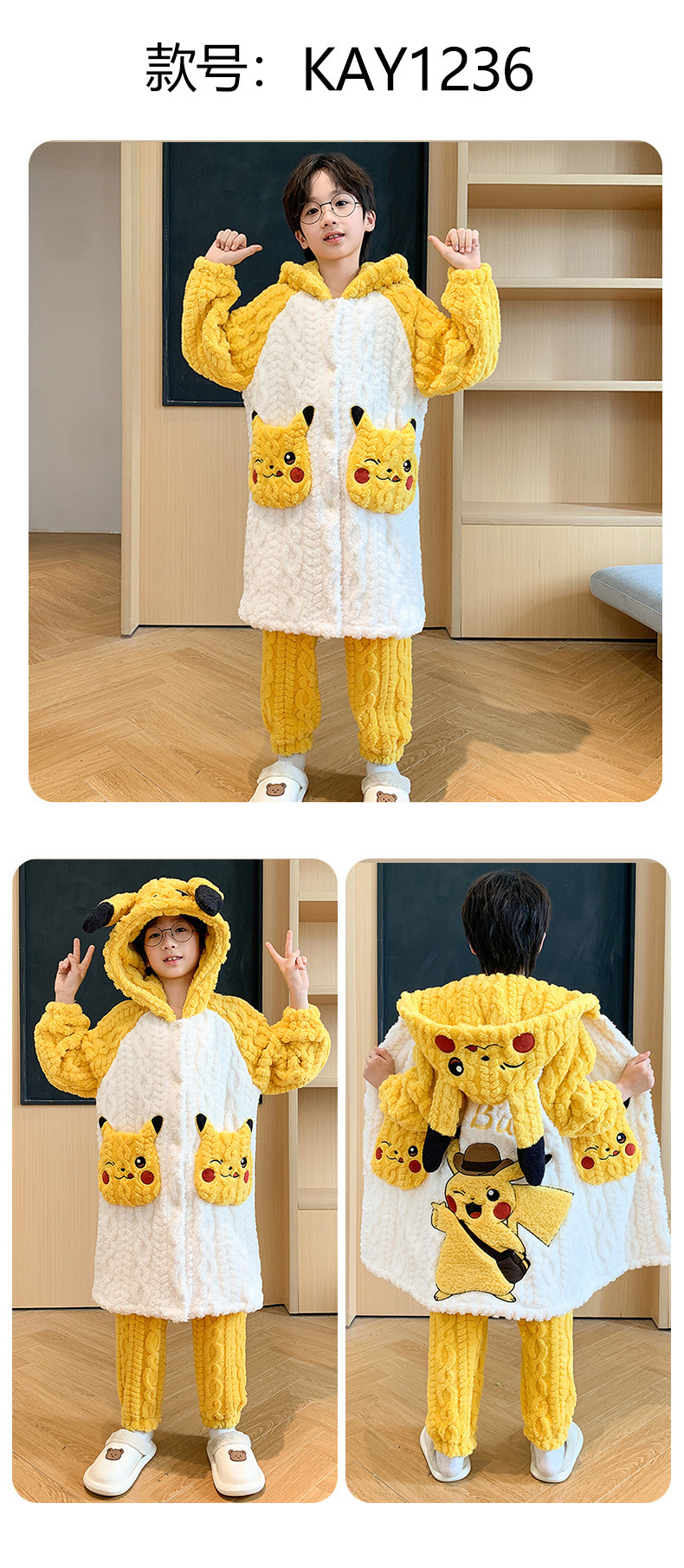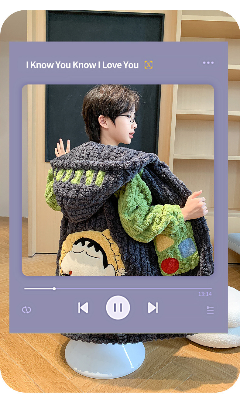 어린이 잠옷 겨울 소년 산호 양털 나이트 가운 큰 어린이 두꺼운 따뜻한 플란넬 만화 목욕 가운 홈 옷