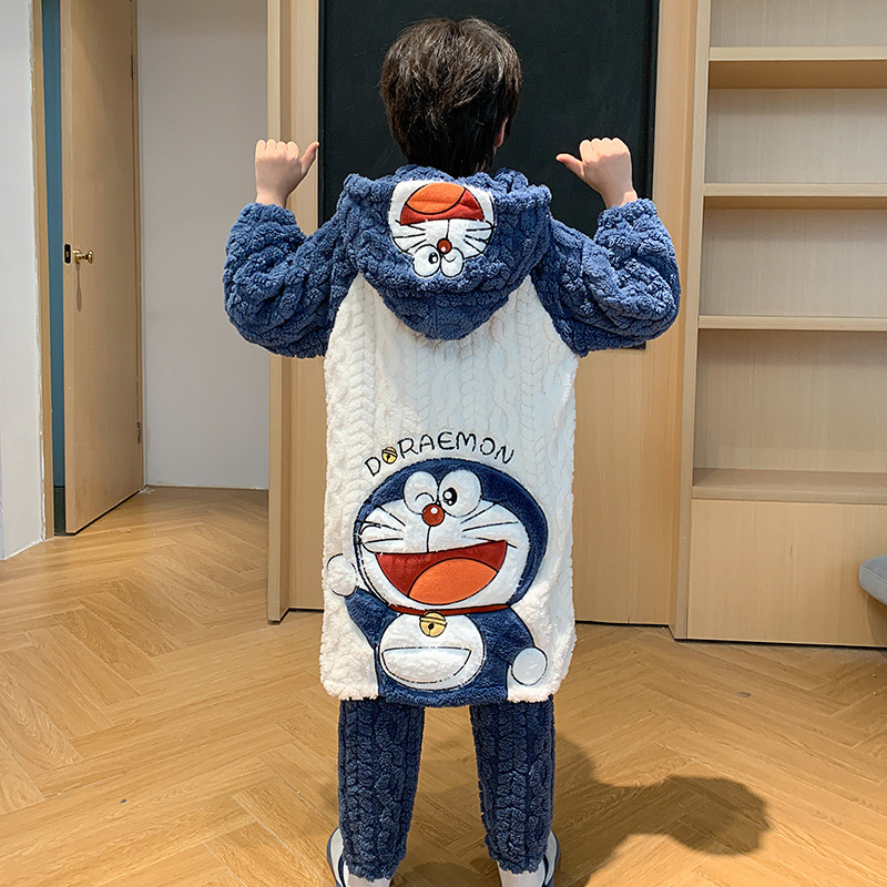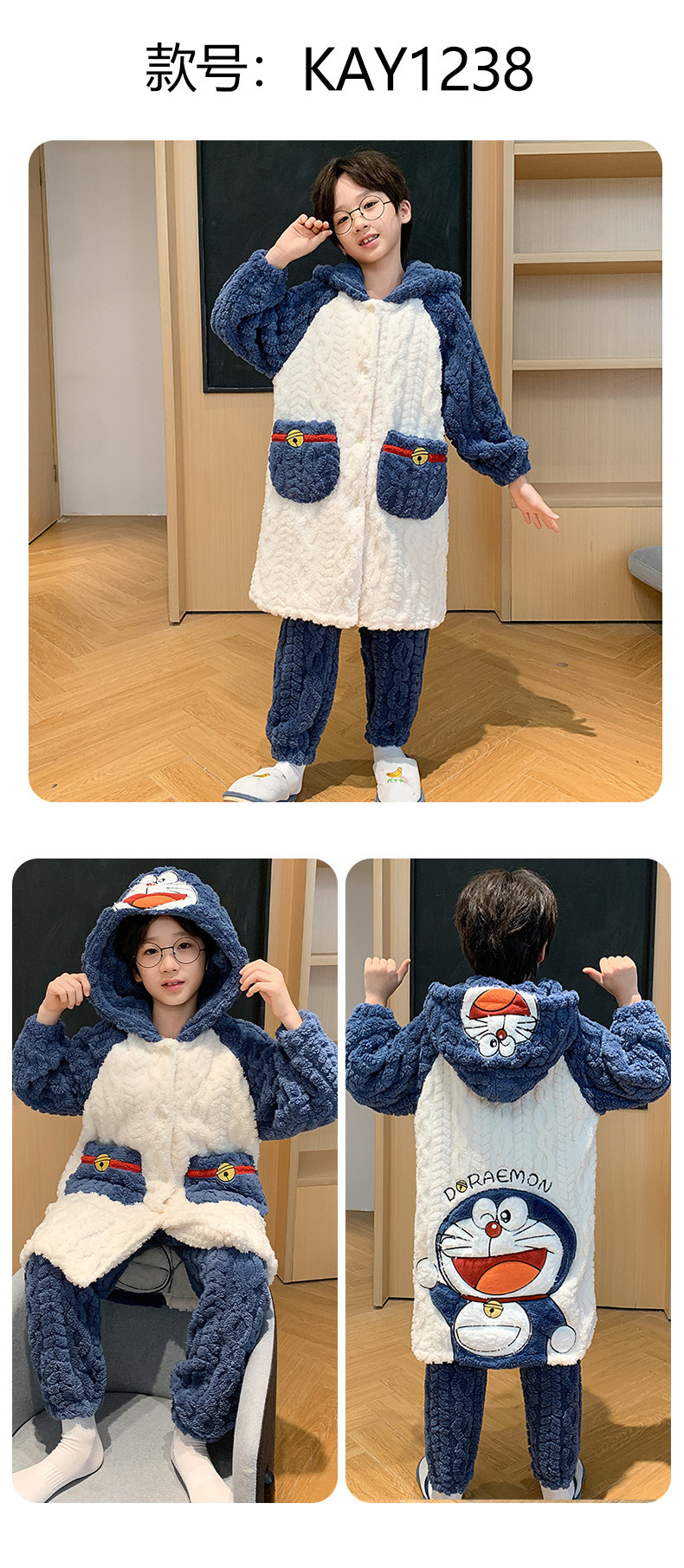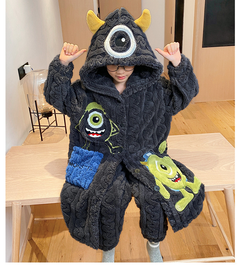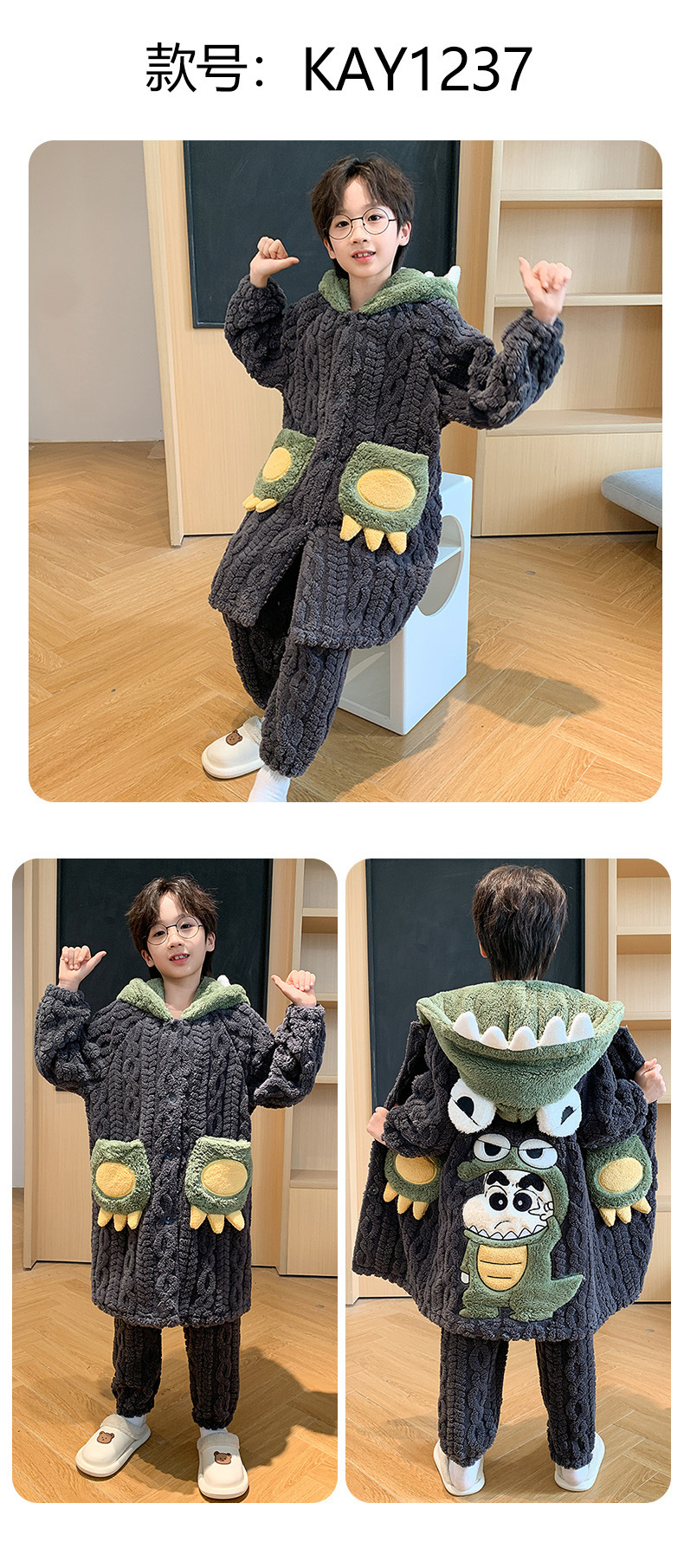 어린이 잠옷 겨울 소년 산호 양털 나이트 가운 큰 어린이 두꺼운 따뜻한 플란넬 만화 목욕 가운 홈 옷스토어 가기