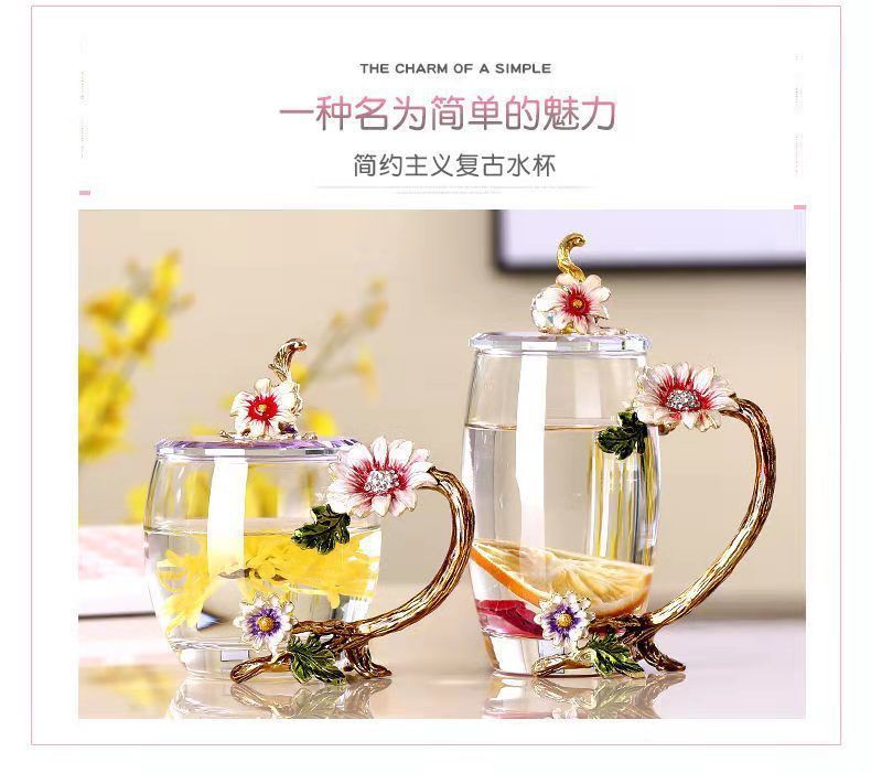 신선한 에나멜 컬러 워터 컵 티 컵 가정용 좋은 크리스탈 유리 꽃 티 컵 선물 여자 친구 핑 실행스토어 가기
