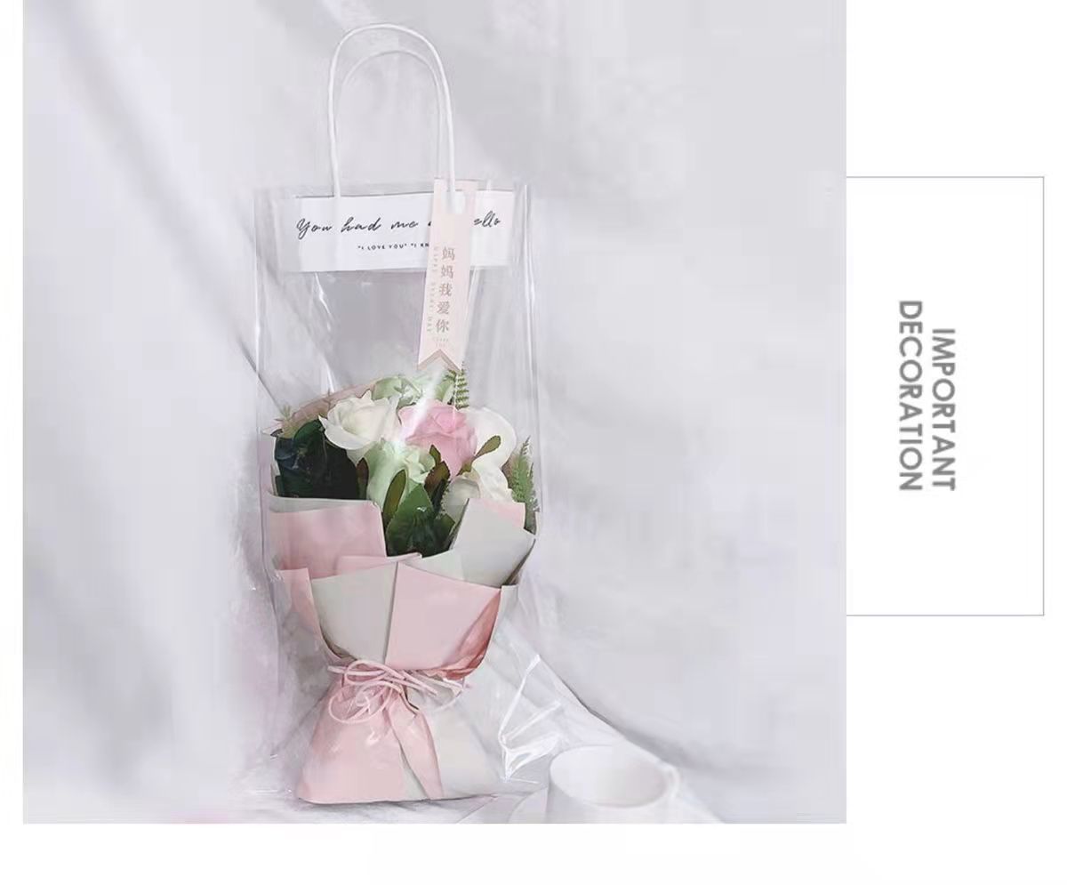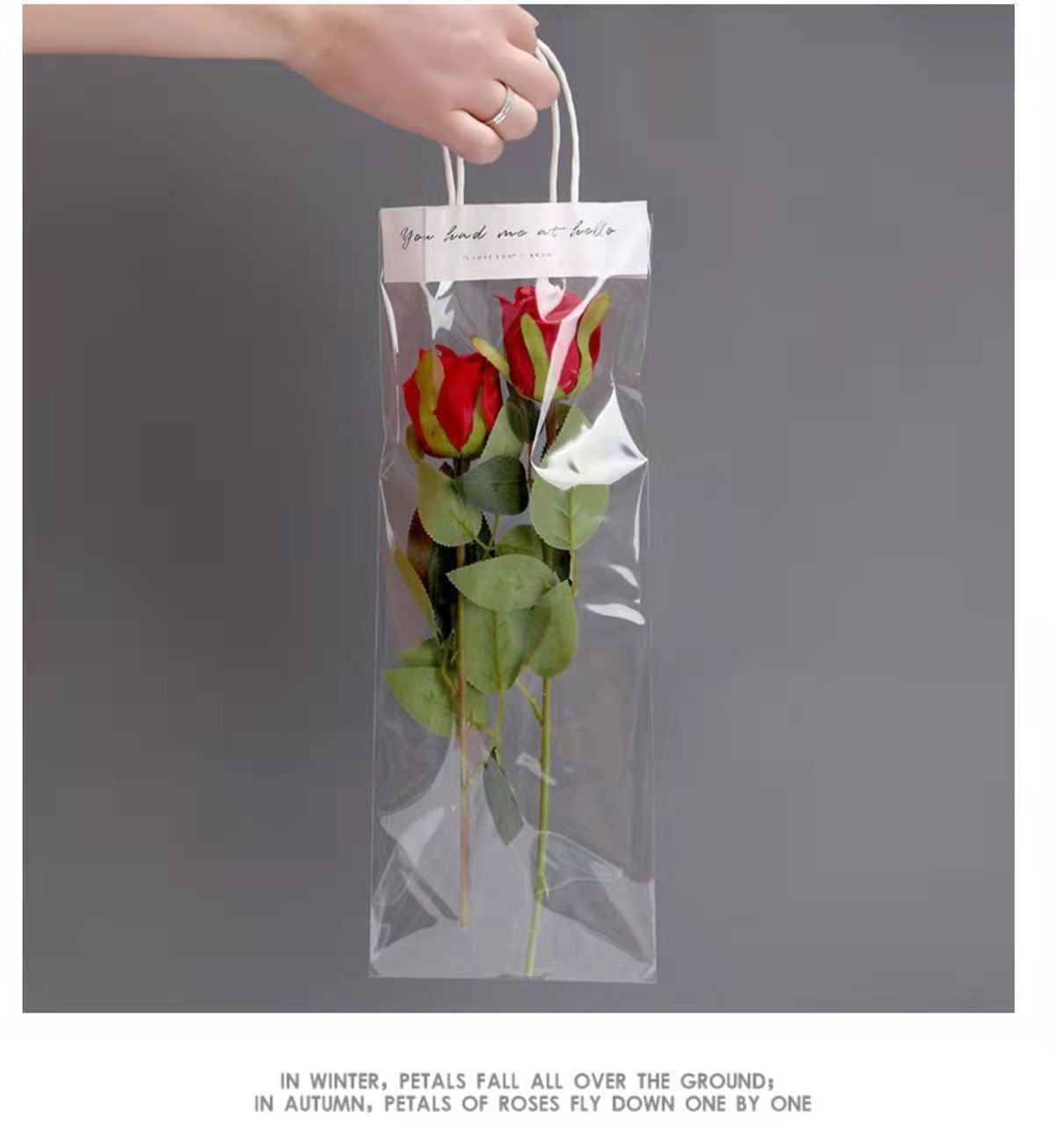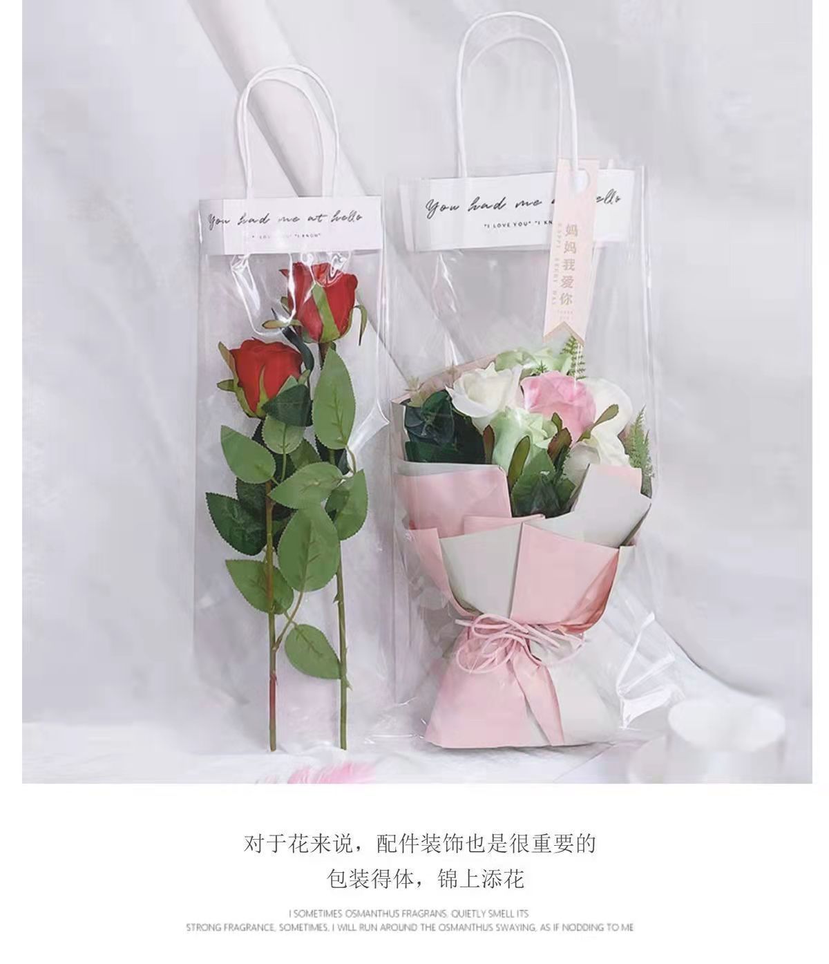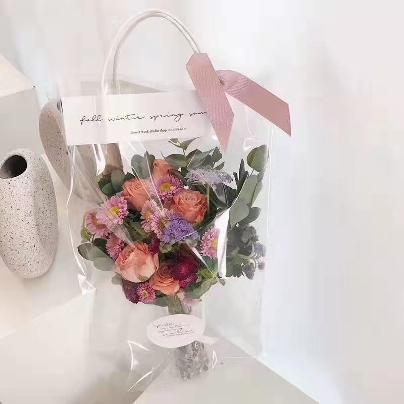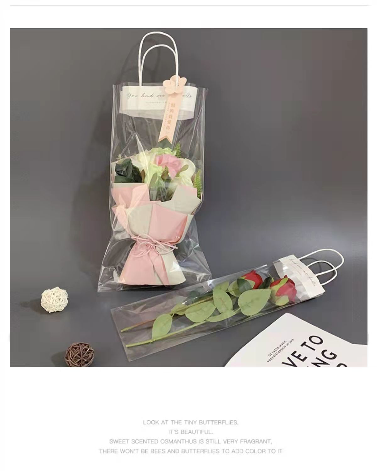 꽃 투명 핸드백 선물 가방 선물 상자 교사의 날 휴대용 꽃다발 포장 가방 opp 가방 포장 핑 런스토어 가기