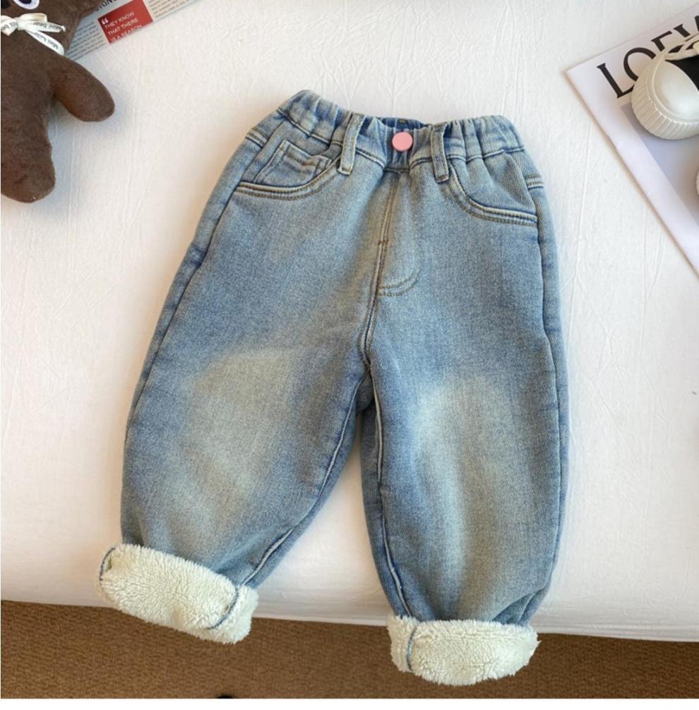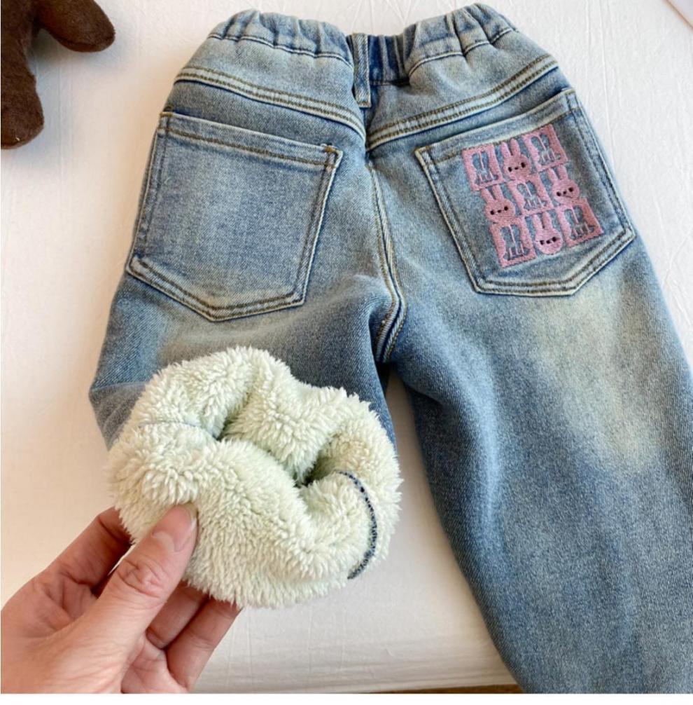 Ankora 레드 걸스 벨벳 바지 2025 겨울 새 스타일 어린 소녀 두꺼운 유행 청바지 공주 트렌드스토어 가기