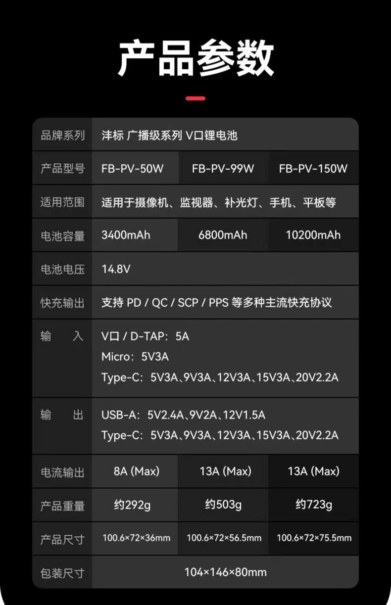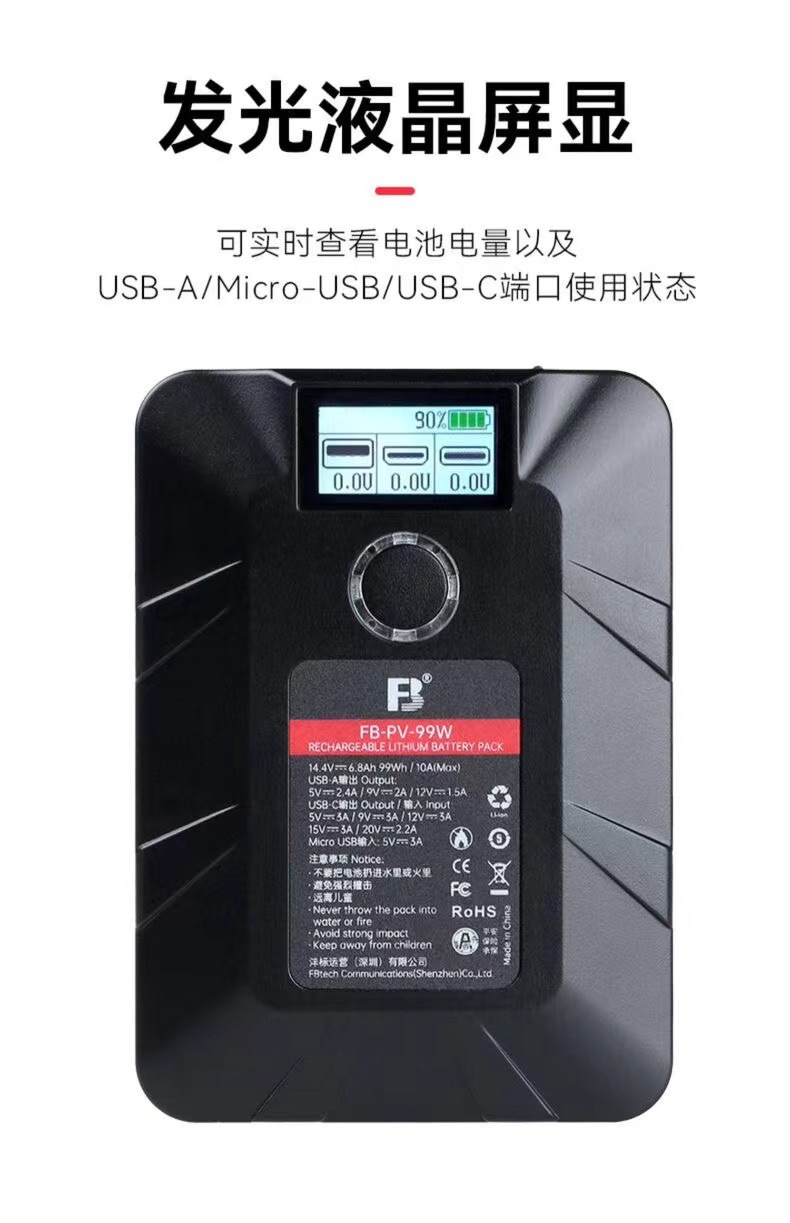 Fengbiao FBPV-99WV-port 리튬 배터리 포켓 배터리 V 포트 작은 리튬 배터리 V 포트 전원 공급 장치 조명