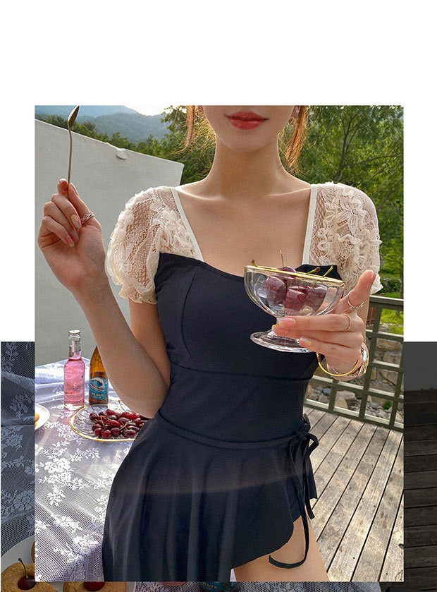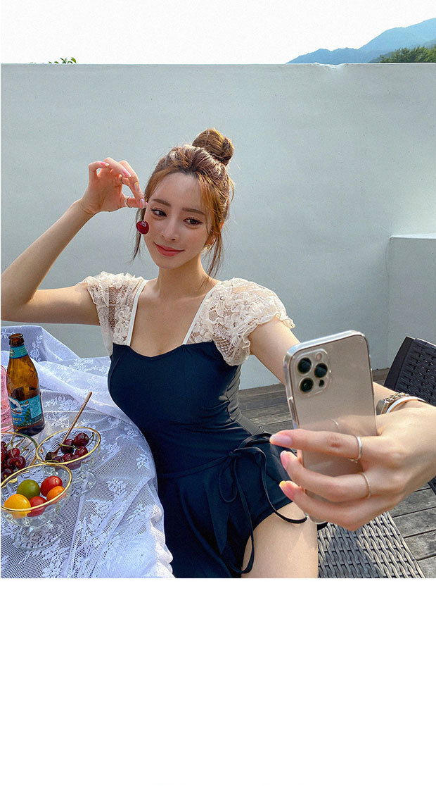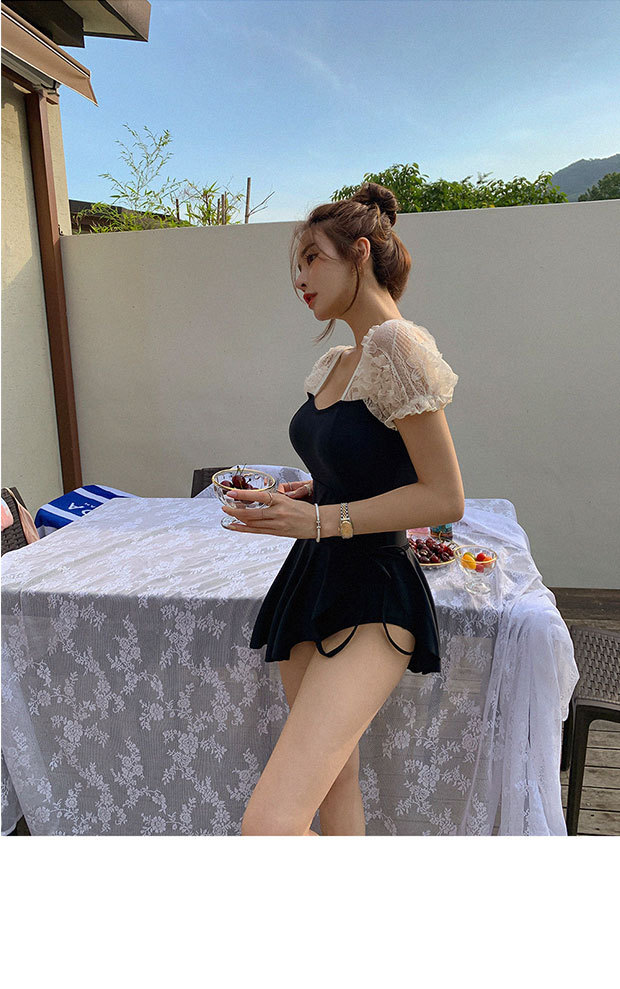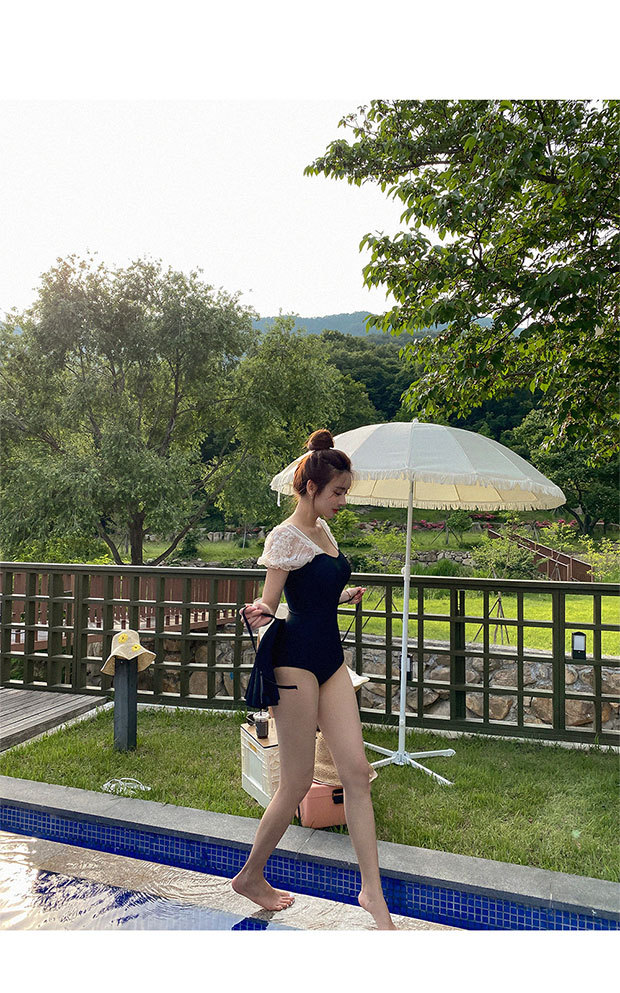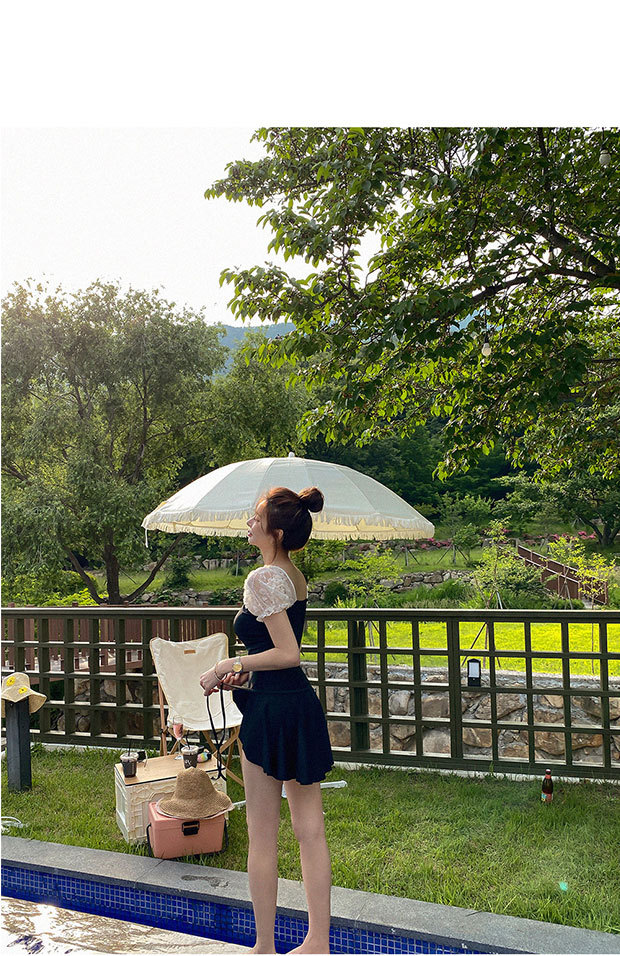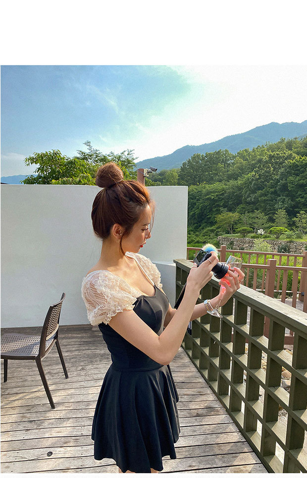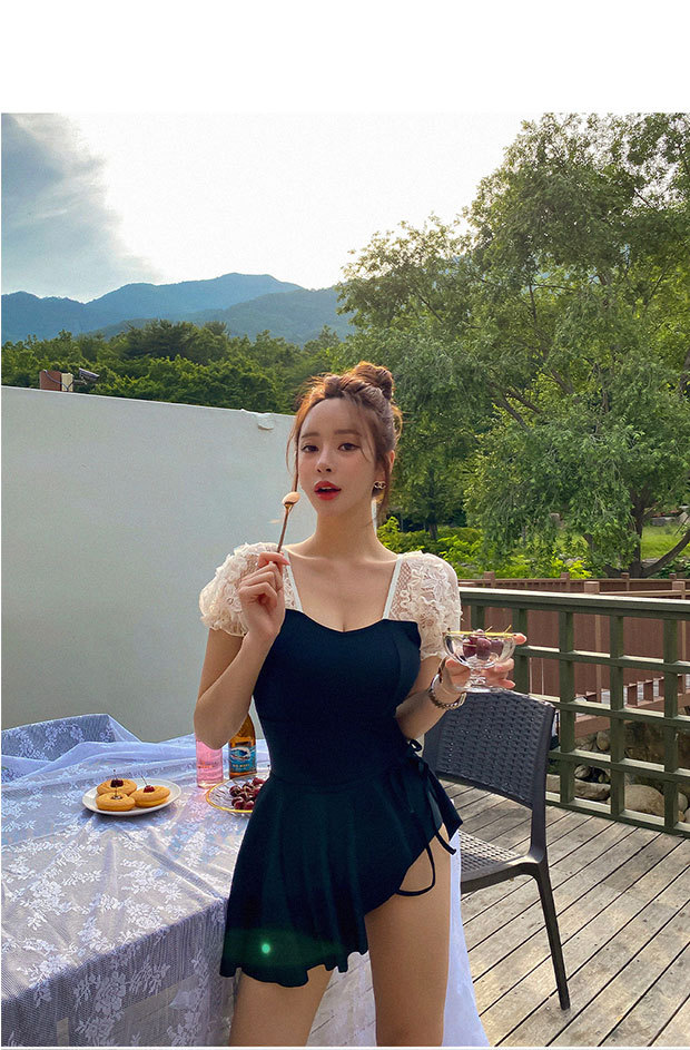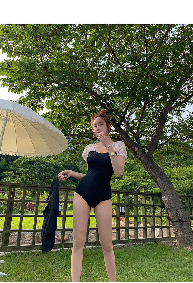 수영복 여성 여름 한국 ins2024 새로운 스타일 벨리 커버 슬림 보수 원피스 작은 가슴 온천 블랙 패션
