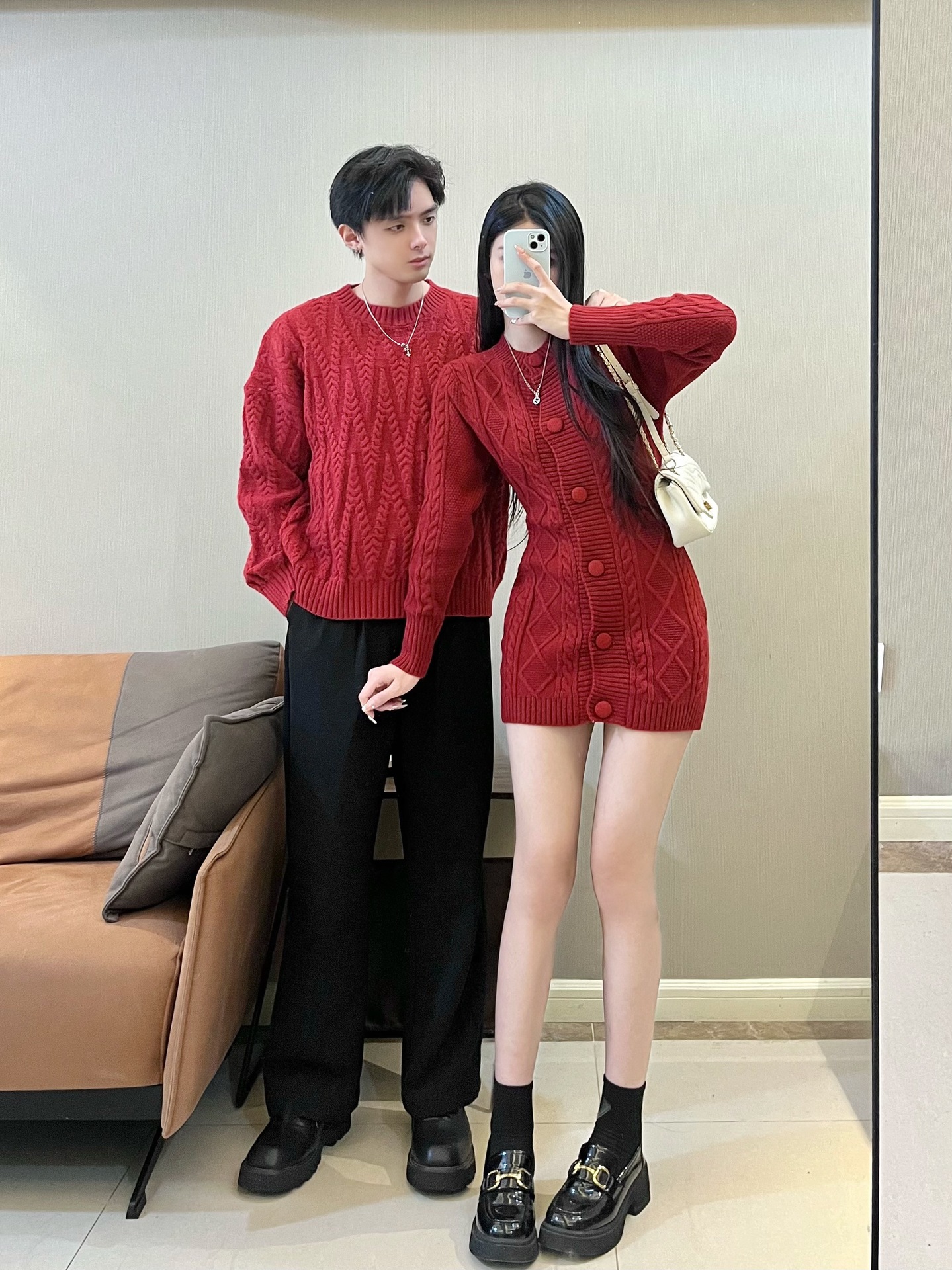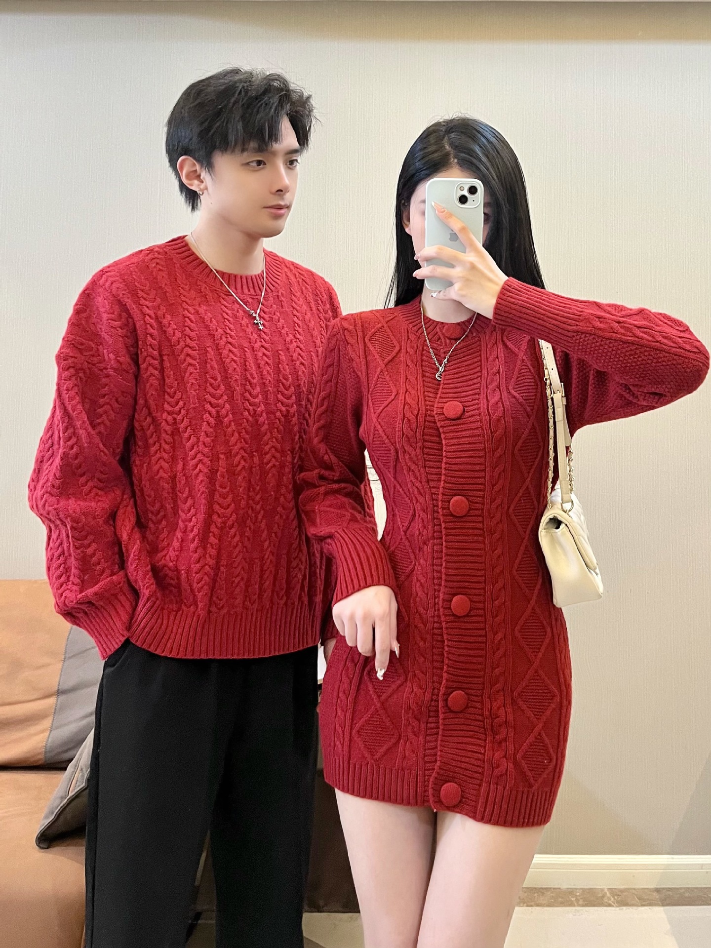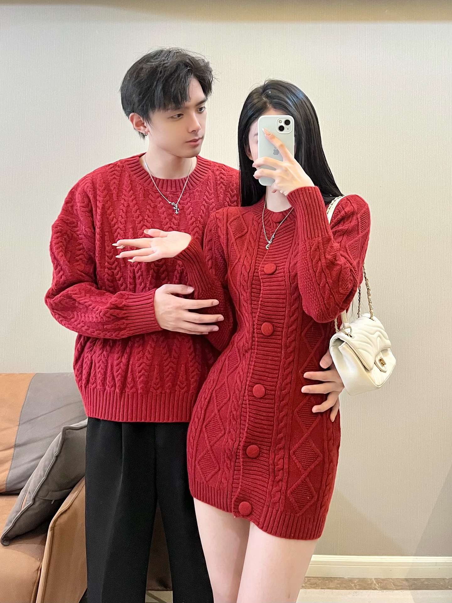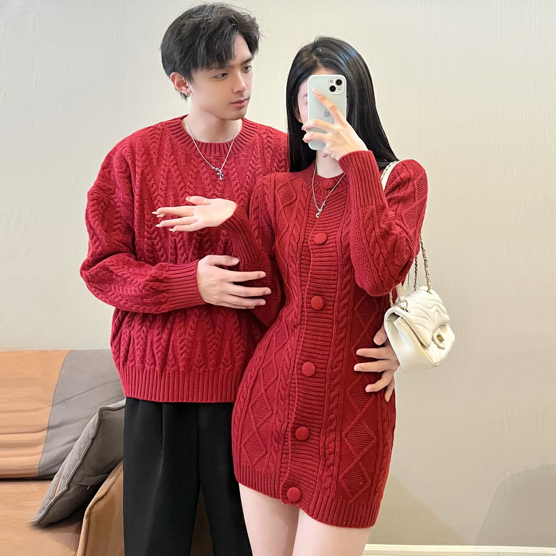 2024 가을 겨울 축제 새해 레드 커플 스웨터 여성 슬림 핏 스웨터 원피스 풀오버 스웨터 니트 스웨터스토어 가기
