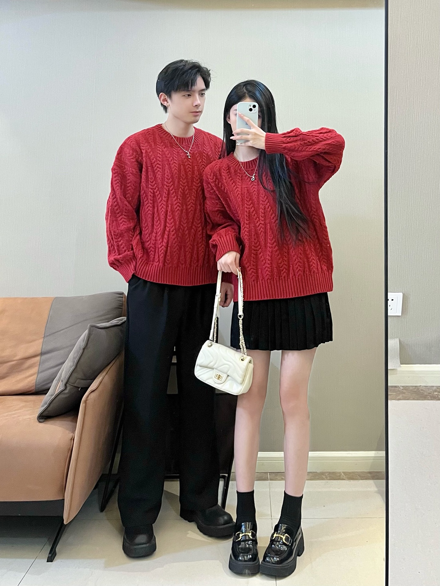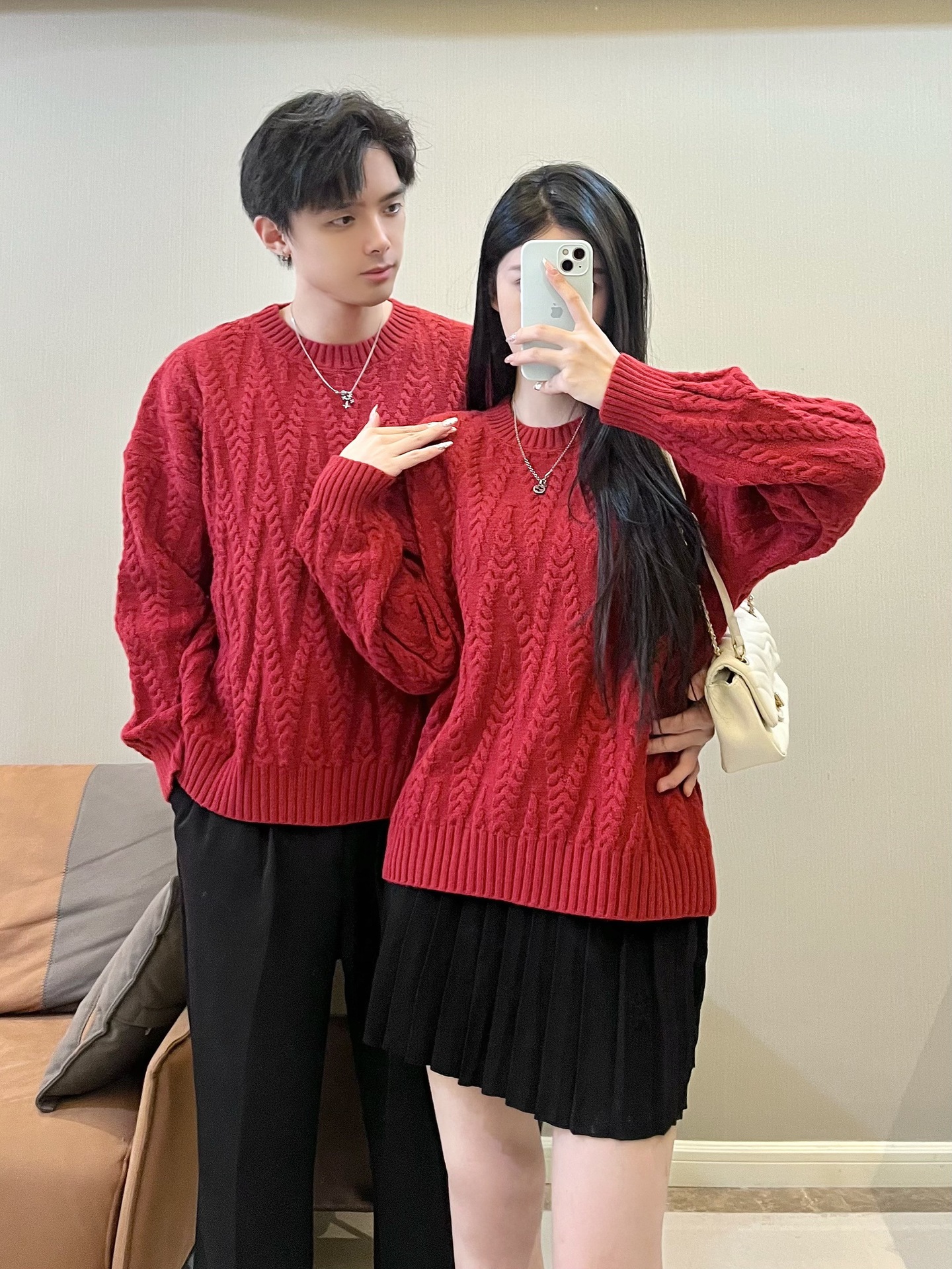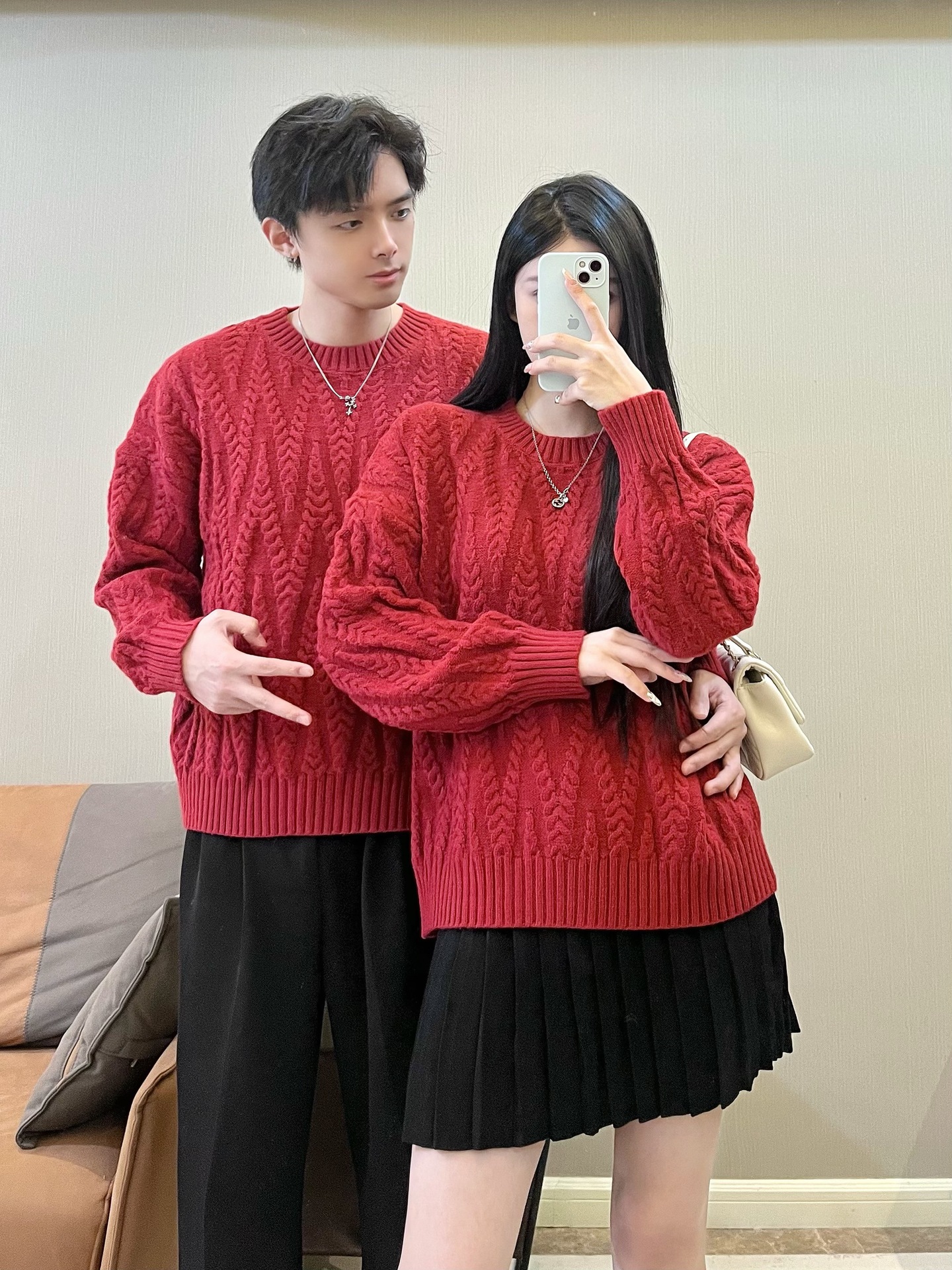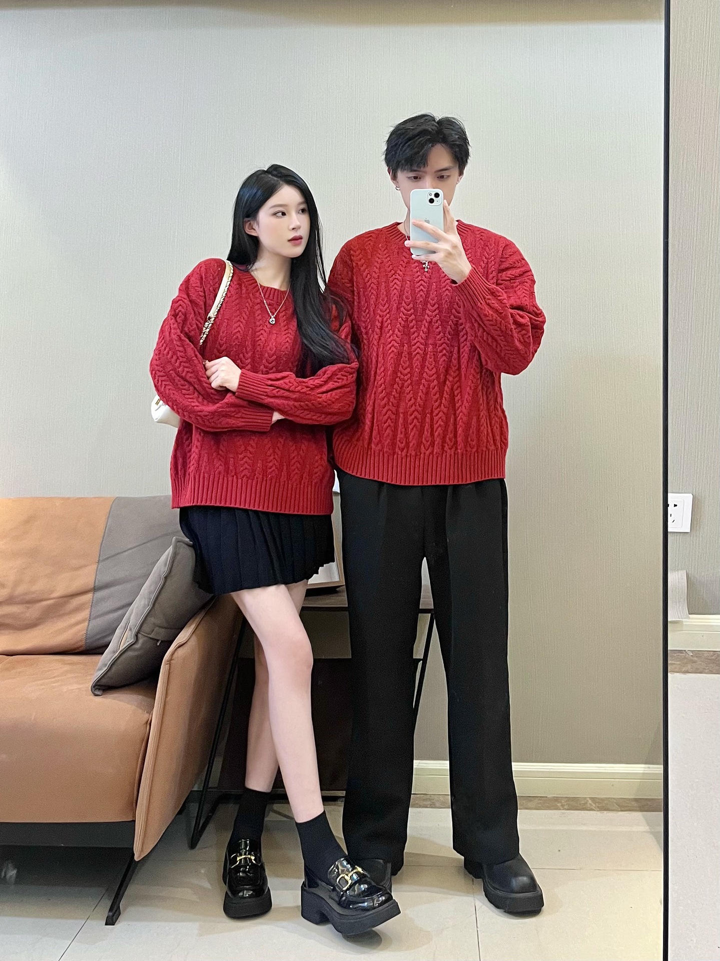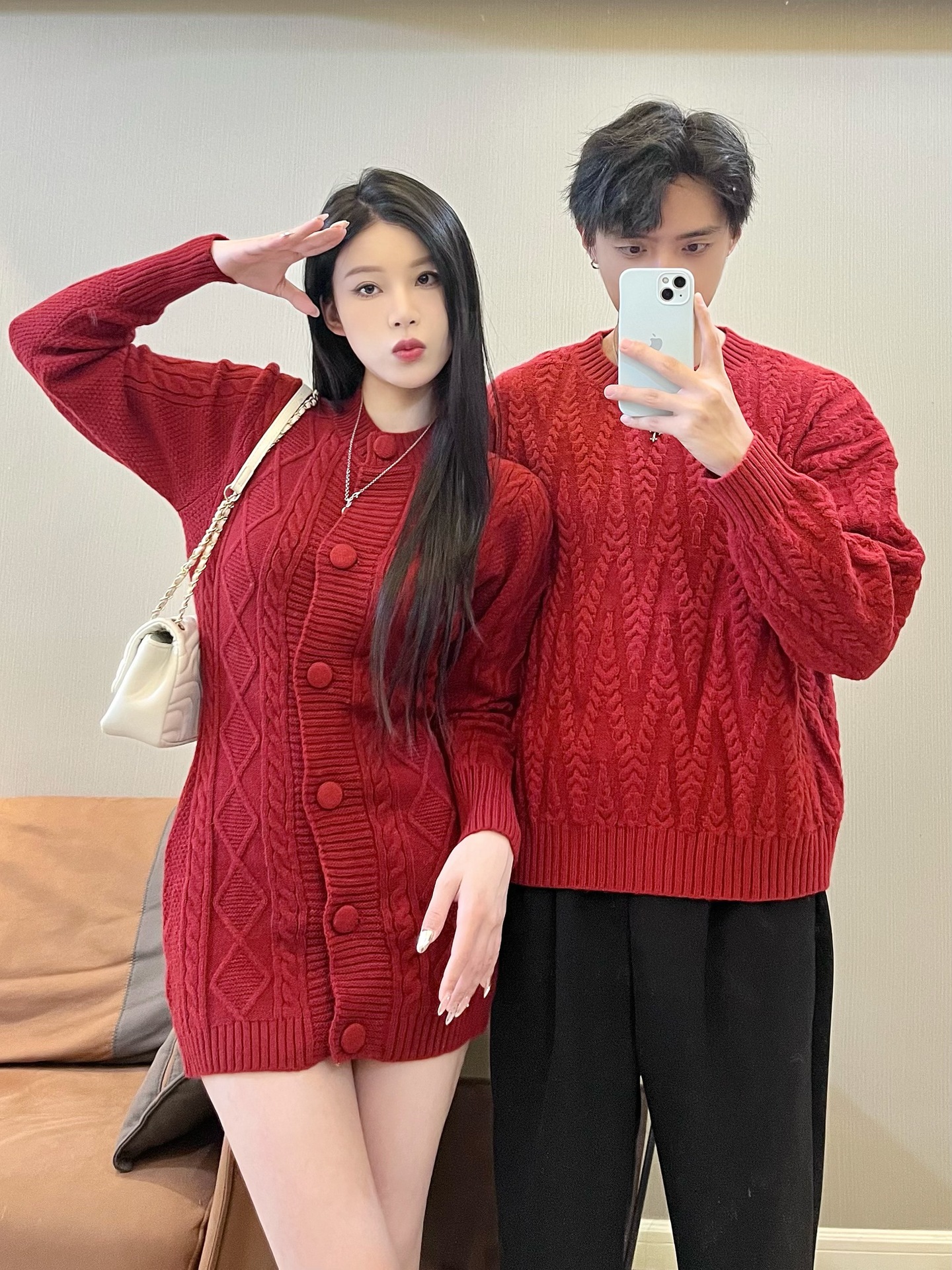 2024 가을 겨울 축제 새해 레드 커플 스웨터 여성 슬림 핏 스웨터 원피스 풀오버 스웨터 니트 스웨터스토어 가기