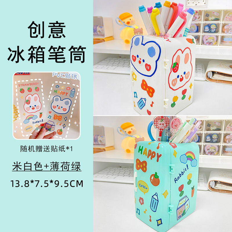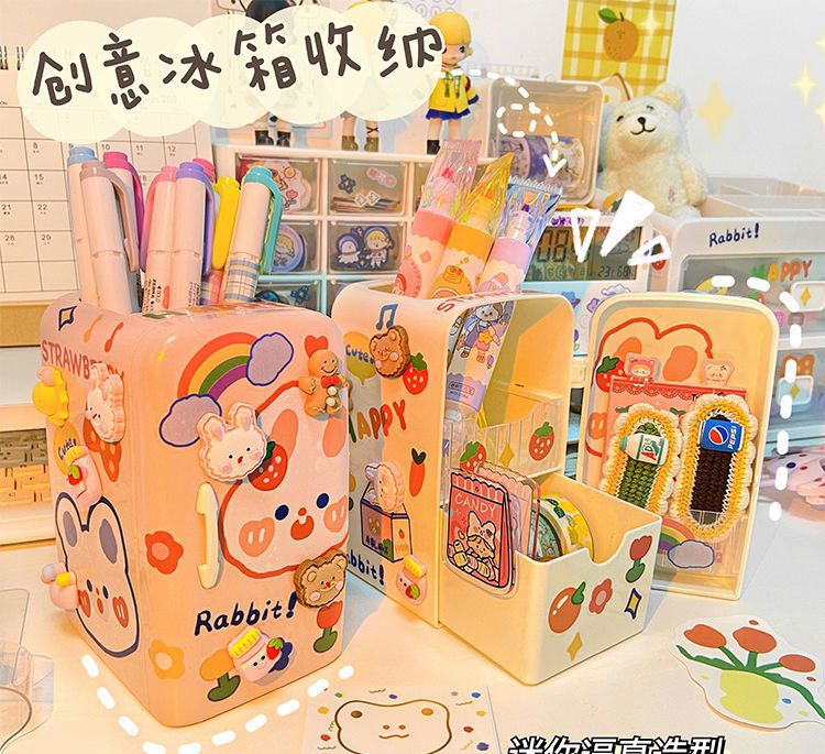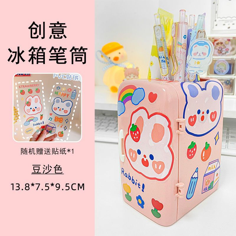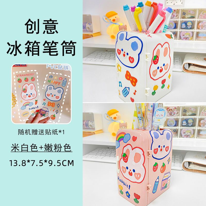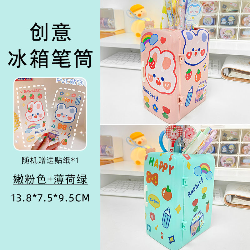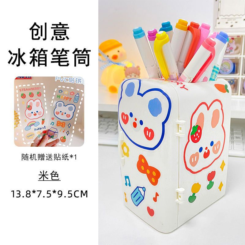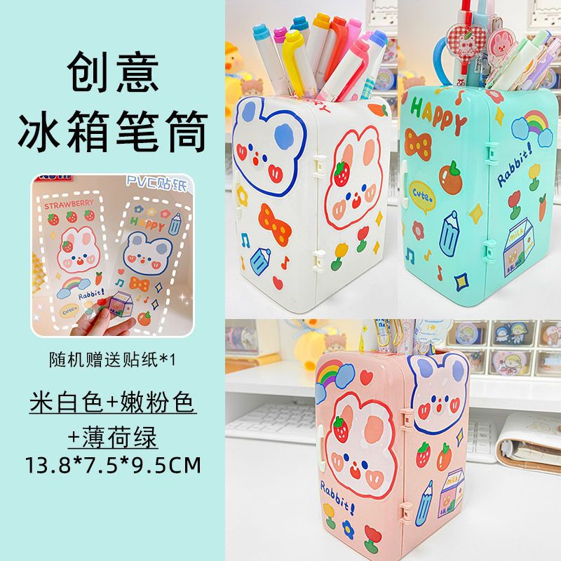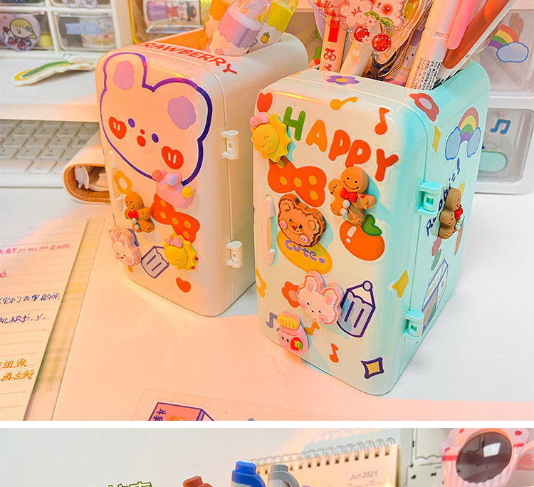 창조적 인 학생 펜 컨테이너 만화 귀여운 냉장고 스타일 데스크탑 대용량 다기능 저장 용기 펜 핑 실행스토어 가기