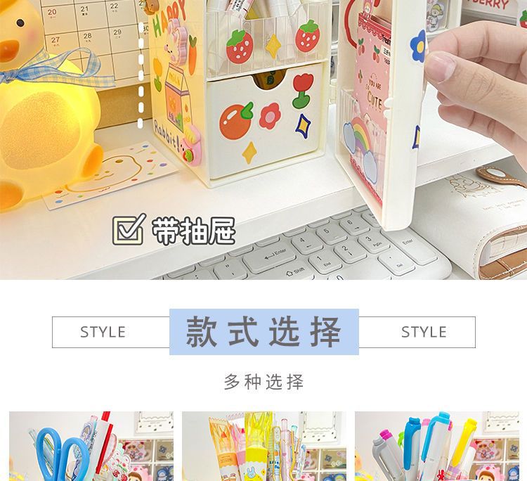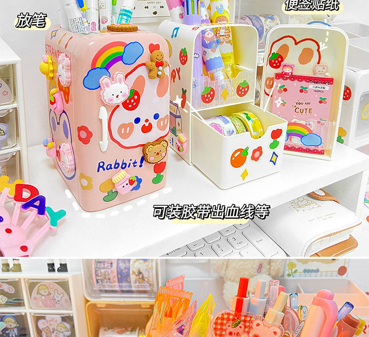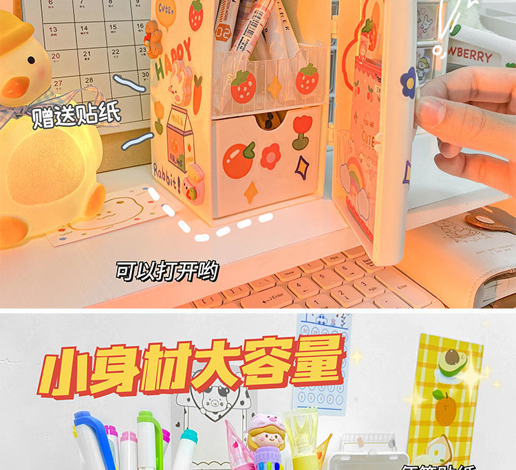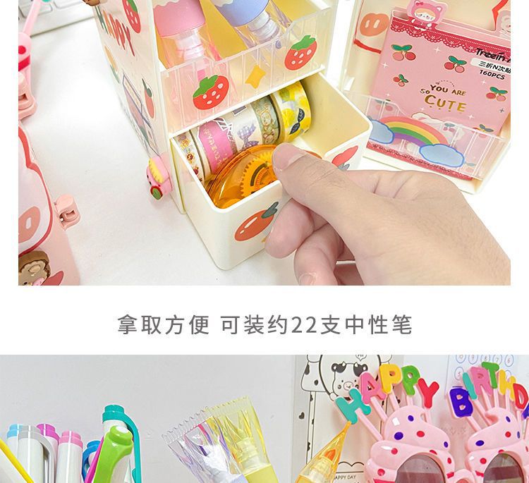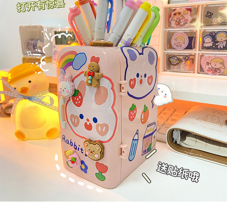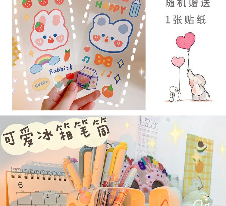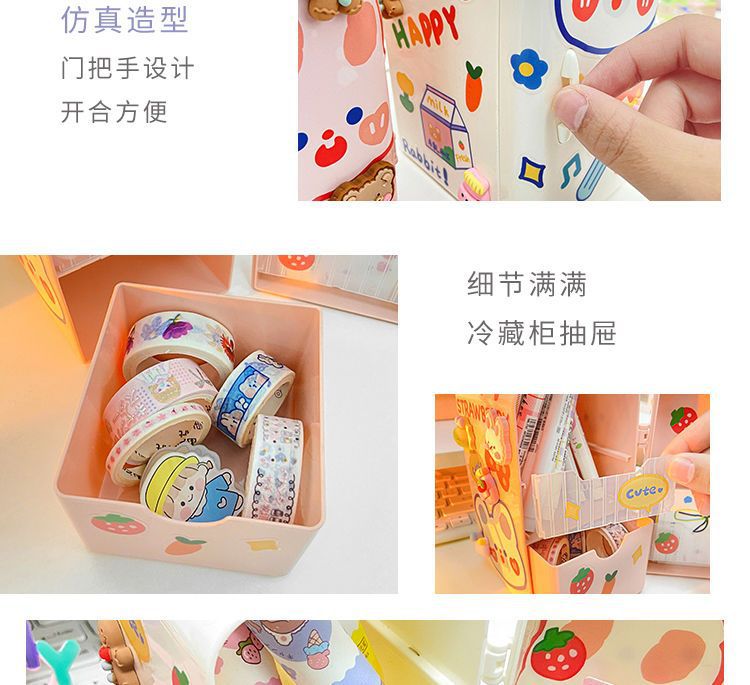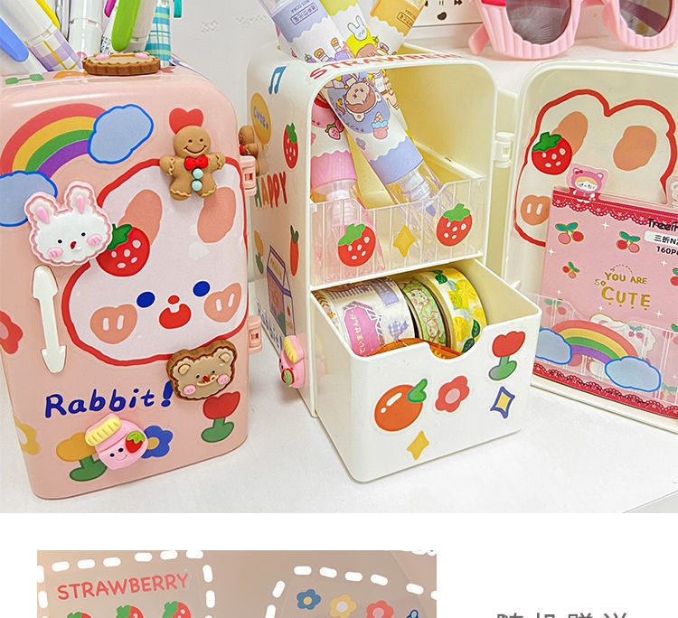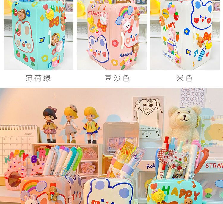 창조적 인 학생 펜 컨테이너 만화 귀여운 냉장고 스타일 데스크탑 대용량 다기능 저장 용기 펜 핑 실행스토어 가기