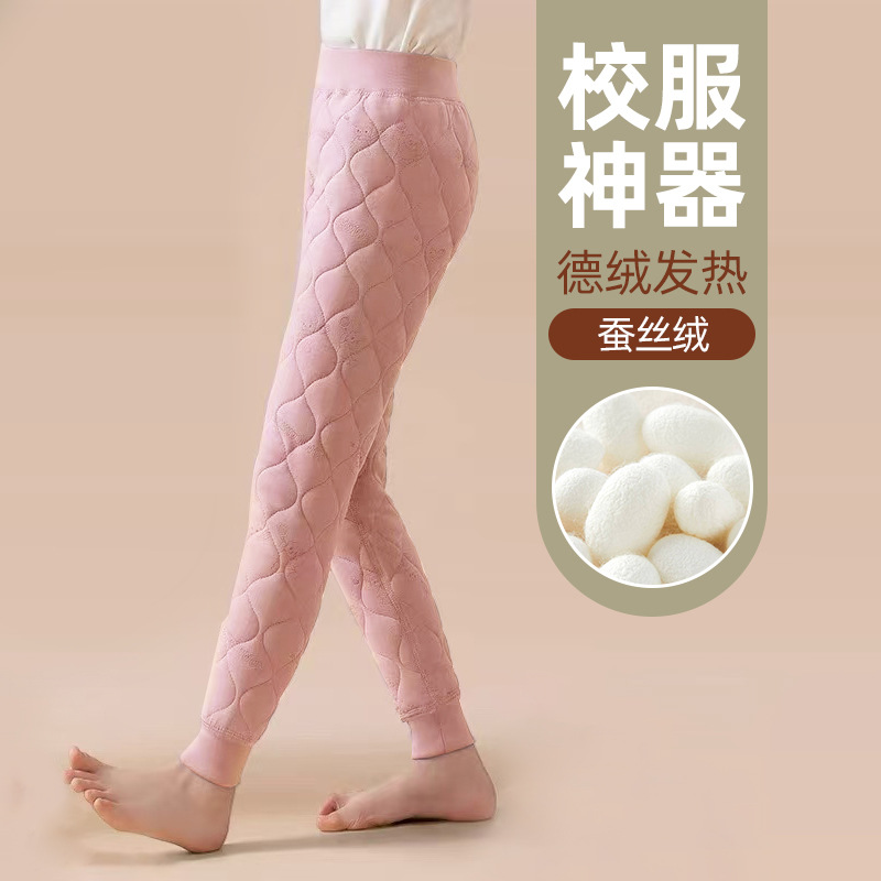 어린이 학교 유니폼 아티팩트 바지 따뜻한 바지 소년 면 바지 여자 학생 가을 겨울 두꺼운 내복 잠금 따뜻한 실크 바지스토어 가기