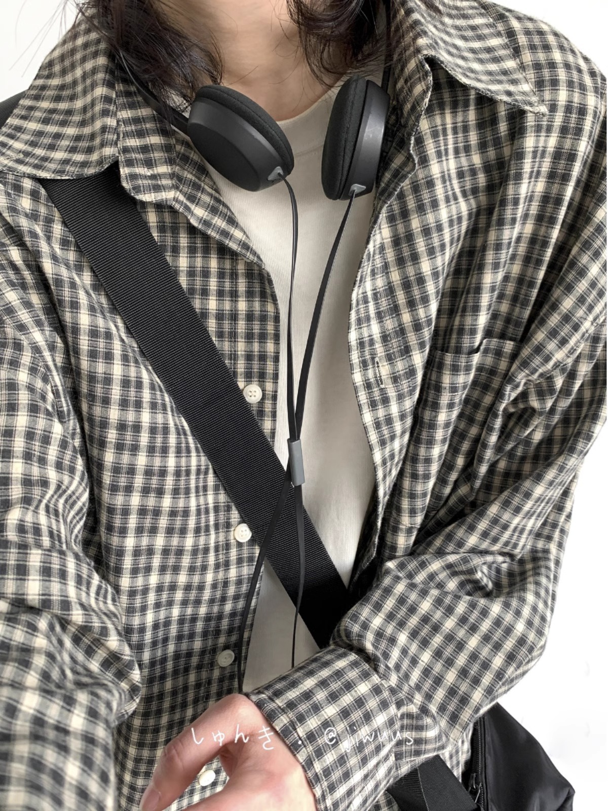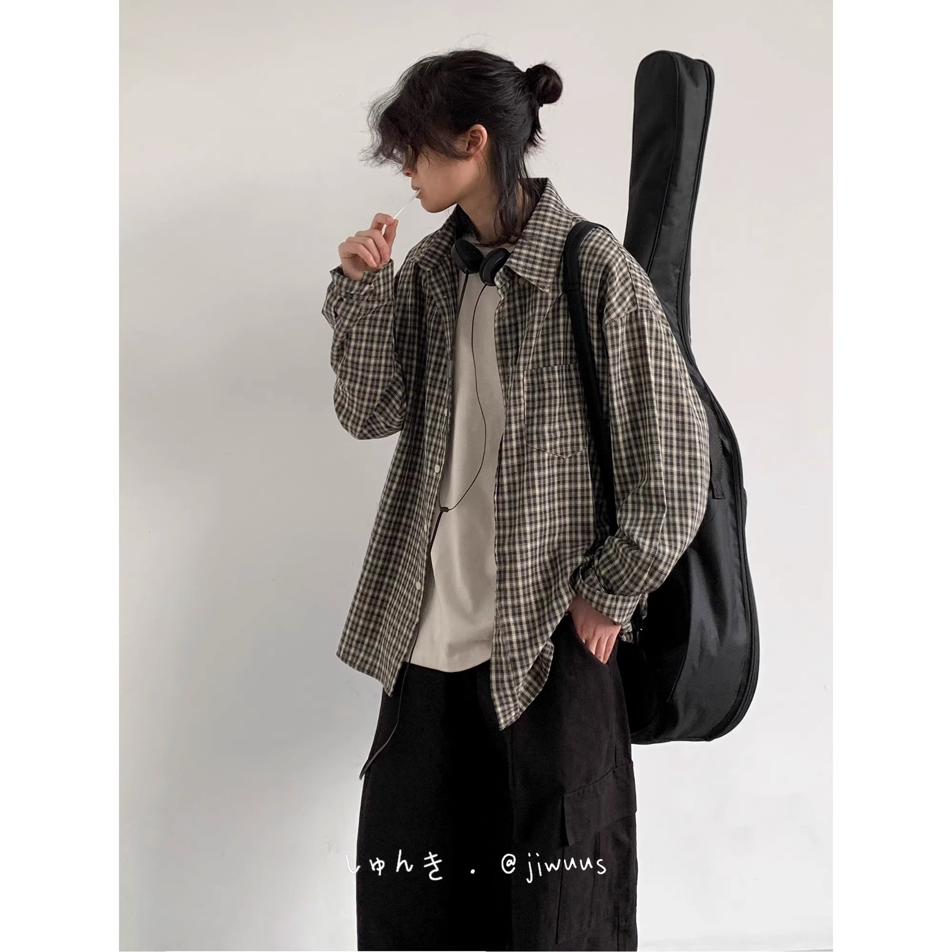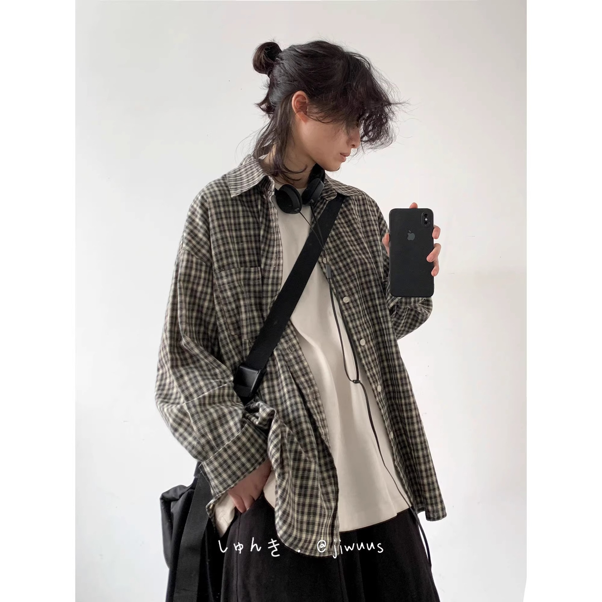 일본식 복고풍 격자 무늬 긴팔 셔츠 남자 봄과 가을 새로운 도착 도시 루즈 올 매치 셔츠 재킷