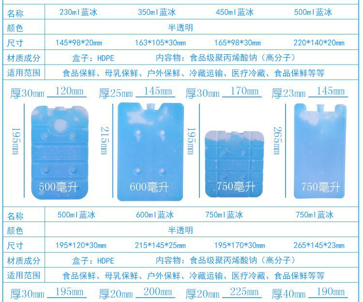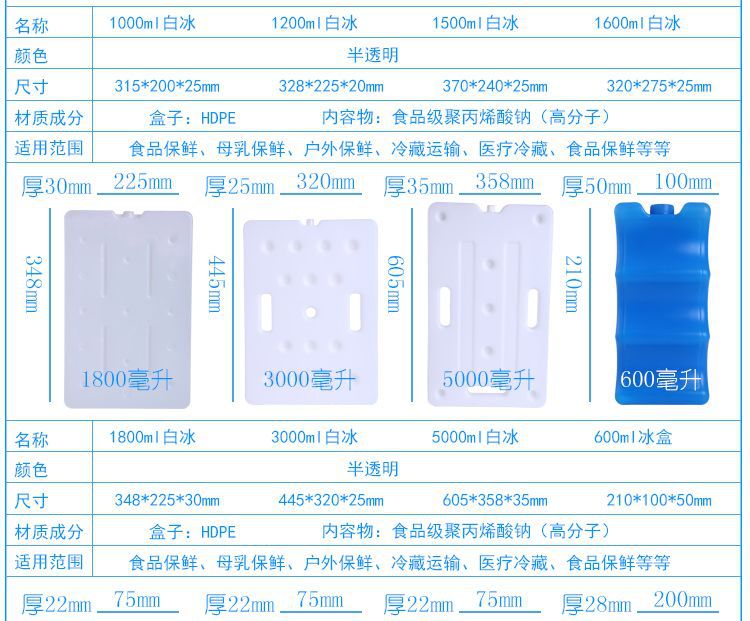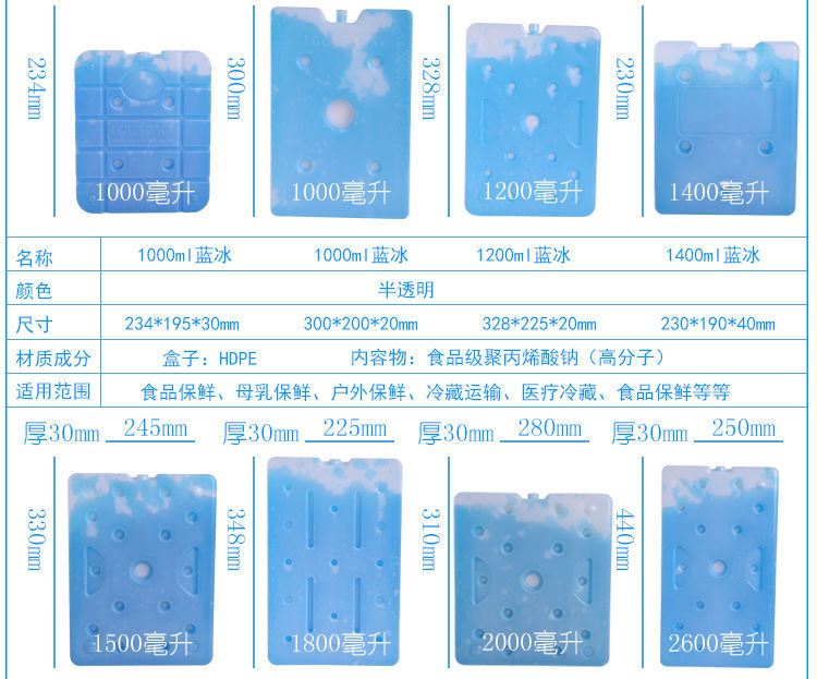 냉장 아이스 박스 블루 아이스 브릭 아이스 플레이트 아이스 로우 아이스 크리스탈 박스 아이스 백 백 푸드 보존 콜드 체인 운송