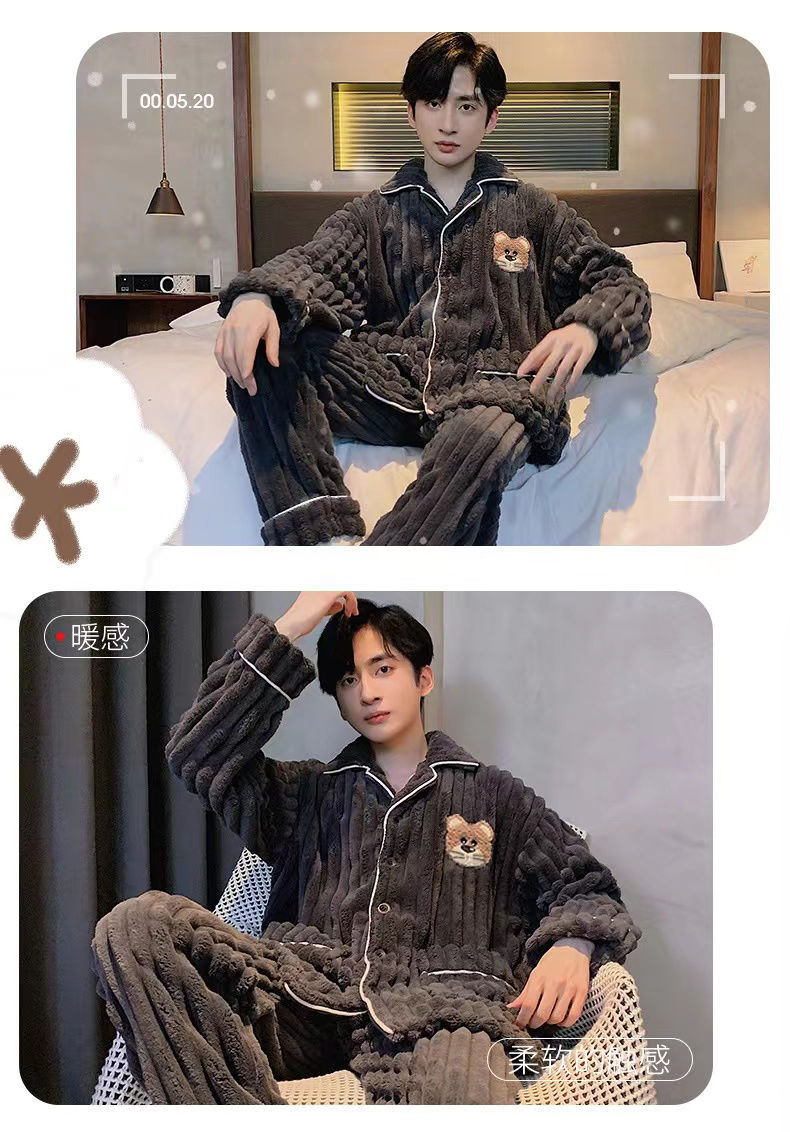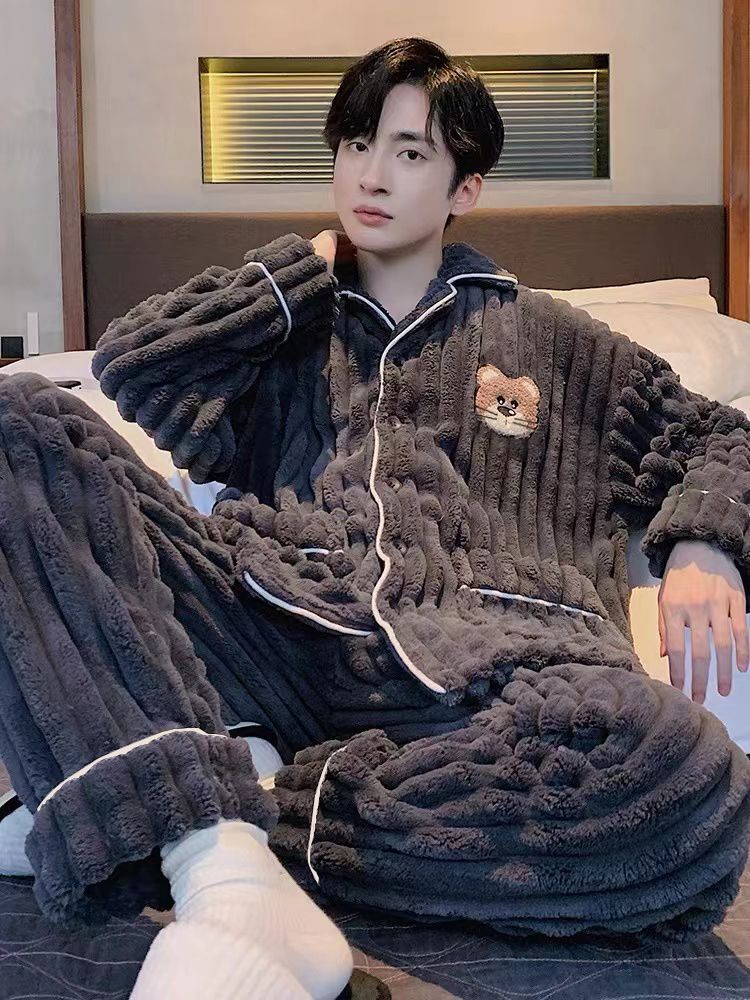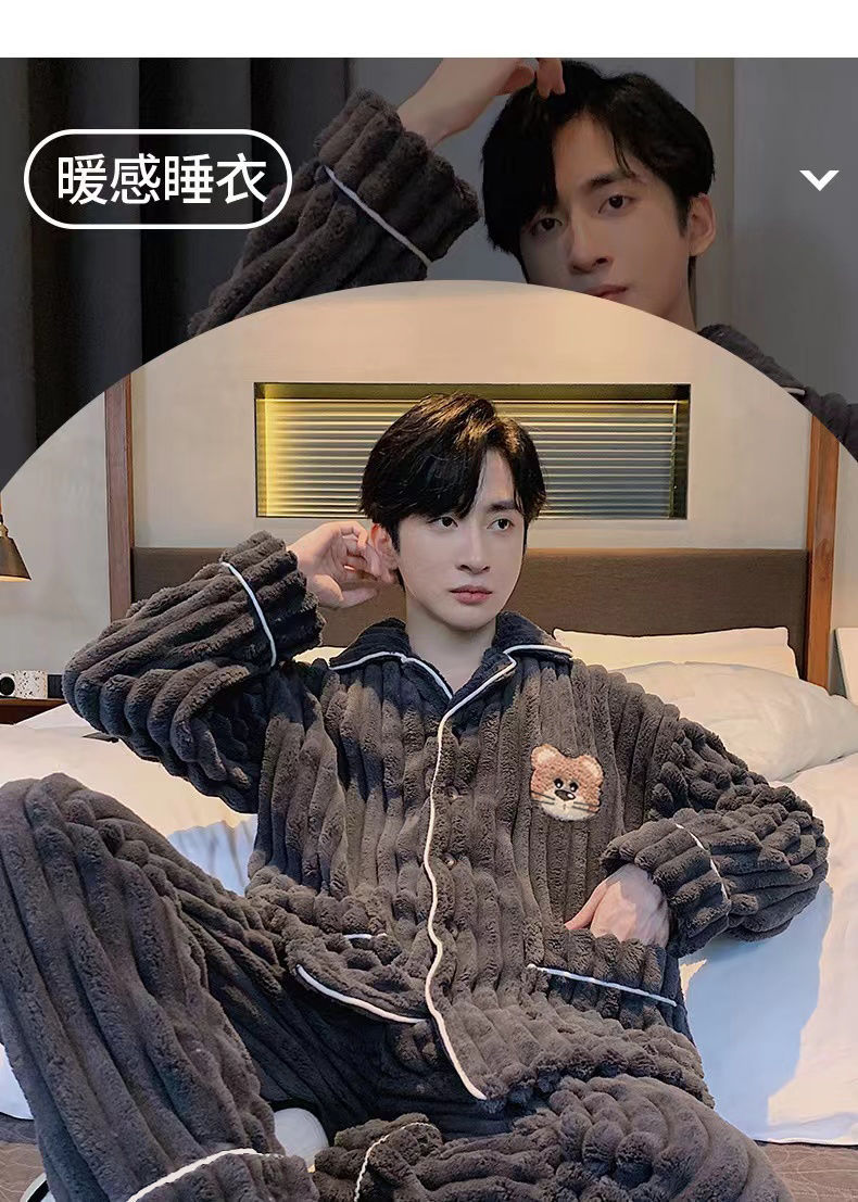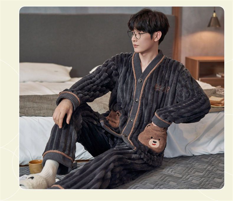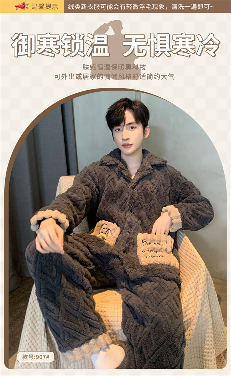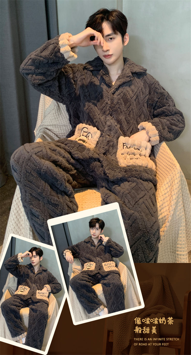 국경 간 잠옷 남성 가을과 겨울 새로운 카디건 두껍게 긴 소매 산호 양털 홈 의류 소스 공장스토어 가기