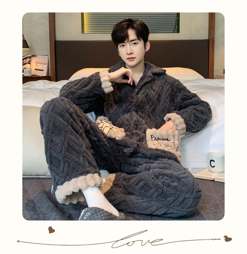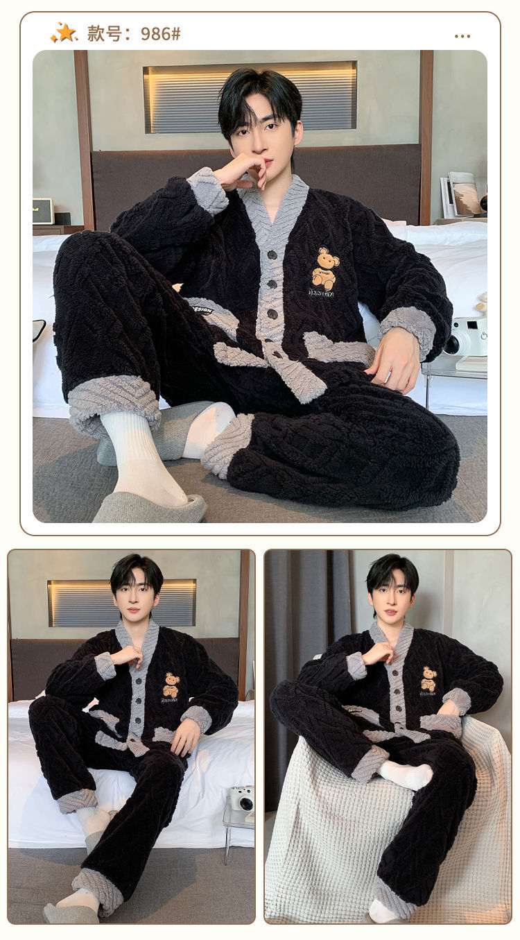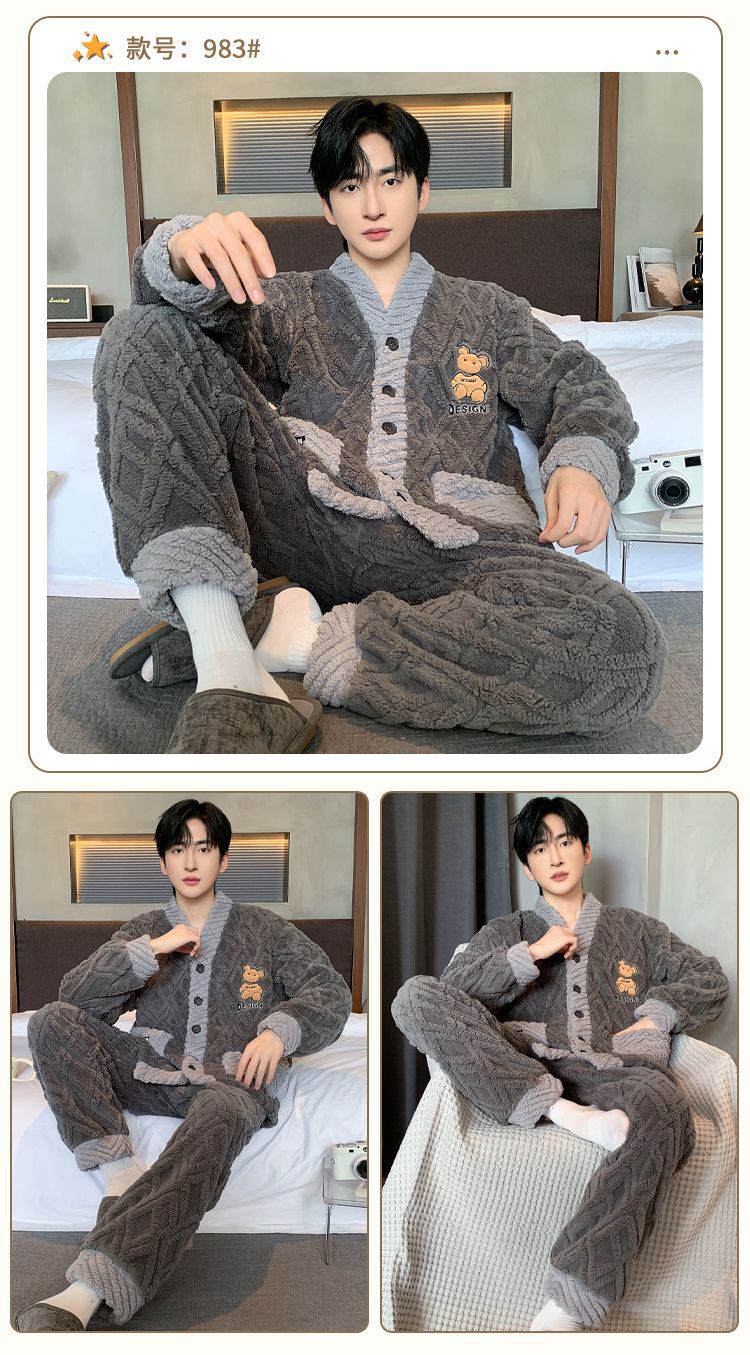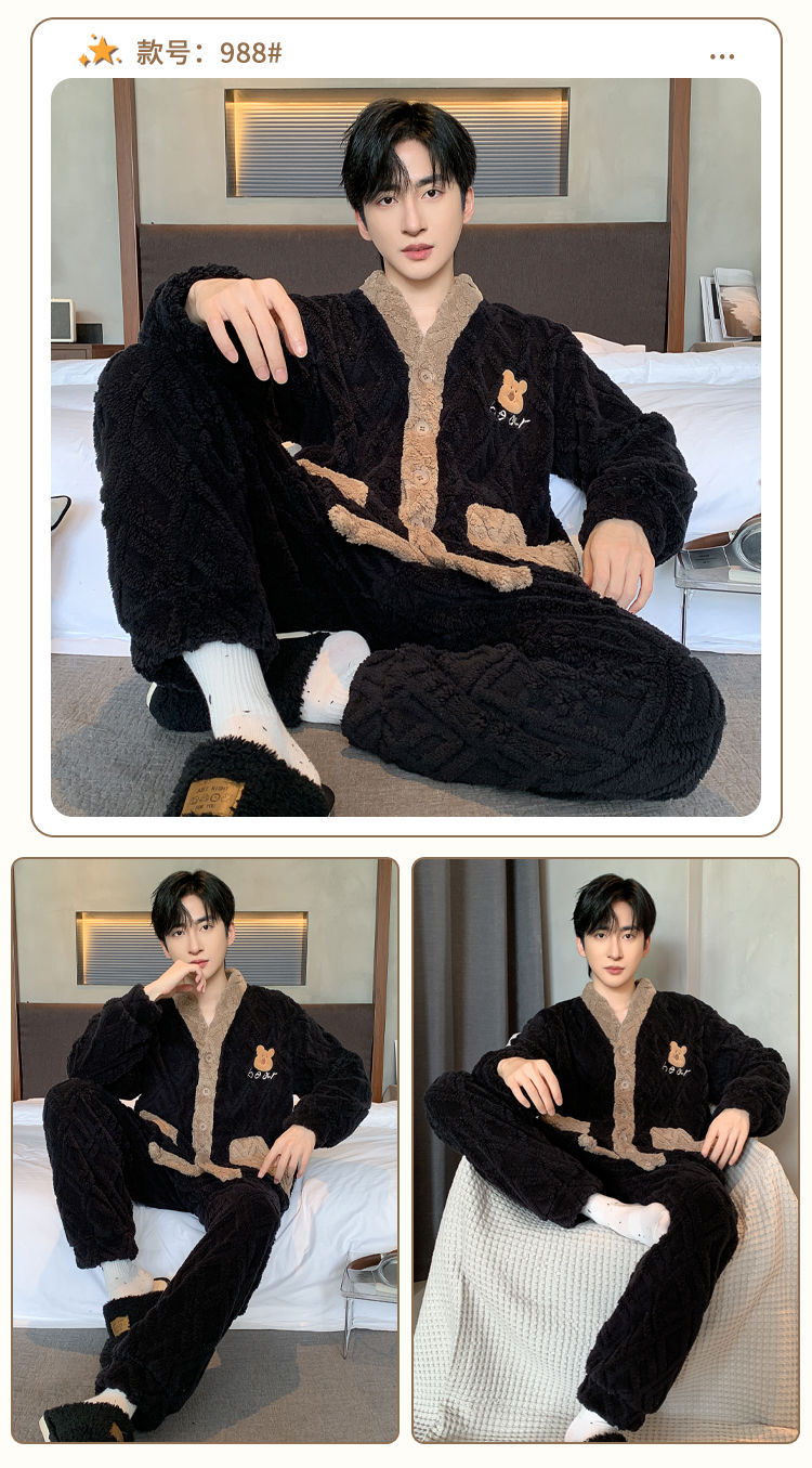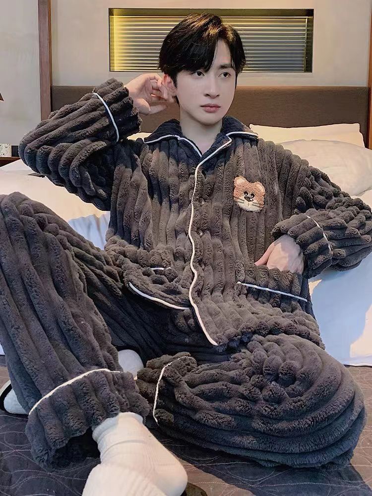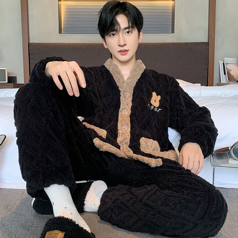 국경 간 잠옷 남성 가을과 겨울 새로운 카디건 두껍게 긴 소매 산호 양털 홈 의류 소스 공장스토어 가기