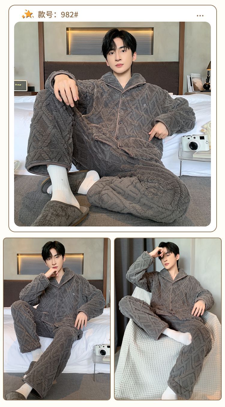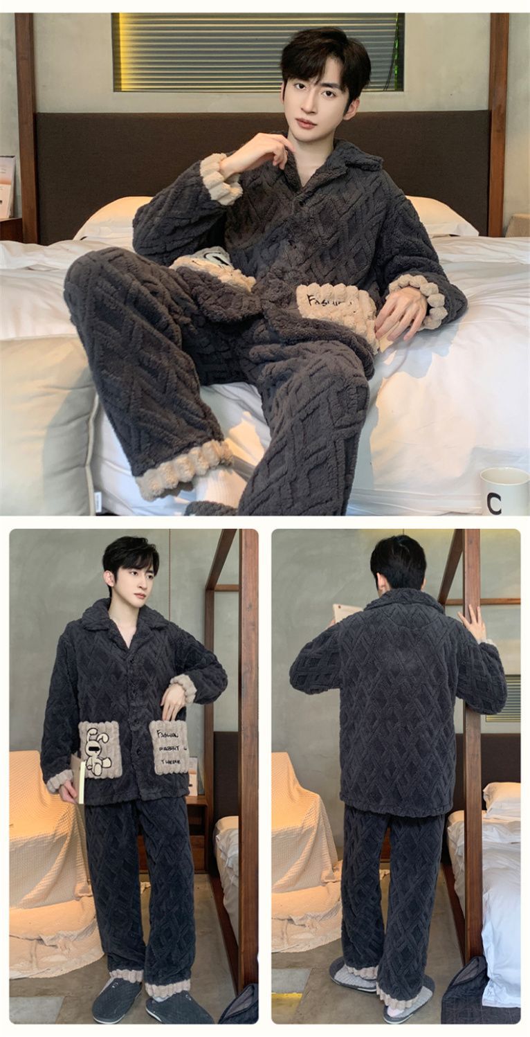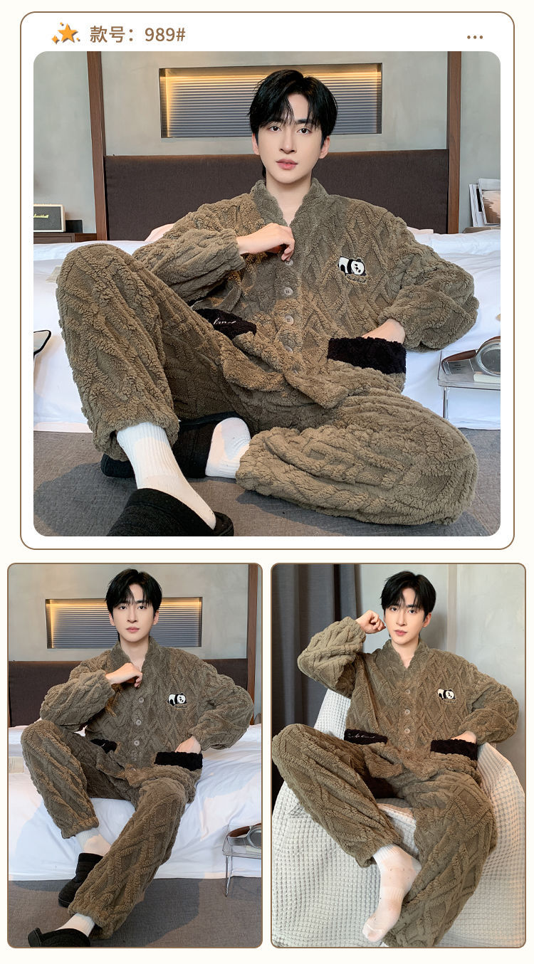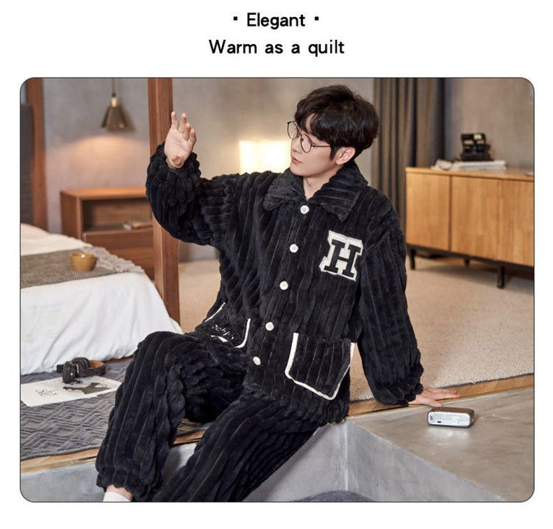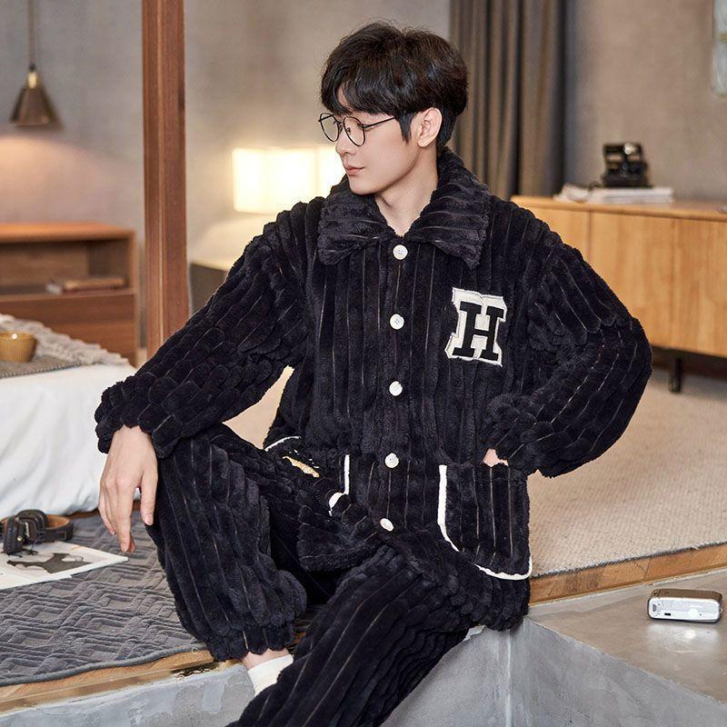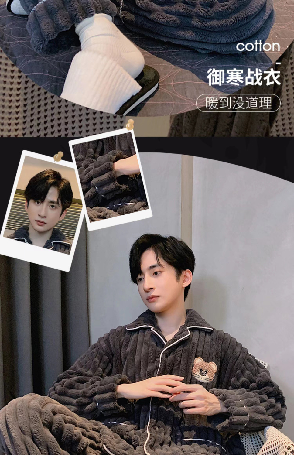 국경 간 잠옷 남성 가을과 겨울 새로운 카디건 두껍게 긴 소매 산호 양털 홈 의류 소스 공장스토어 가기