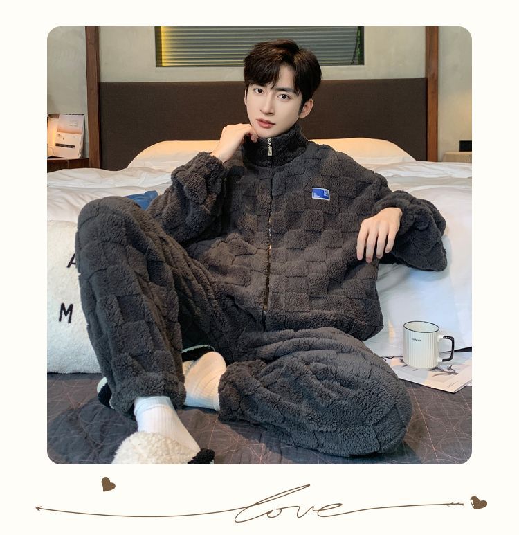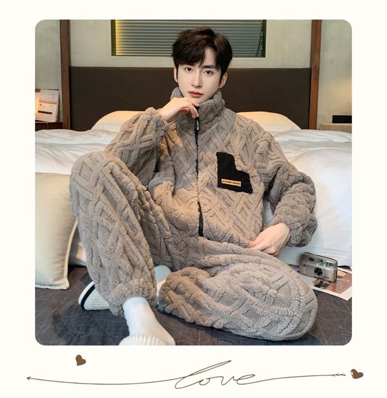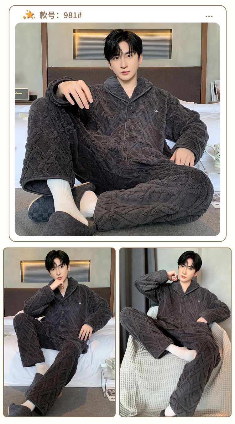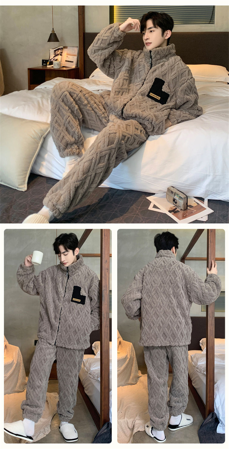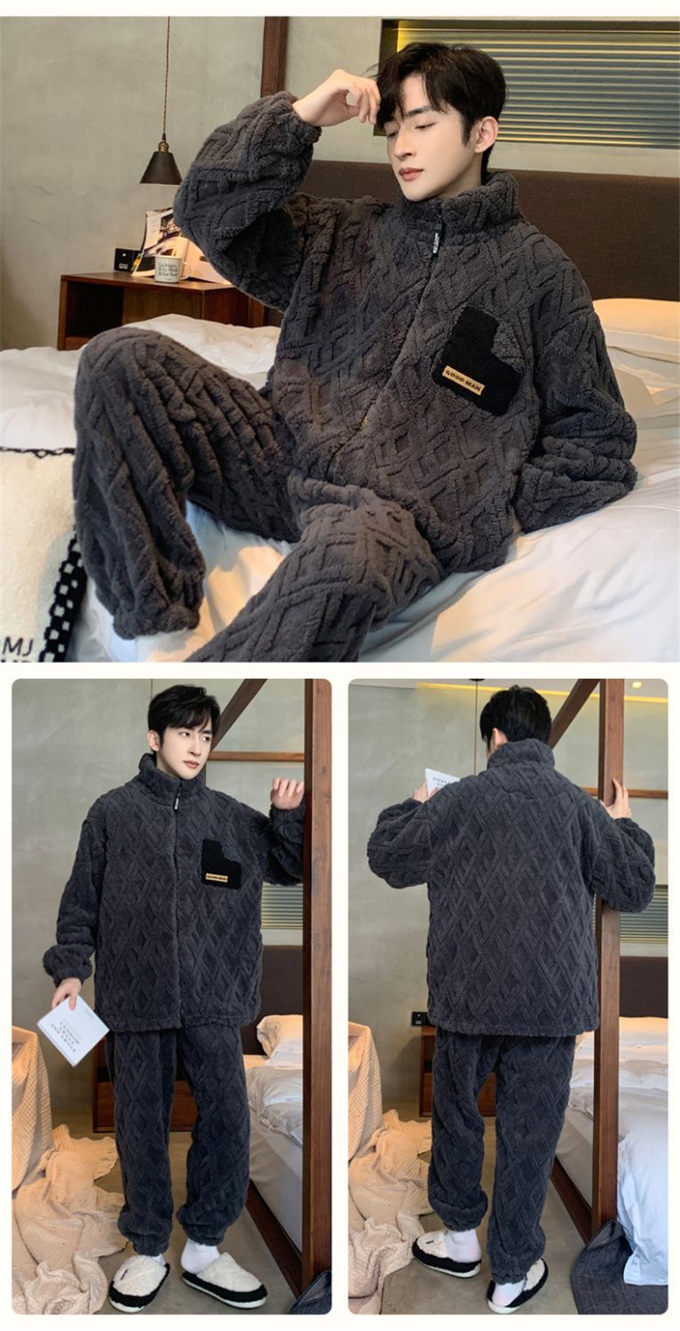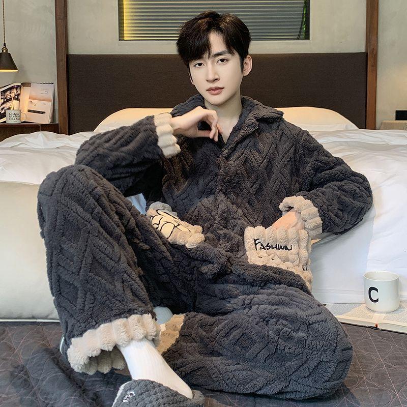 국경 간 잠옷 남성 가을과 겨울 새로운 카디건 두껍게 긴 소매 산호 양털 홈 의류 소스 공장스토어 가기