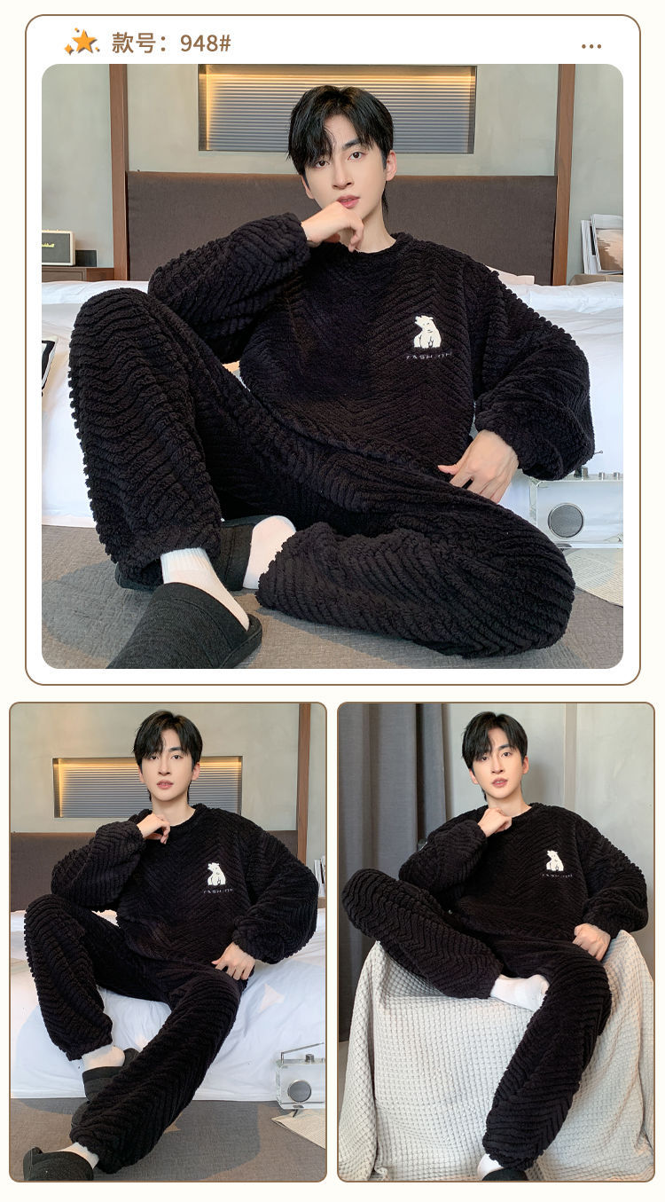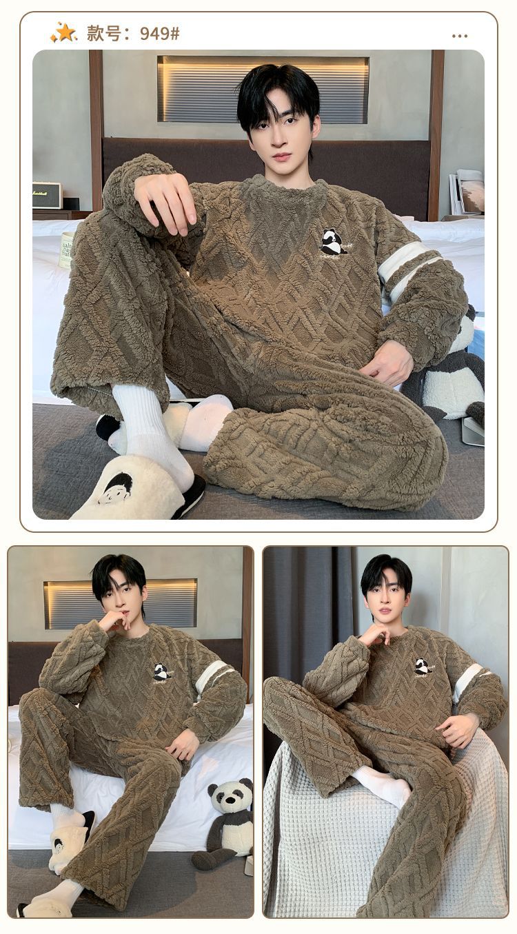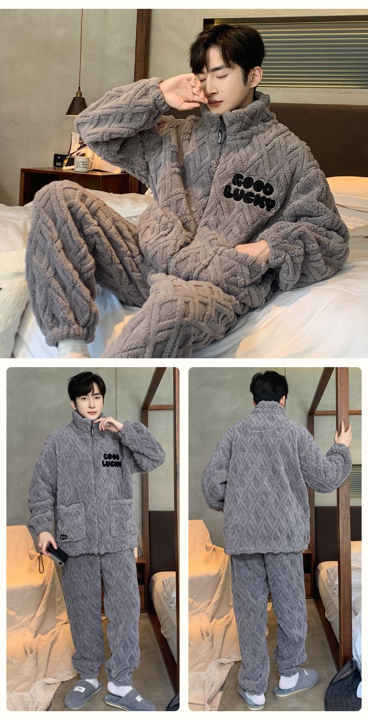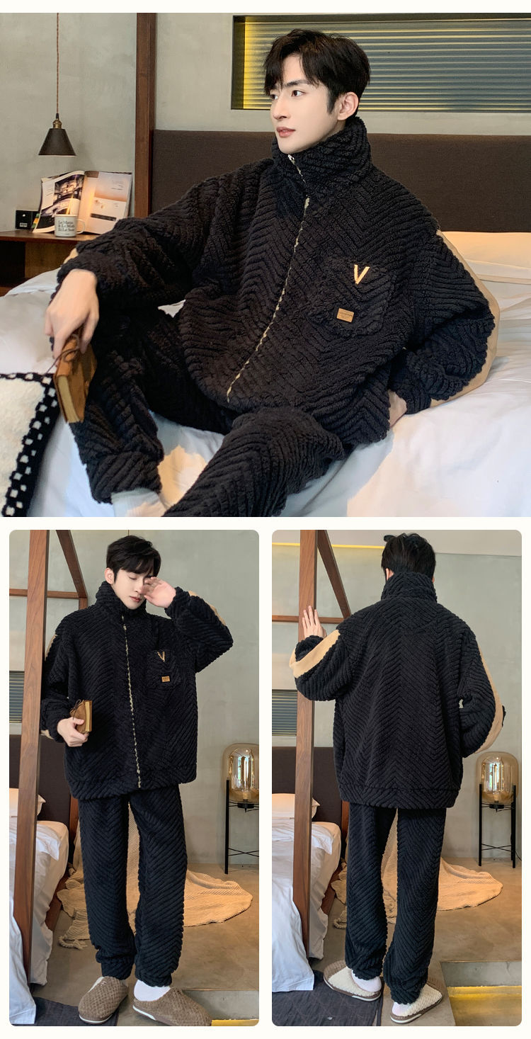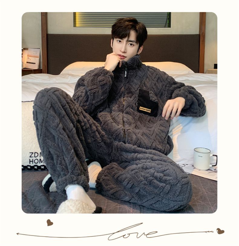 국경 간 잠옷 남성 가을과 겨울 새로운 카디건 두껍게 긴 소매 산호 양털 홈 의류 소스 공장스토어 가기