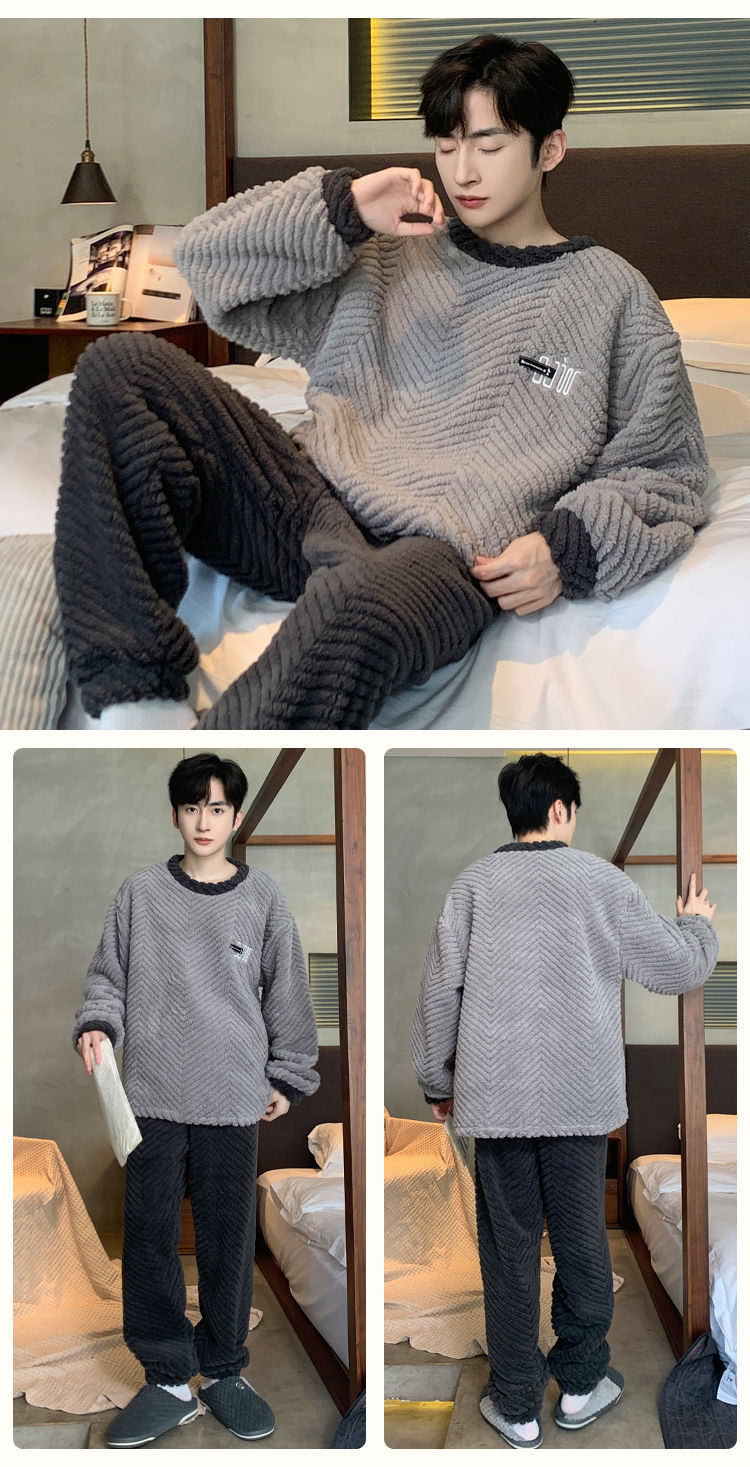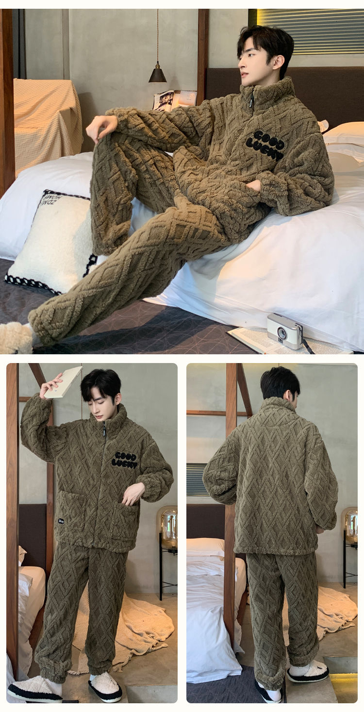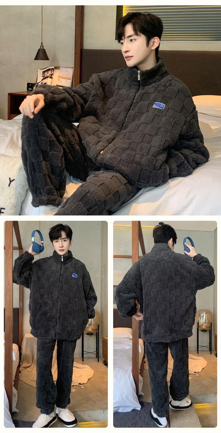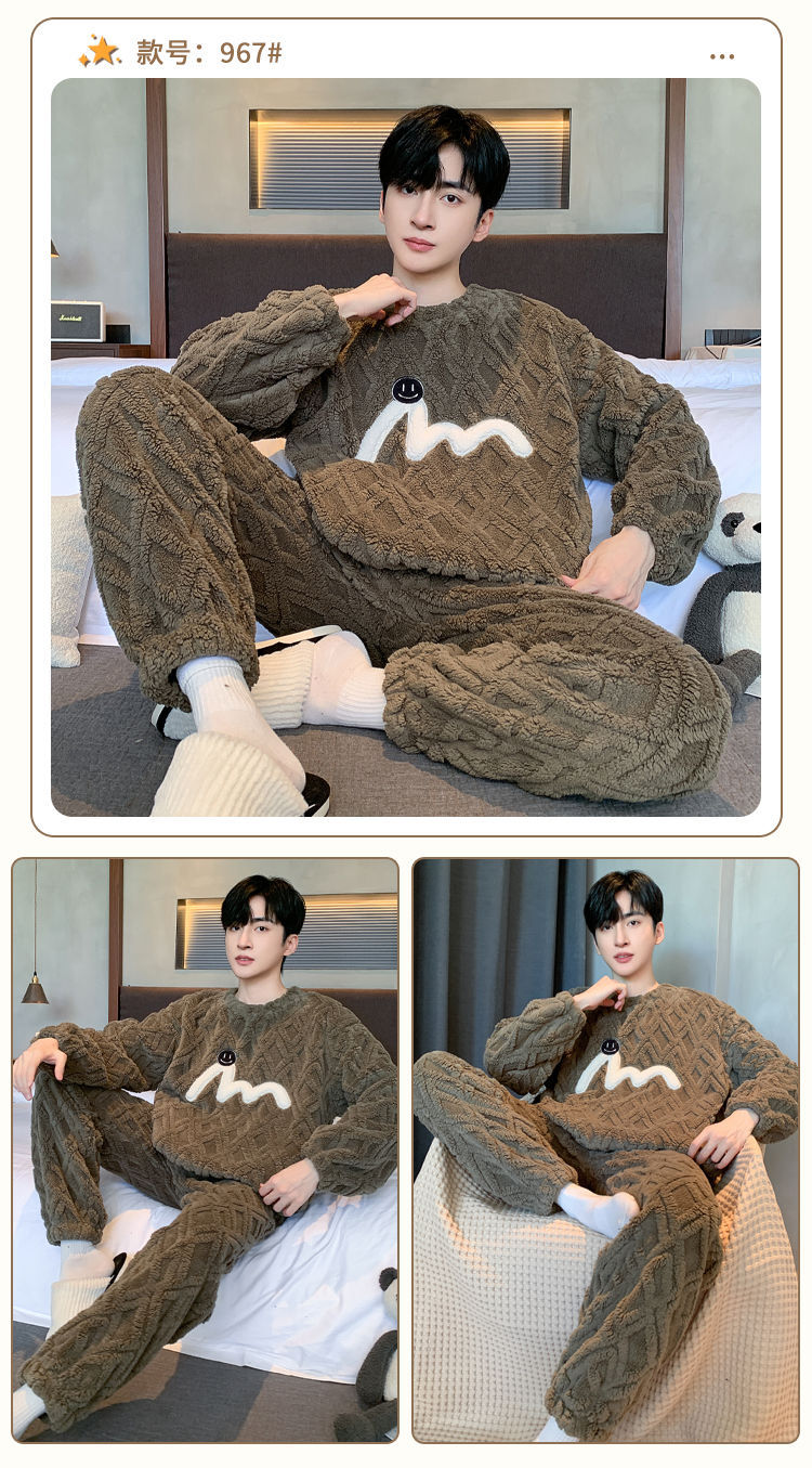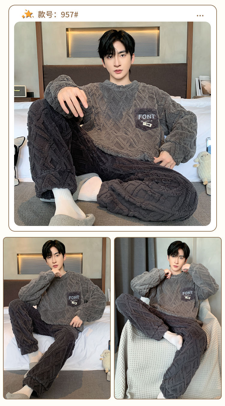 국경 간 잠옷 남성 가을과 겨울 새로운 카디건 두껍게 긴 소매 산호 양털 홈 의류 소스 공장스토어 가기