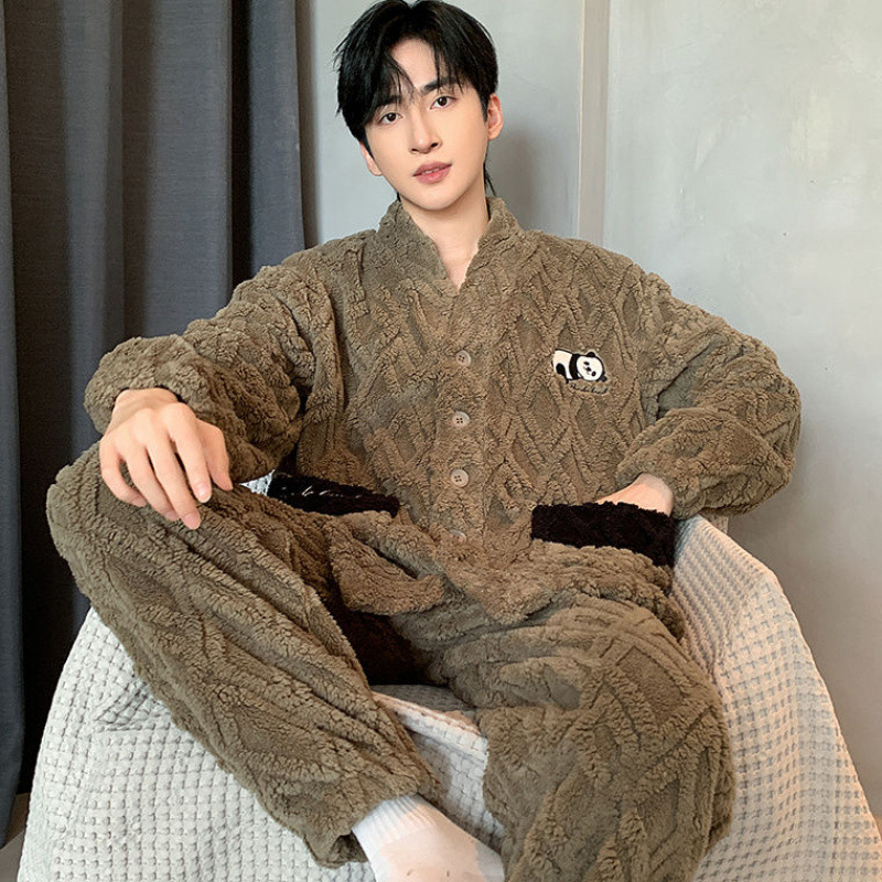 국경 간 잠옷 남성 가을과 겨울 새로운 카디건 두껍게 긴 소매 산호 양털 홈 의류 소스 공장