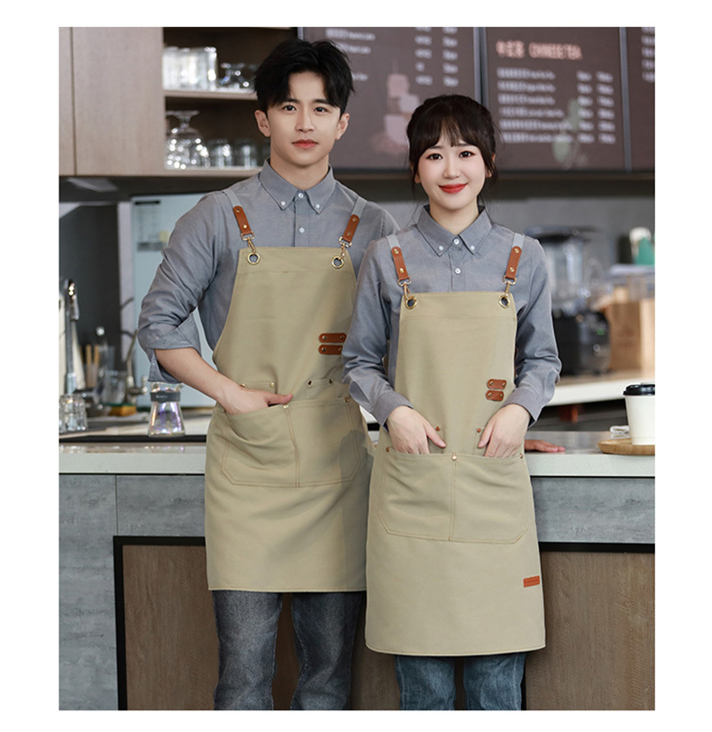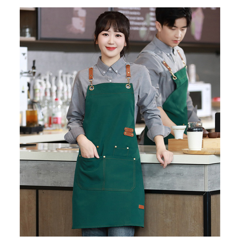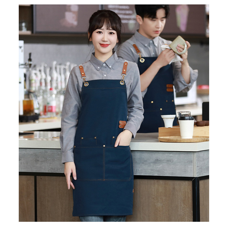 캔버스 앞치마 로고 인쇄 케이터링 베이킹 슈퍼마켓 과일 커피 밀크 티 샵 방수 작업복 맞춤 도매