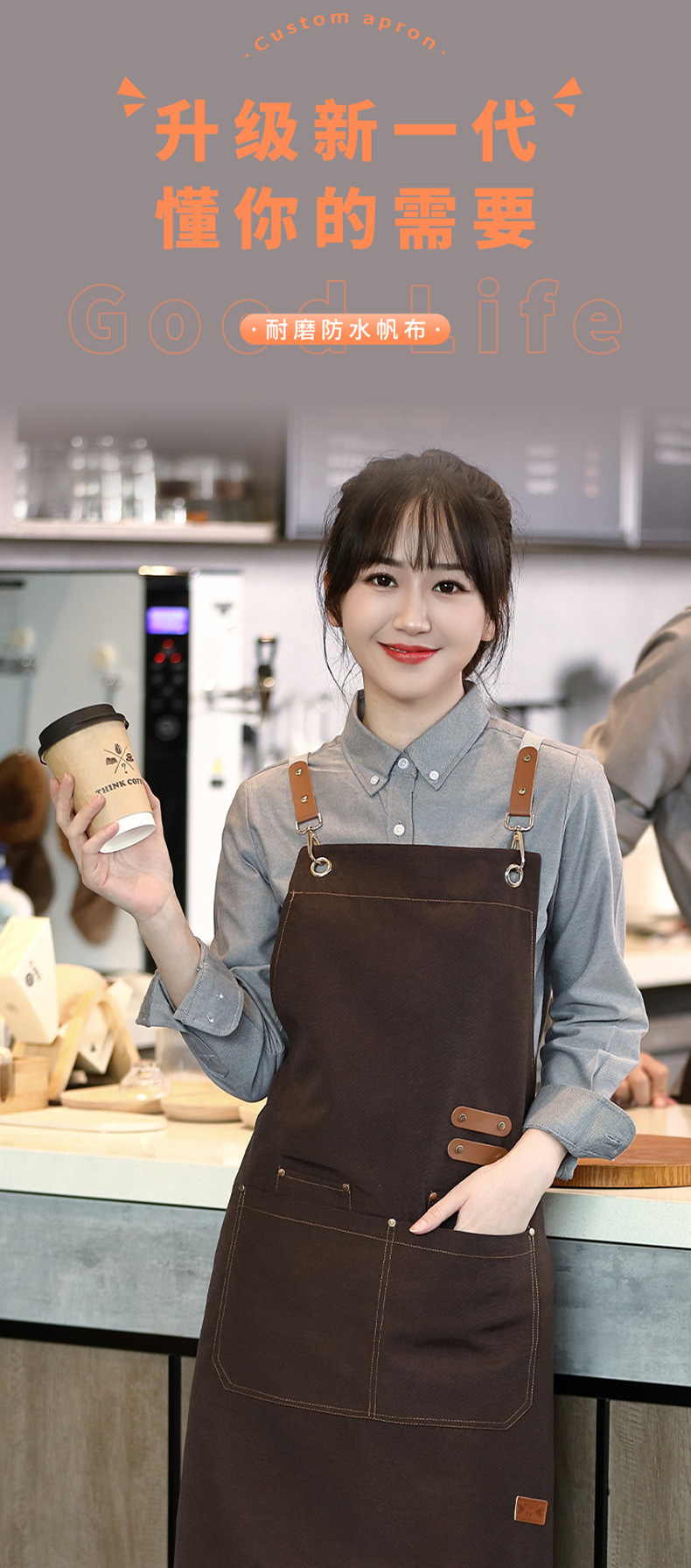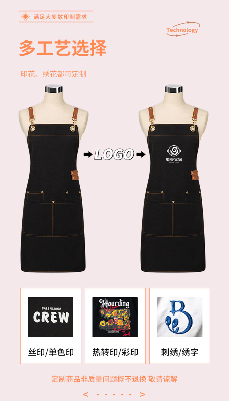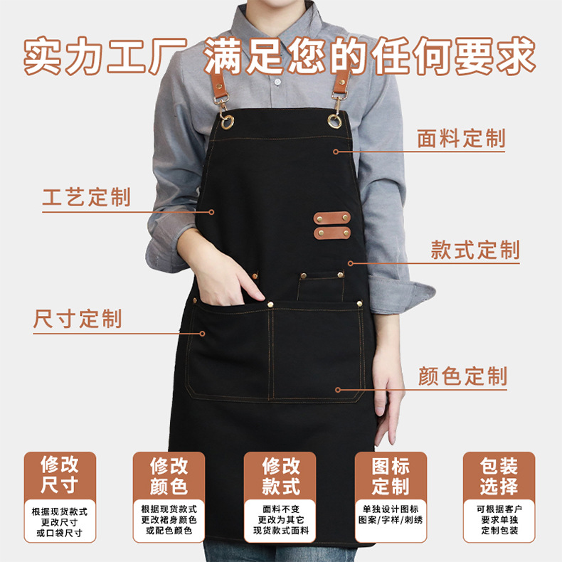 캔버스 앞치마 로고 인쇄 케이터링 베이킹 슈퍼마켓 과일 커피 밀크 티 샵 방수 작업복 맞춤 도매스토어 가기