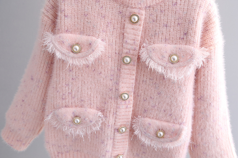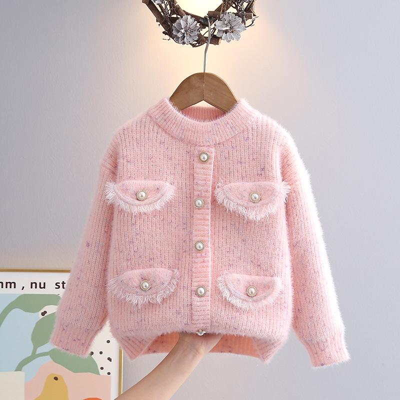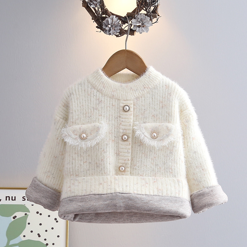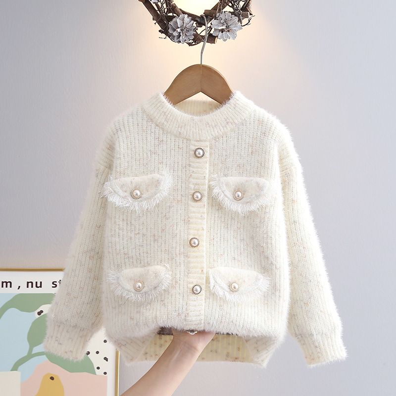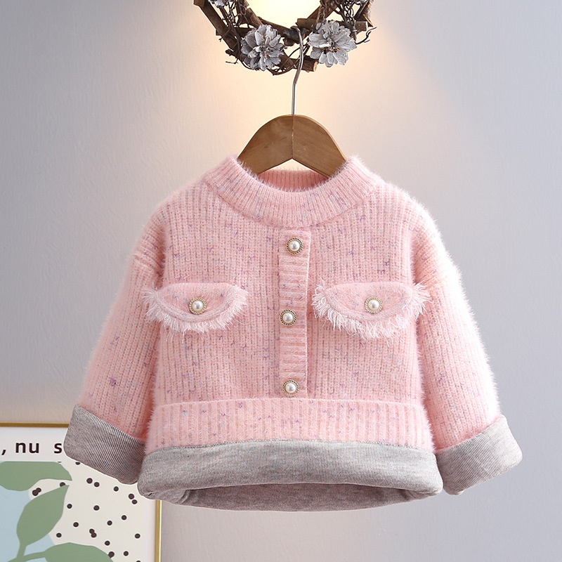 소녀의 스웨터 기모 가을과 겨울 새로운 모방 밍크 벨벳 2024 서양식 따뜻한 니트 스웨터스토어 가기