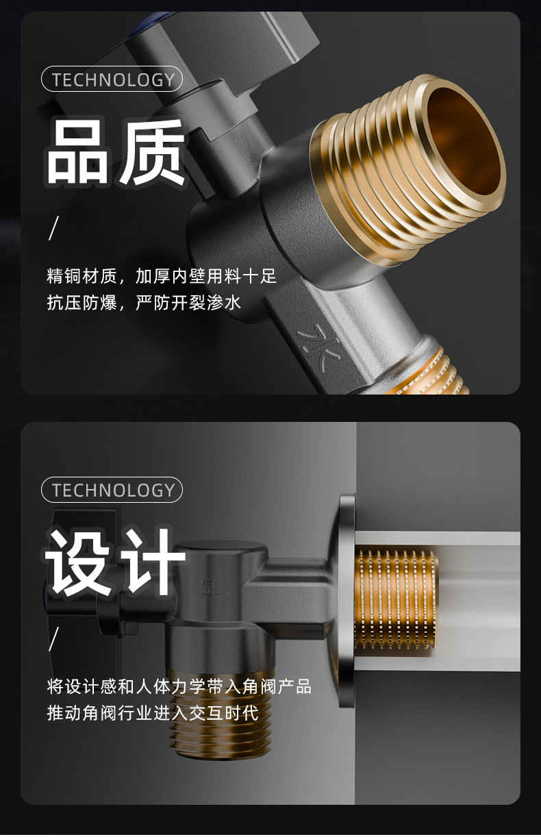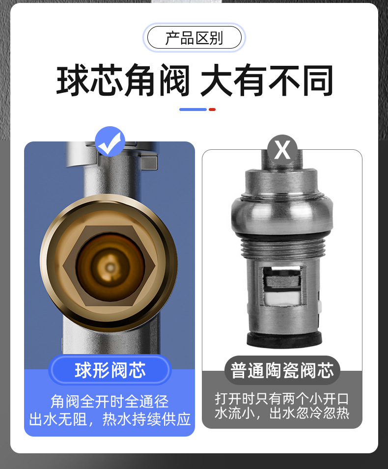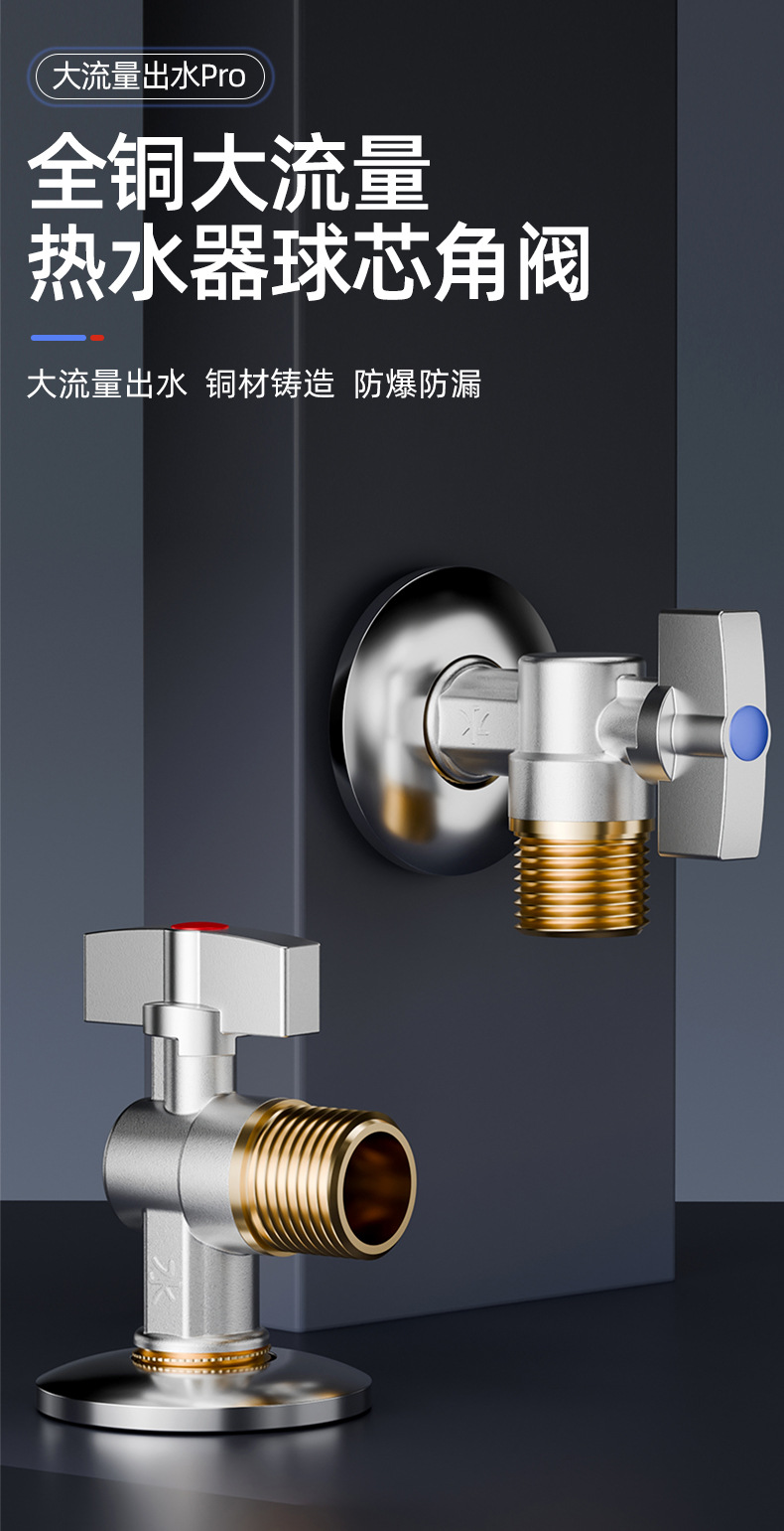 • 전기도금 앵글 밸브, 전체 구리 본체, 빨간색 라벨