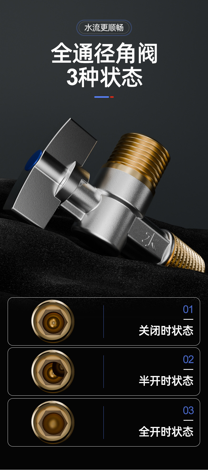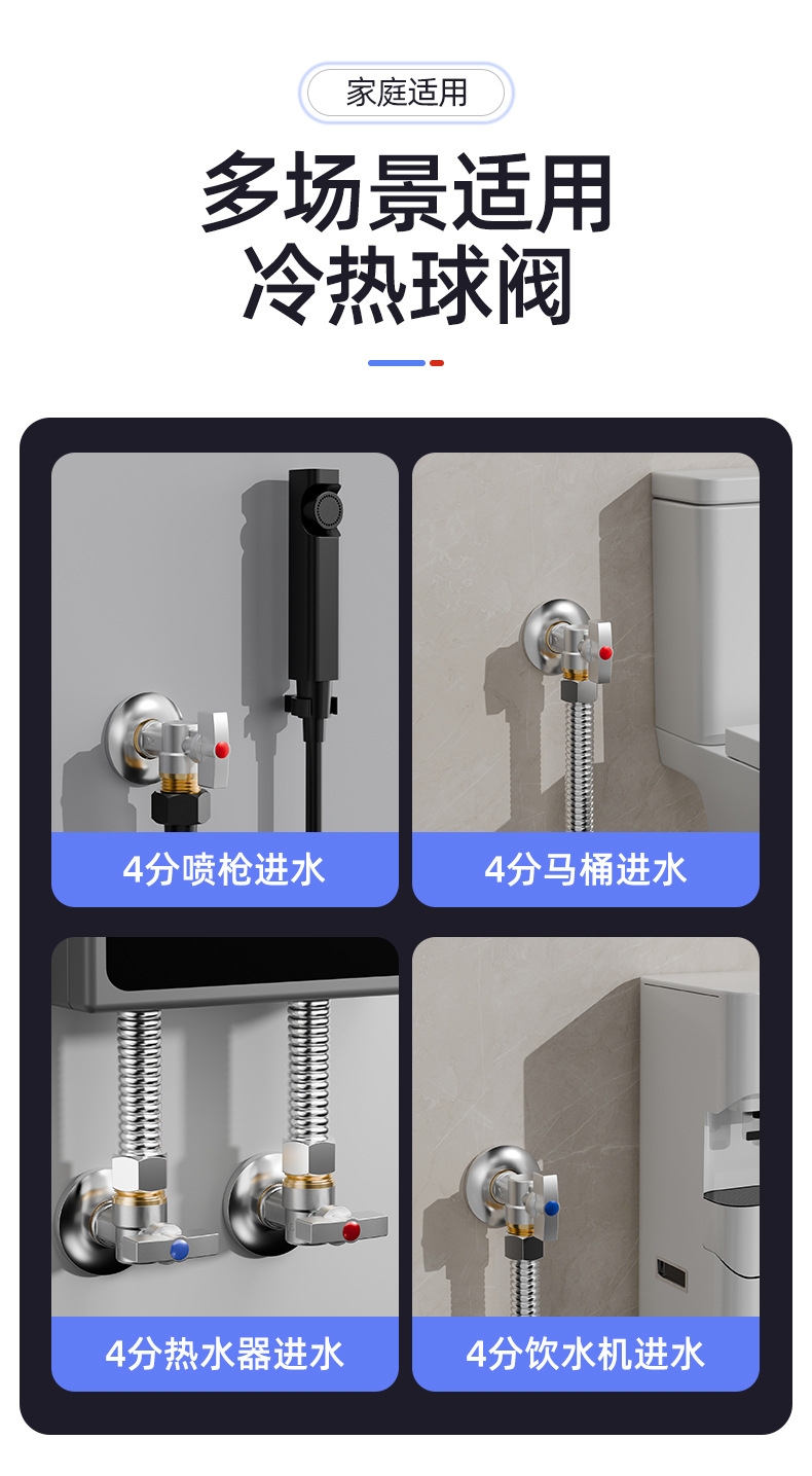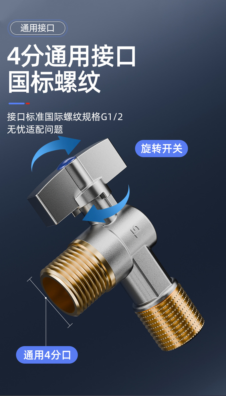 공장 도매 모든 구리 두껍게 큰 흐름 삼각형 밸브 차갑고 뜨거운 4 포인트 주방 화장실 온수기 스위치 전용스토어 가기