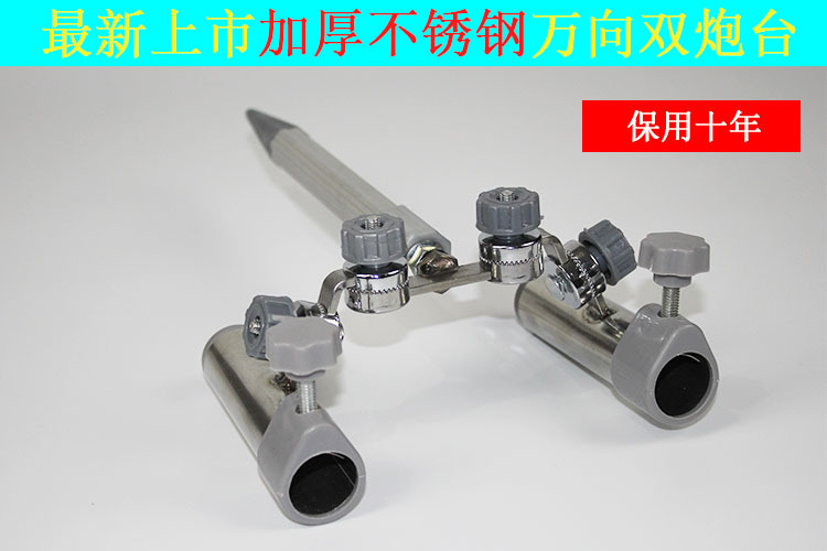 스테인레스 스틸 더블 캐논 스탠드 브래킷 더블 로드 낚싯대 브래킷 낚시 상자 낚시 의자 액세서리 유니버설 배터리 핑 런