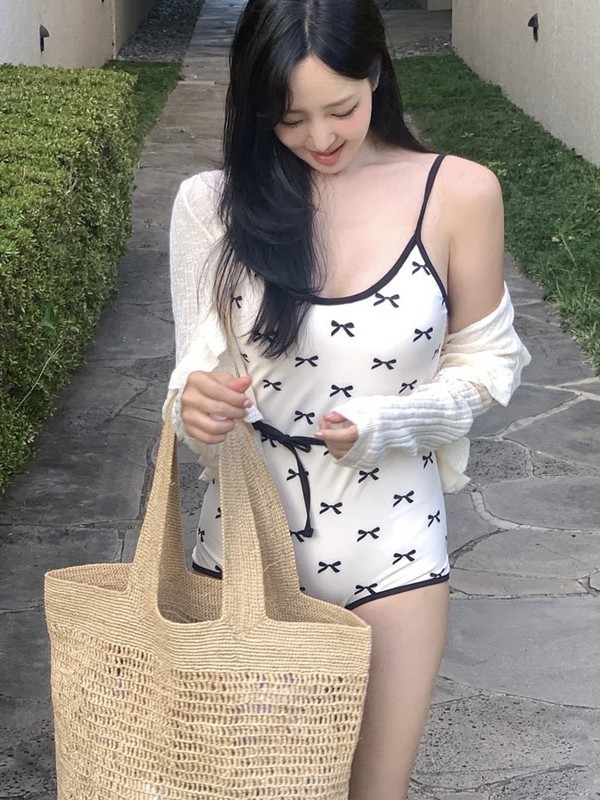 배를 커버해 날씬해 보이는 새로운 원피스 비키니, 순수하고 심플한 여성용 수영복, 리본 장식의 소녀 수영복 BIKINI