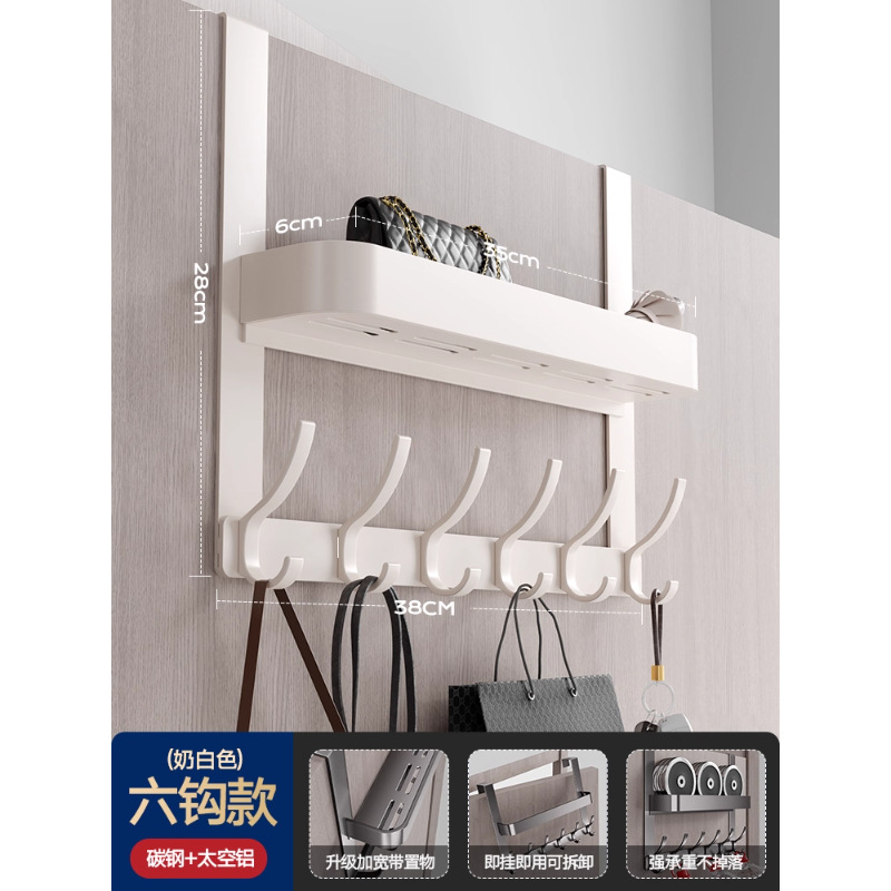 • 도어백 후크 수납선반 [밀크화이트 6후크] 암길이 28CM
