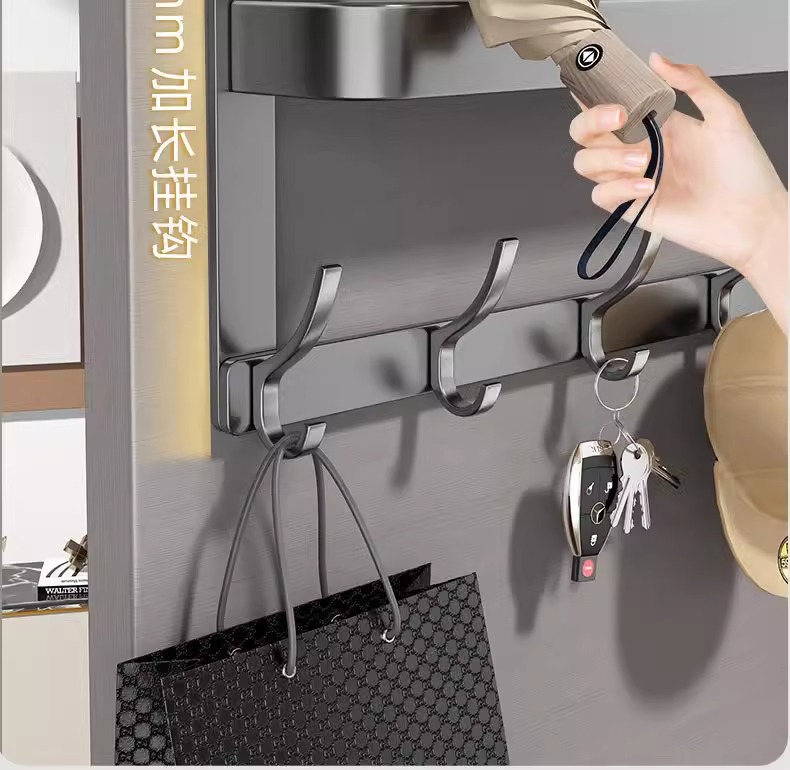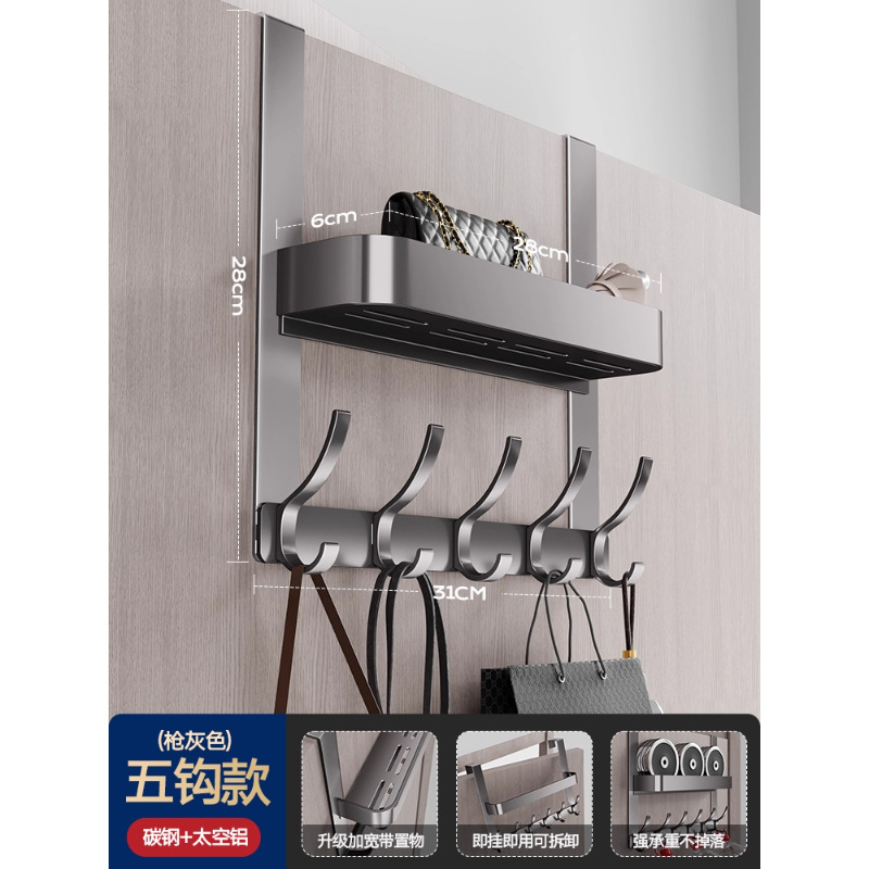 • 도어백 후크 수납선반 [건그레이 5후크] 암길이 28CM