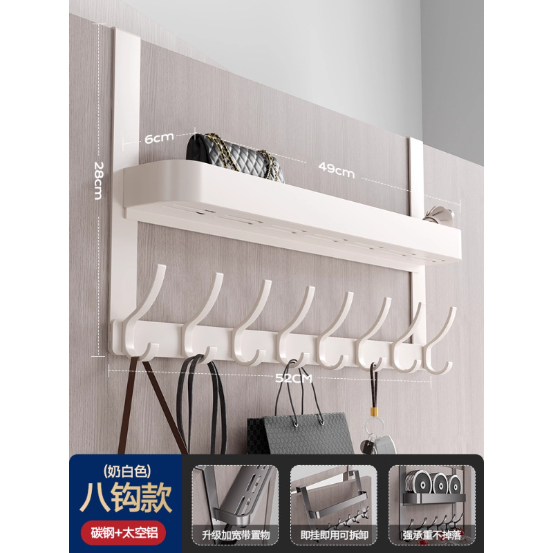 • 도어백 후크 수납선반 [밀크화이트 8후크] 암길이 28CM