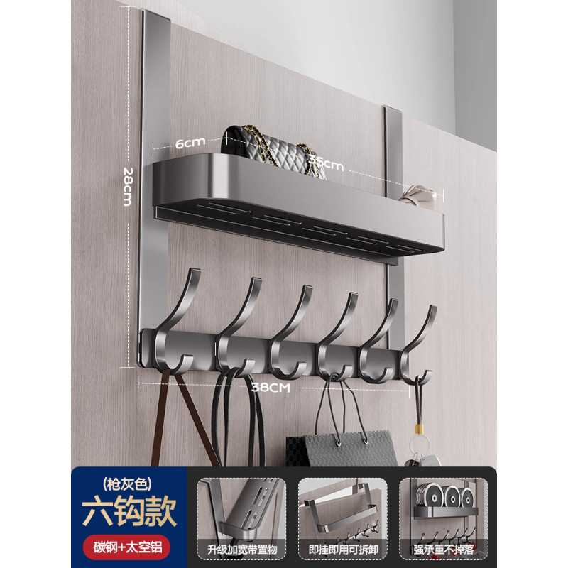 • 도어백 후크 수납선반 [건그레이 6후크] 암길이 28CM
