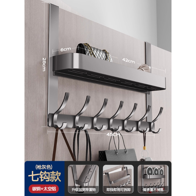 • 도어백 후크 수납선반 [건그레이 7후크] 암길이 28CM