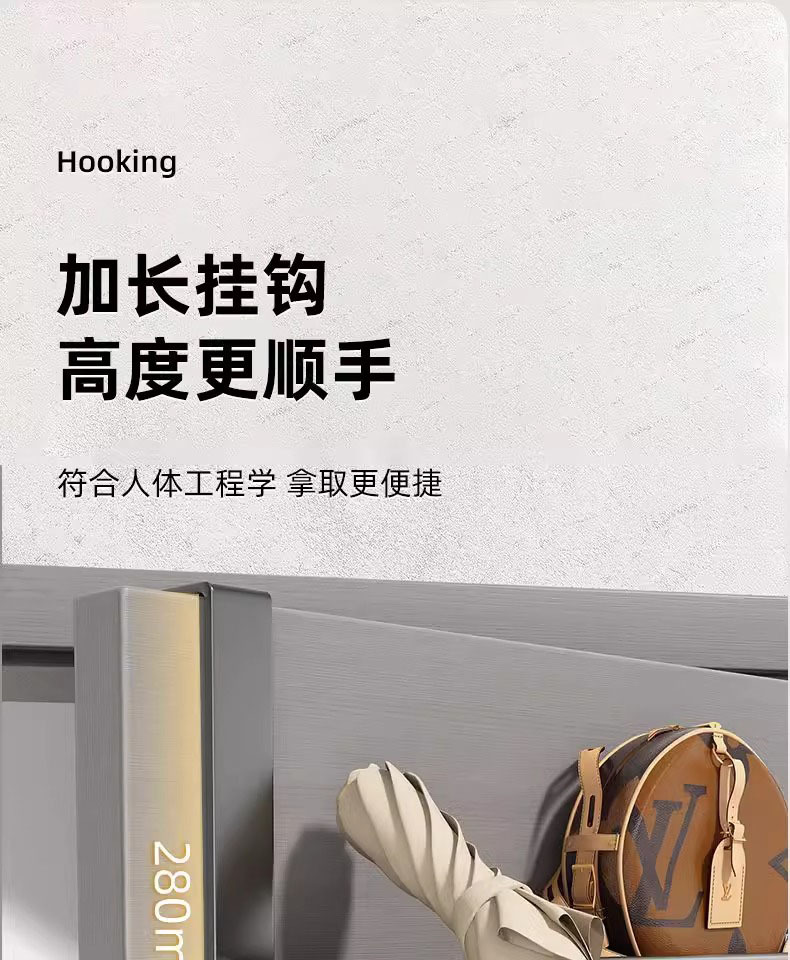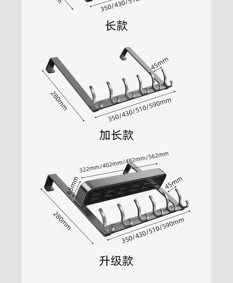 • 도어백 후크 수납선반 [건그레이 8후크] 암길이 28CM