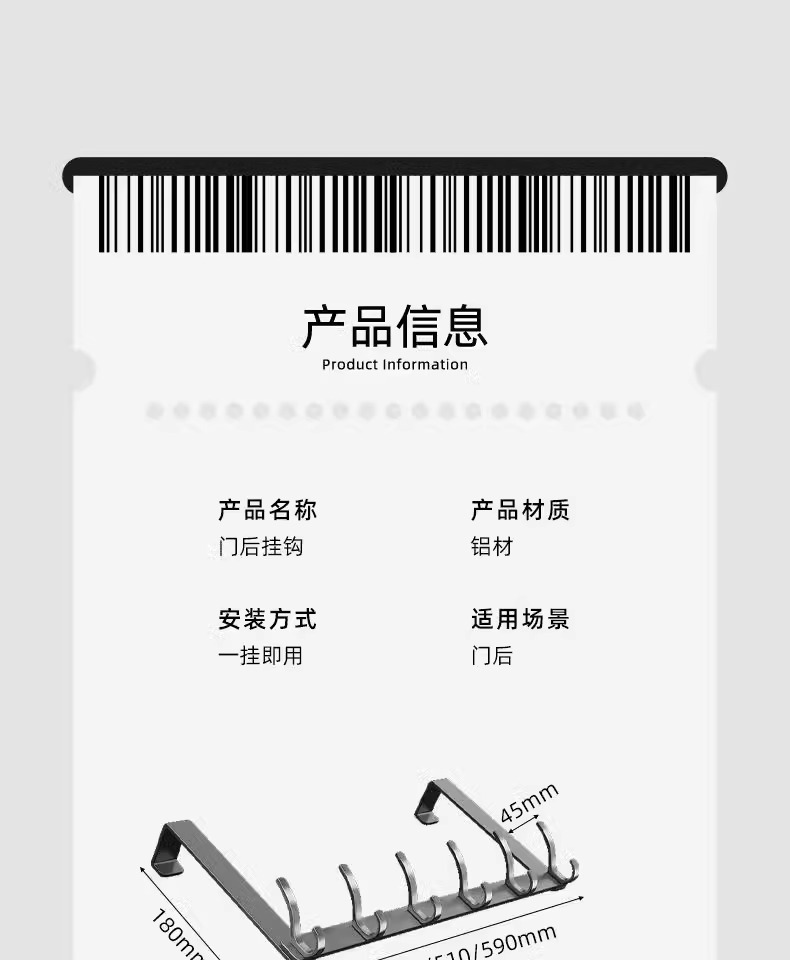 • 문 뒷좌석 후크건 그레이 5개 후크